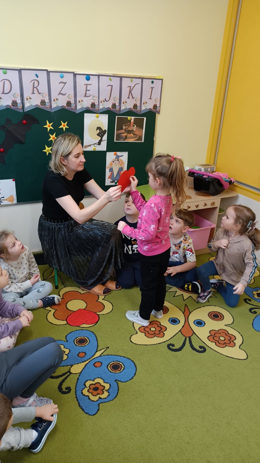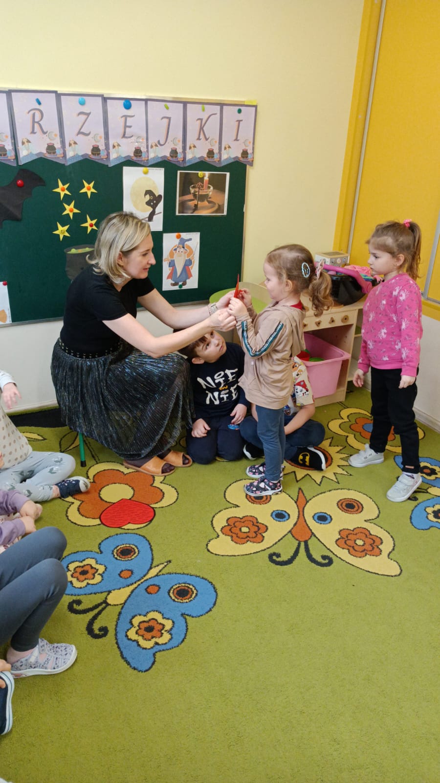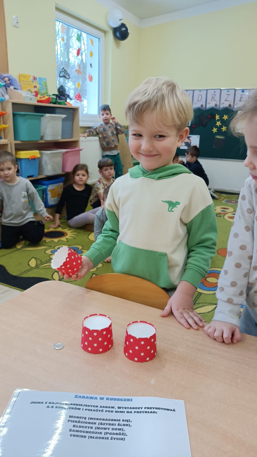 Nie zabrakło muzyki, tańców oraz wspólnej zabawy, które wywołały wiele uśmiechów. Przedszkolaki z wielkim zaangażowaniem odkrywały, co może przynieść im przyszłość, traktując wróżby z humorem i dziecięcą ciekawością.
