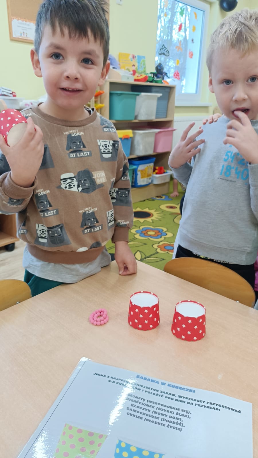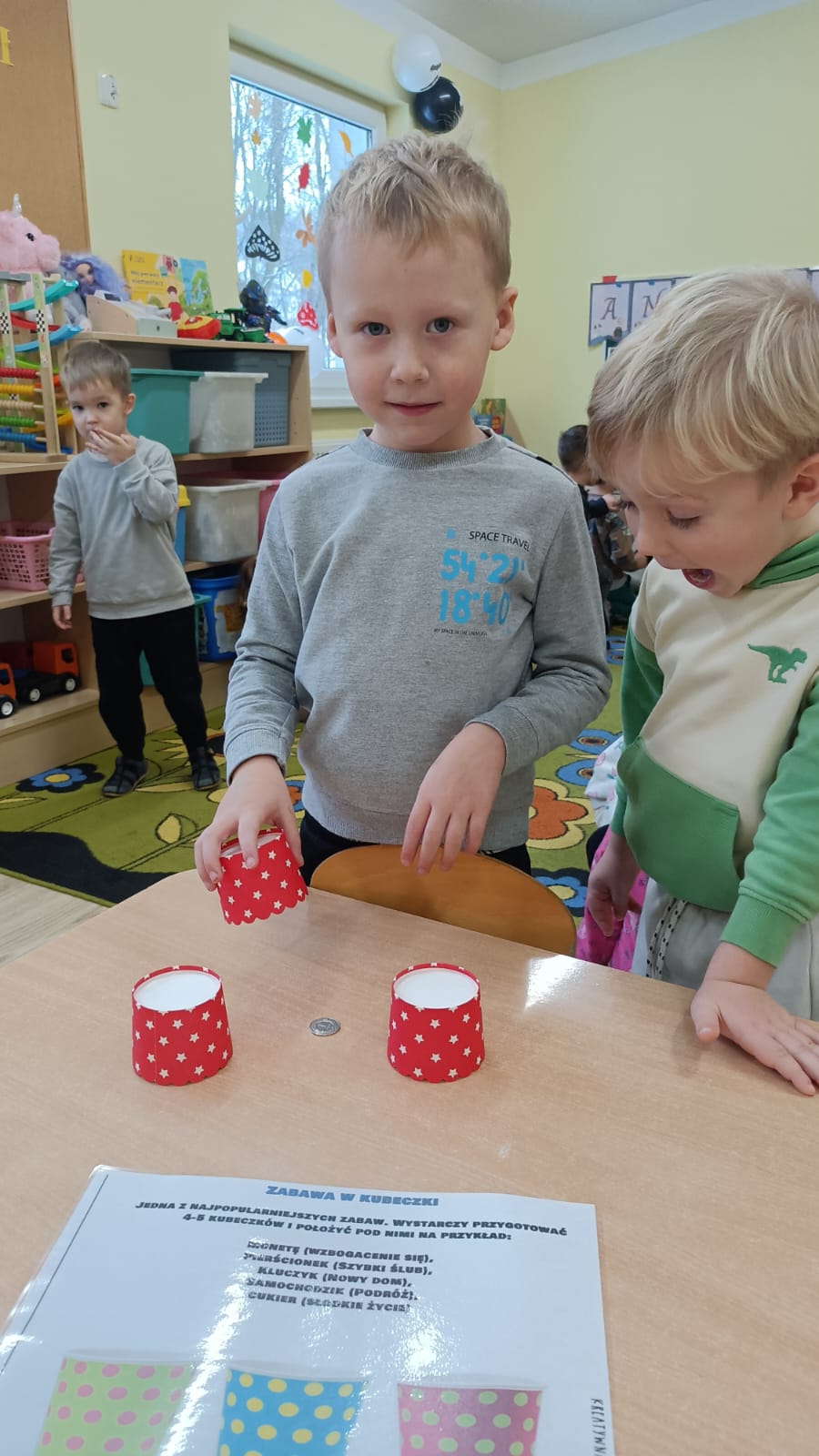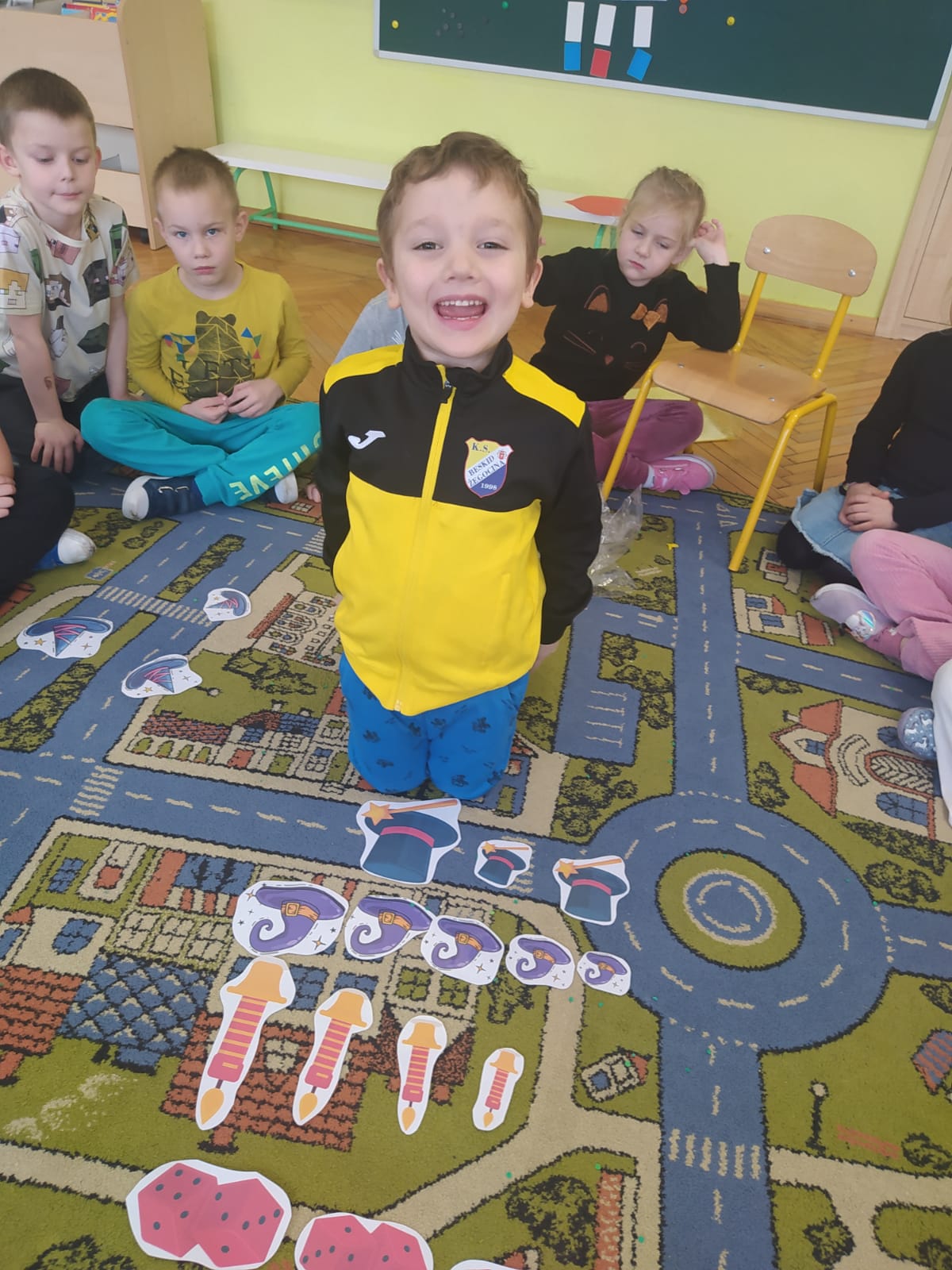 Nie zabrakło muzyki, tańców oraz wspólnej zabawy, które wywołały wiele uśmiechów. Przedszkolaki z wielkim zaangażowaniem odkrywały, co może przynieść im przyszłość, traktując wróżby z humorem i dziecięcą ciekawością.