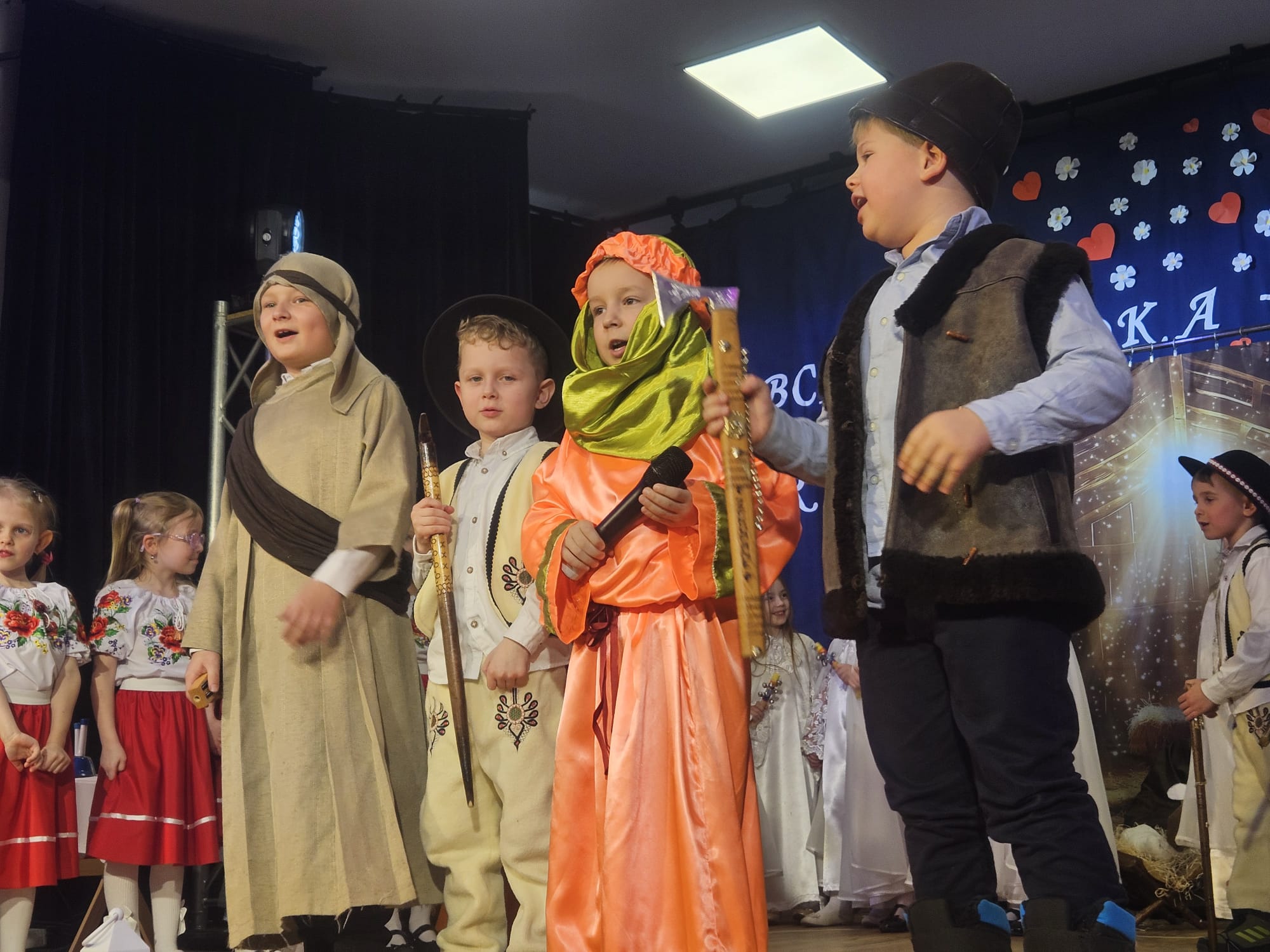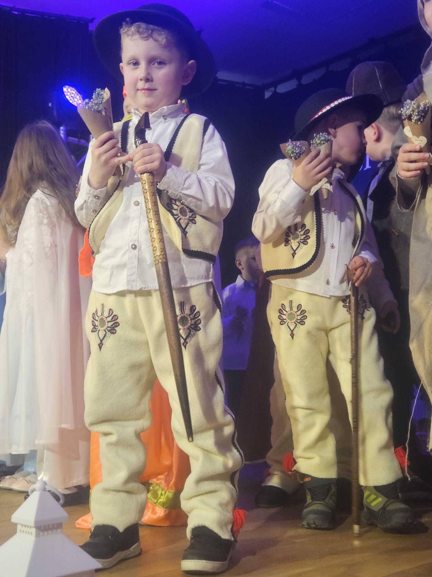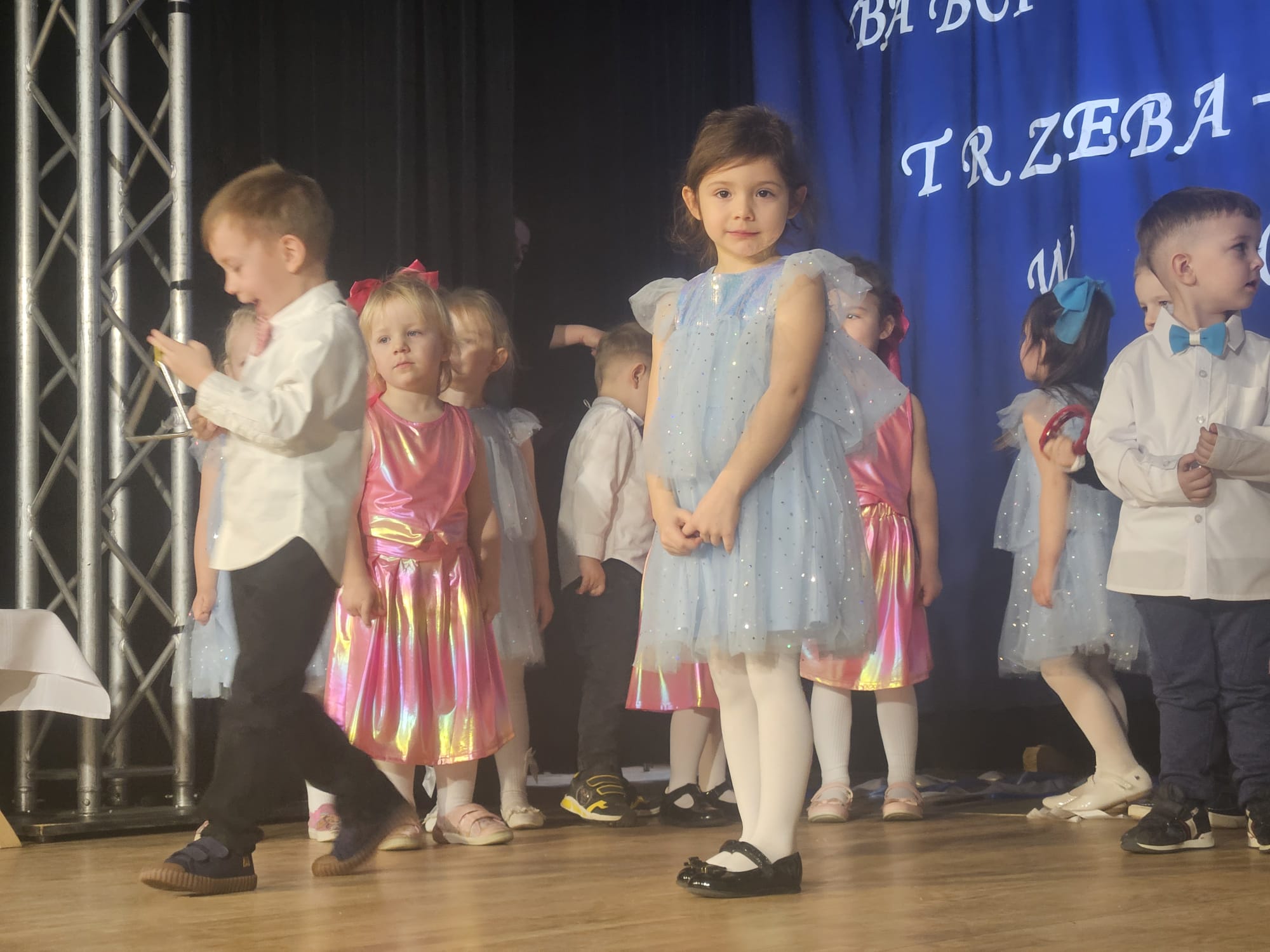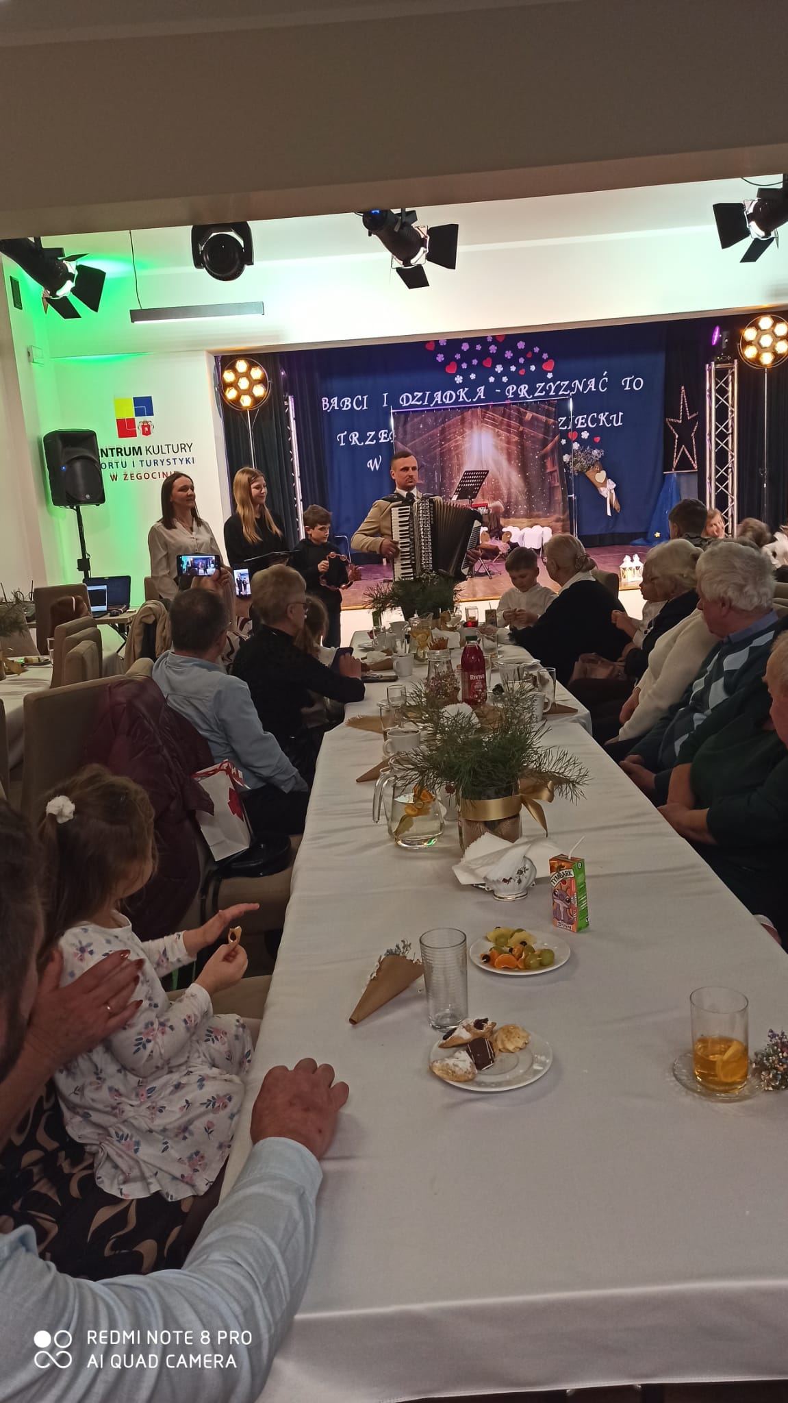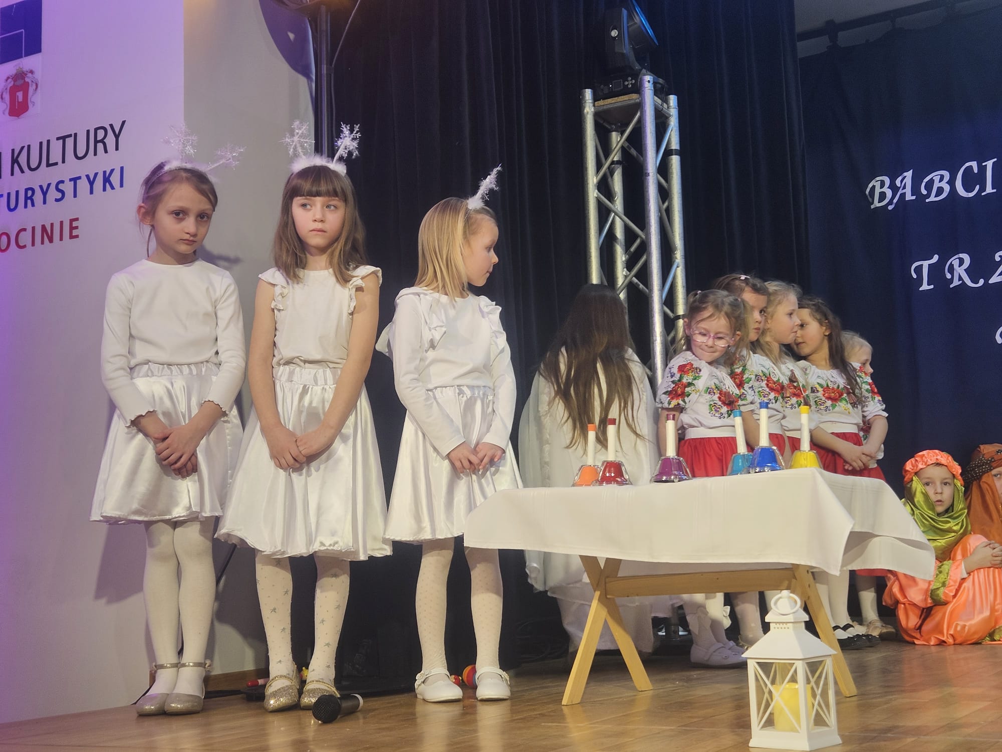 Na samym początku wszystkich licznie przybyłych gości przywitała Pani Dyrektor Ewa Paruch. W pierwszej kolejności wystąpiła grupa Słoneczek. Przedszkolaki zachwyciły publiczność pięknym występem pełnym radości i uśmiechu. Dzieci recytowały wzruszające wierszyki, śpiewały wesołe piosenki, a całość dopełniła zabawna scenka, w której babcia marzyła o zostaniu tancerką. W trakcie przedstawienia spotkała dziadka i razem, przy dźwiękach muzyki. Grupa Motylków z kolei zaprezentowała piękne jasełka, wprowadzając wszystkich w wyjątkowy nastrój. Dzieci śpiewały piosenki dedykowane Babciom i Dziadkom, sprawiając im wiele radości i wzruszeń. Swoją obecnością zaszczyciła nas również Pani wicewójt Joanna Pyrz, która wygłosiła przemówienie po występach dzieci. Na sam koniec wszystkie dzieci zebrały się razem na scenie, aby wyśpiewać Babciom i Dziadkom gromkie "Sto lat". Uroczystość uświetnił również występ Pana Krzysztofa Mirowskiego oraz jednej z naszych nauczycielek - Pani Mileny Bodurki.