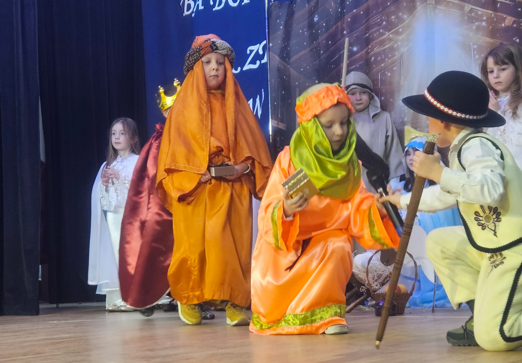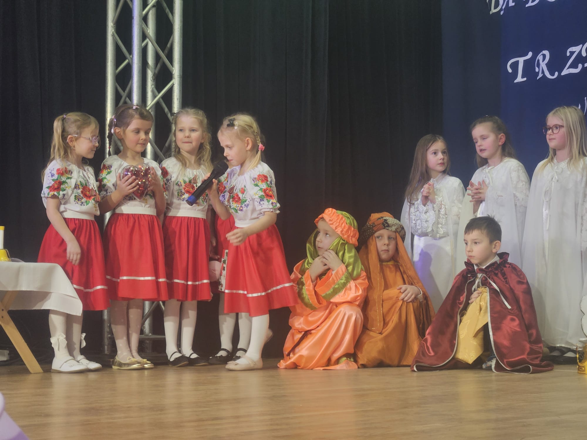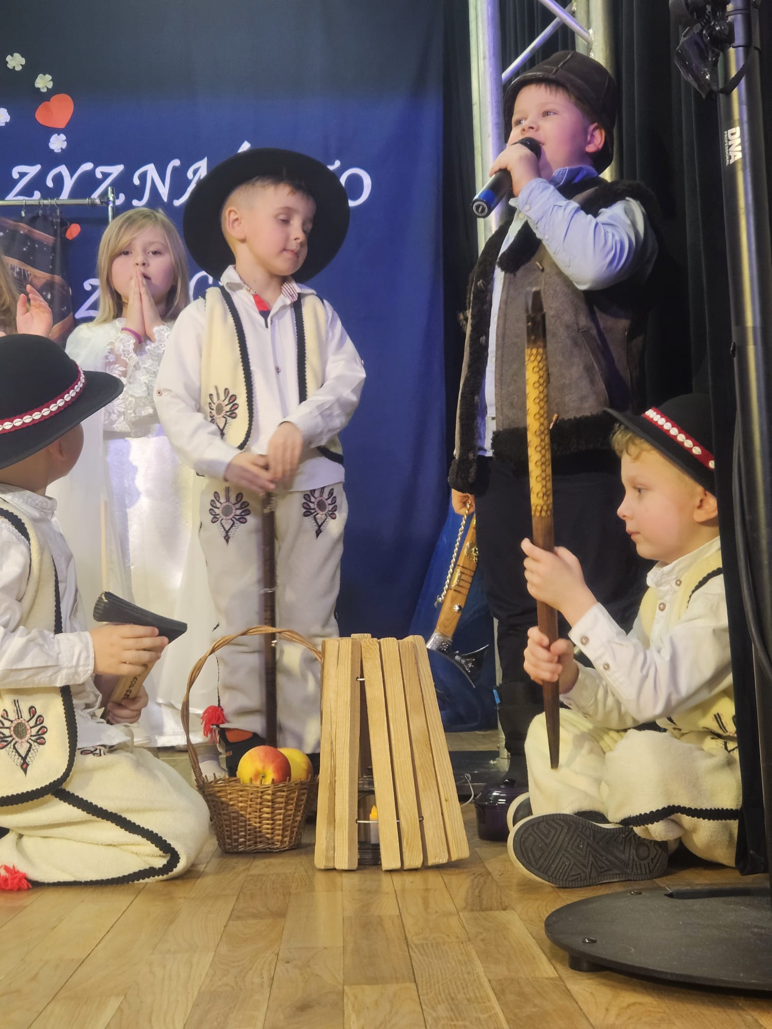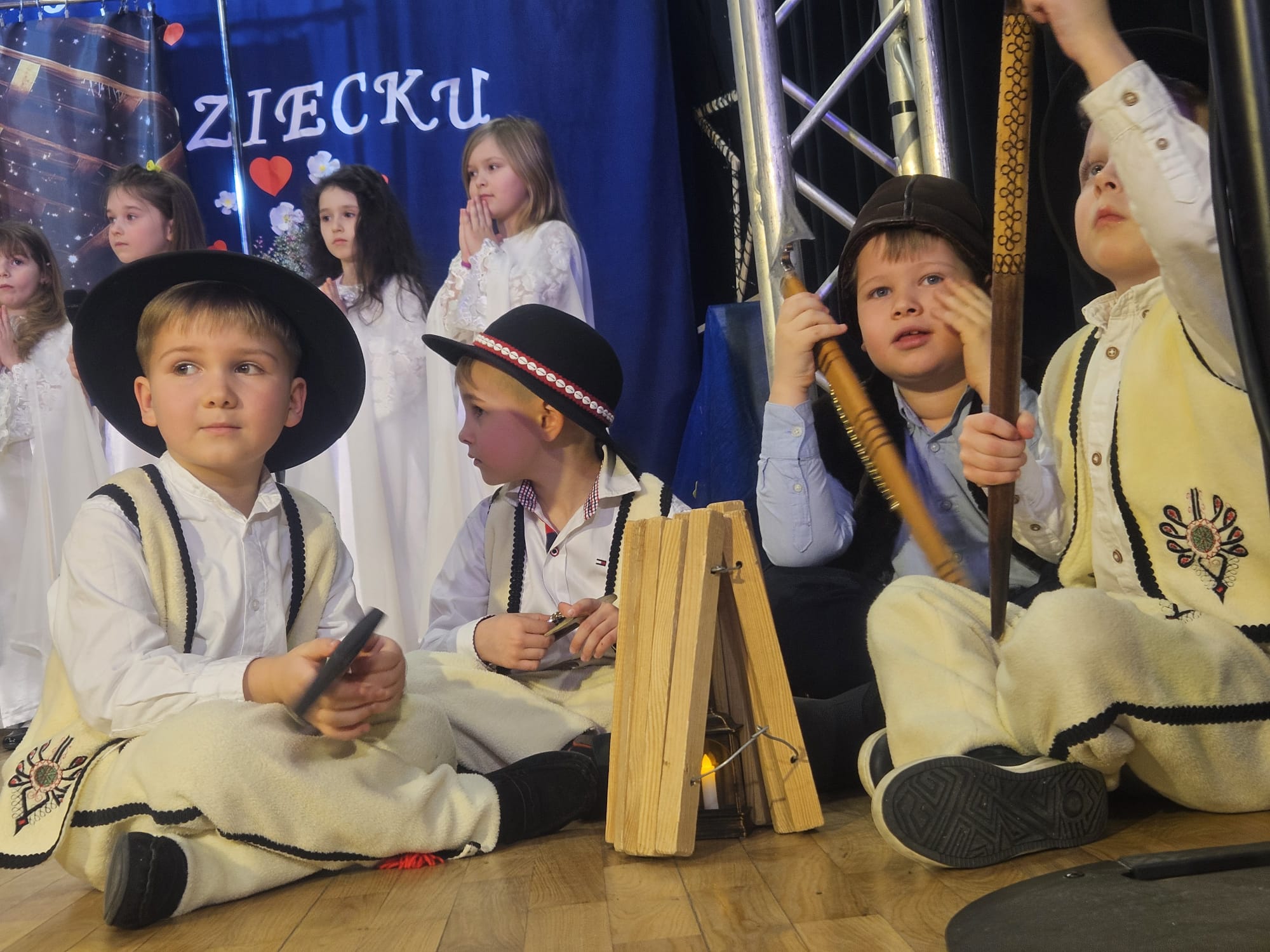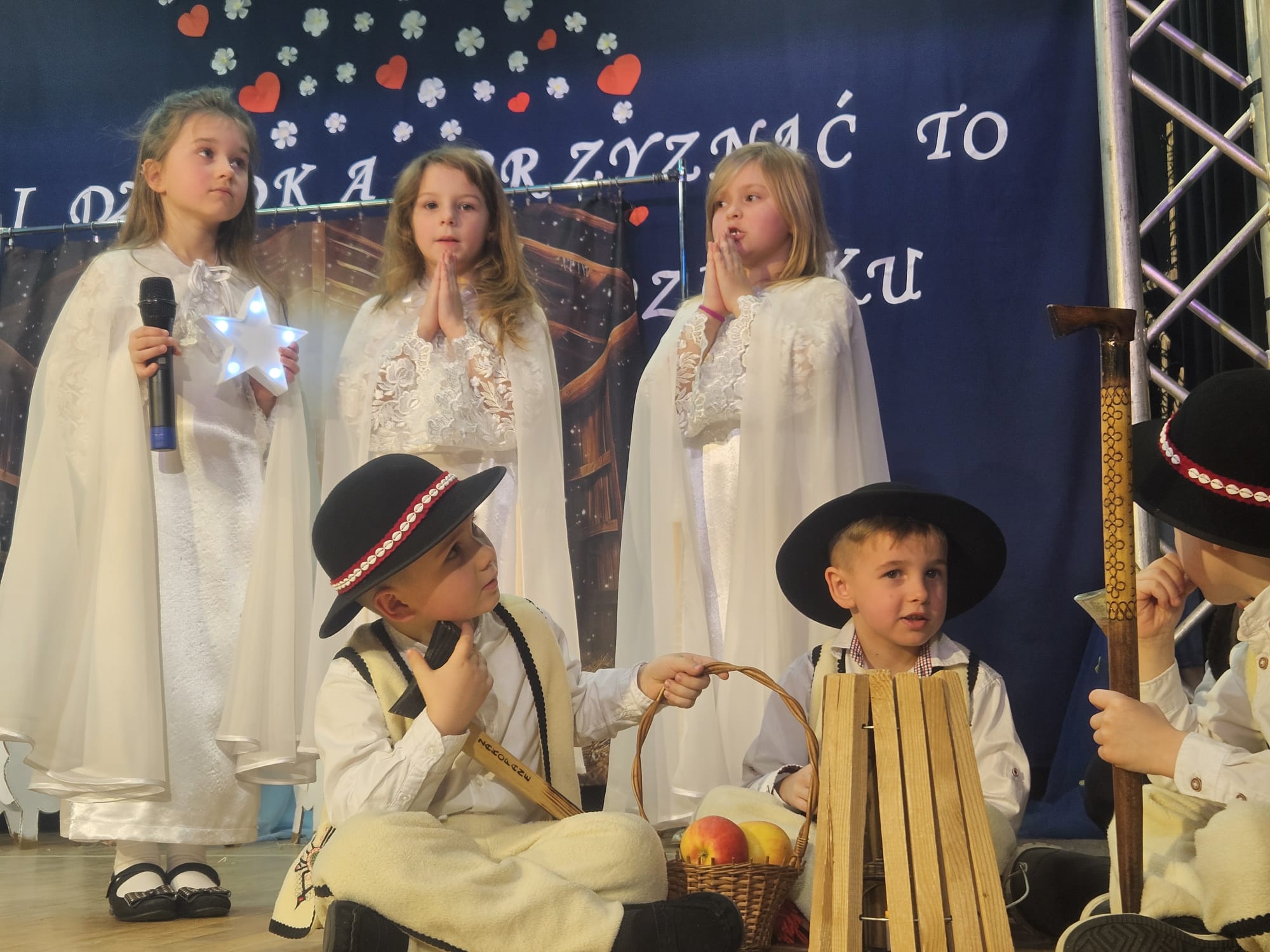 Na samym początku wszystkich licznie przybyłych gości przywitała Pani Dyrektor Ewa Paruch. W pierwszej kolejności wystąpiła grupa Słoneczek. Przedszkolaki zachwyciły publiczność pięknym występem pełnym radości i uśmiechu. Dzieci recytowały wzruszające wierszyki, śpiewały wesołe piosenki, a całość dopełniła zabawna scenka, w której babcia marzyła o zostaniu tancerką. W trakcie przedstawienia spotkała dziadka i razem, przy dźwiękach muzyki. Grupa Motylków z kolei zaprezentowała piękne jasełka, wprowadzając wszystkich w wyjątkowy nastrój. Dzieci śpiewały piosenki dedykowane Babciom i Dziadkom, sprawiając im wiele radości i wzruszeń. Swoją obecnością zaszczyciła nas również Pani wicewójt Joanna Pyrz, która wygłosiła przemówienie po występach dzieci. Na sam koniec wszystkie dzieci zebrały się razem na scenie, aby wyśpiewać Babciom i Dziadkom gromkie "Sto lat". Uroczystość uświetnił również występ Pana Krzysztofa Mirowskiego oraz jednej z naszych nauczycielek - Pani Mileny Bodurki.