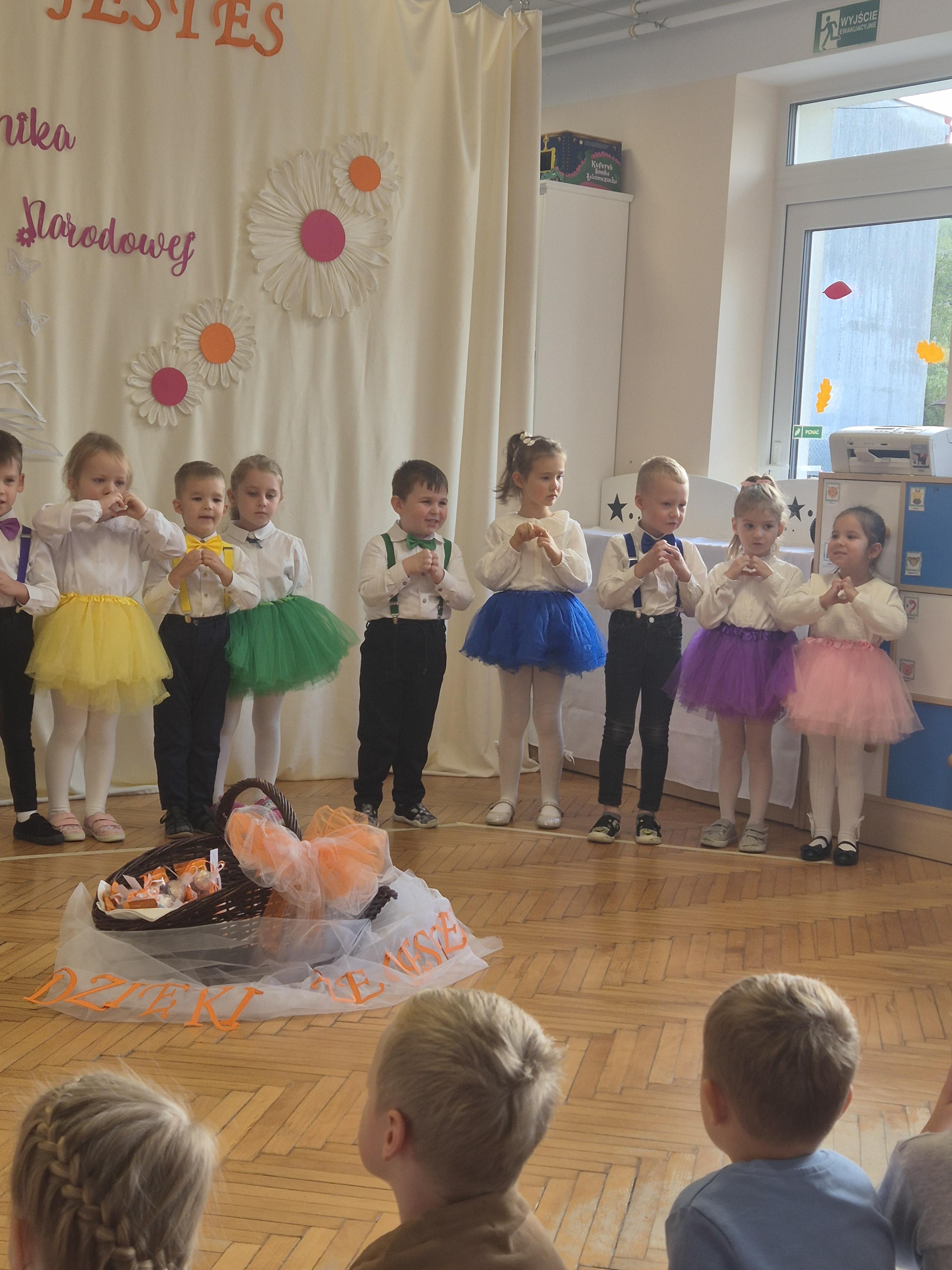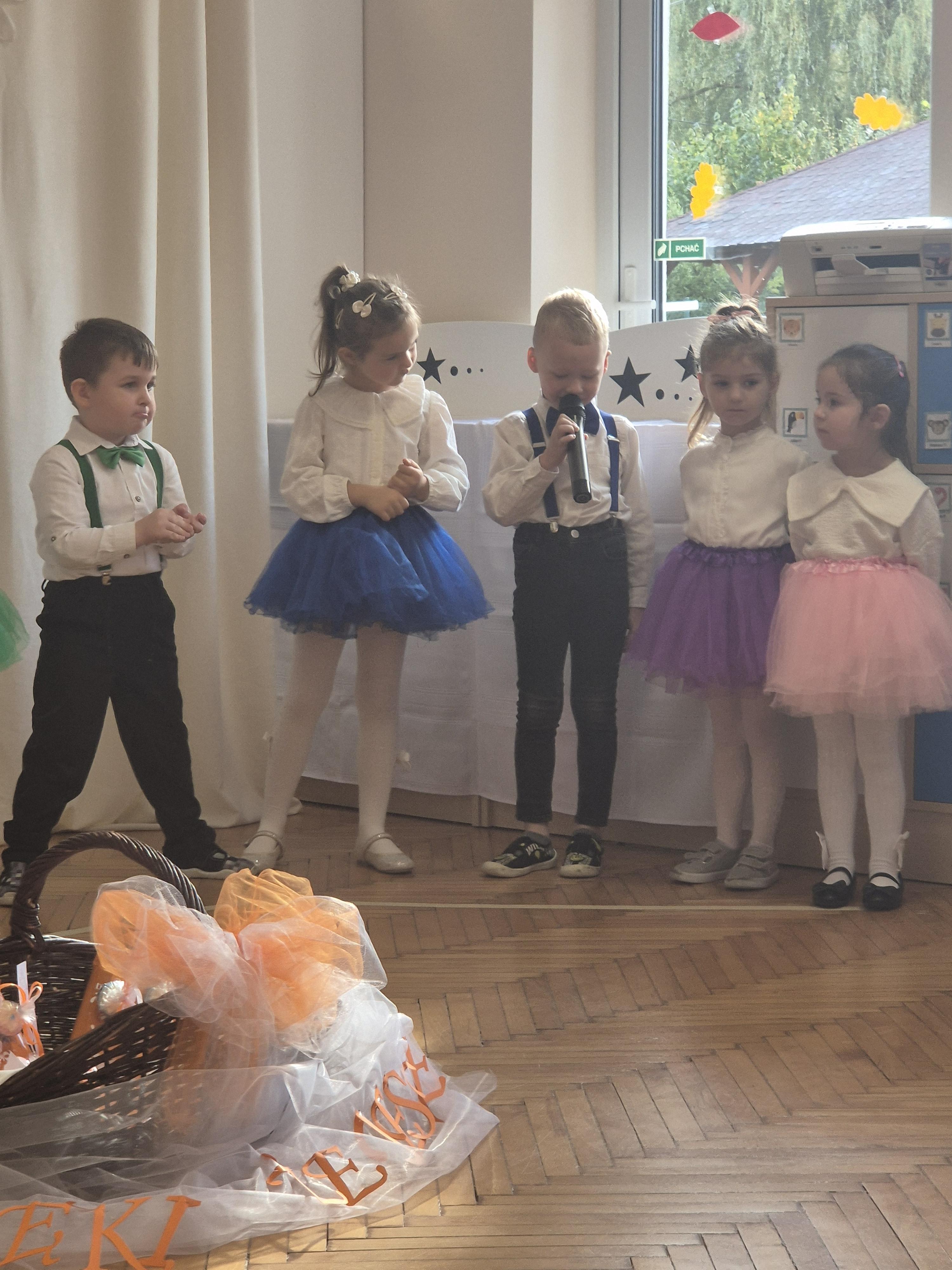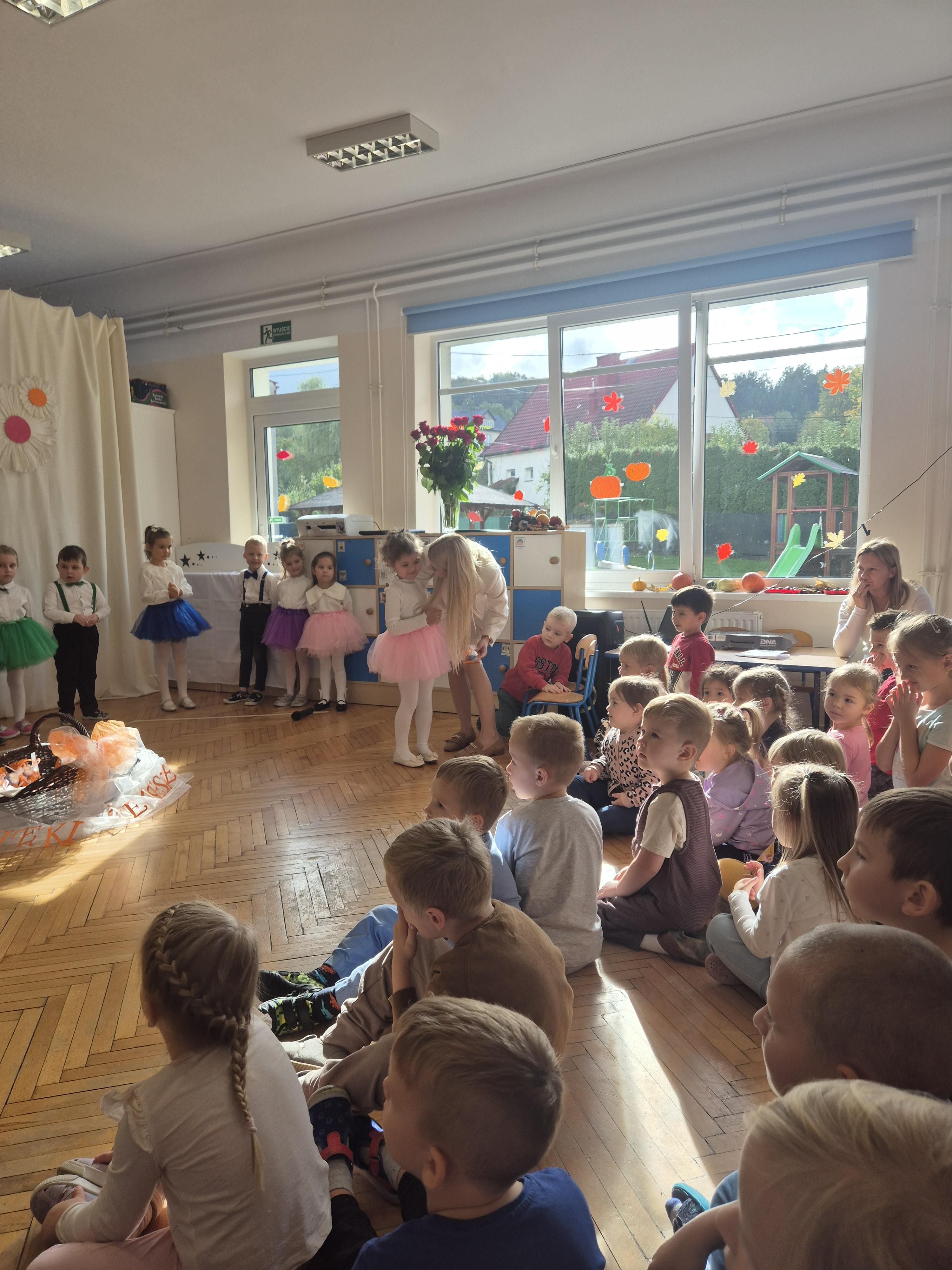 W dniu 13.10 w naszym przedszkolu odbył się występ artystyczny przygotowany przez dzieci z grupy Gwiazdeczki. Mali artyści zaprezentowali przed nauczycielami oraz pracownikami przedszkola pełen radości i emocji program artystyczny, który był wyrazem ich wdzięczności i sympatii wobec całego grona pedagogicznego.