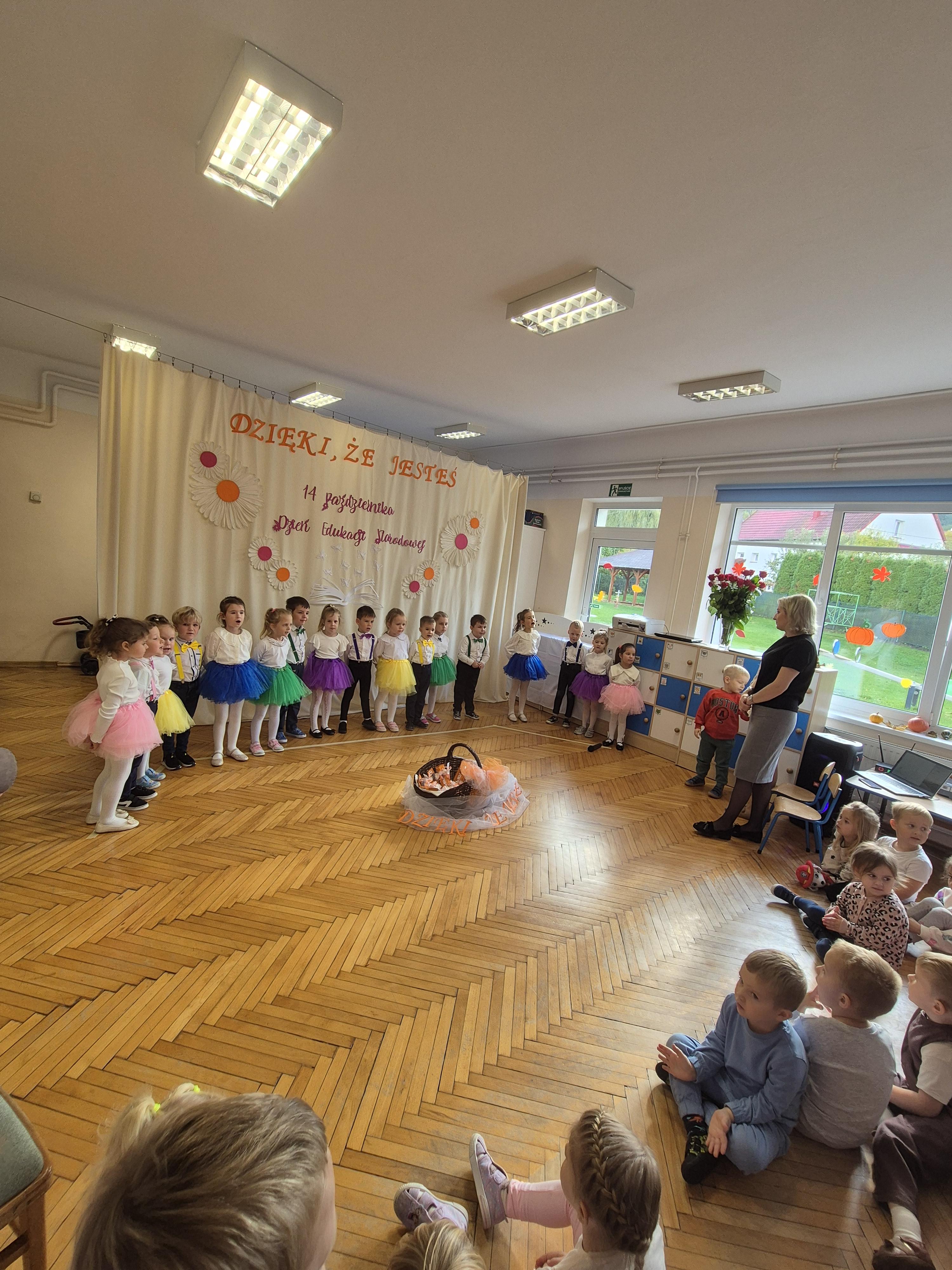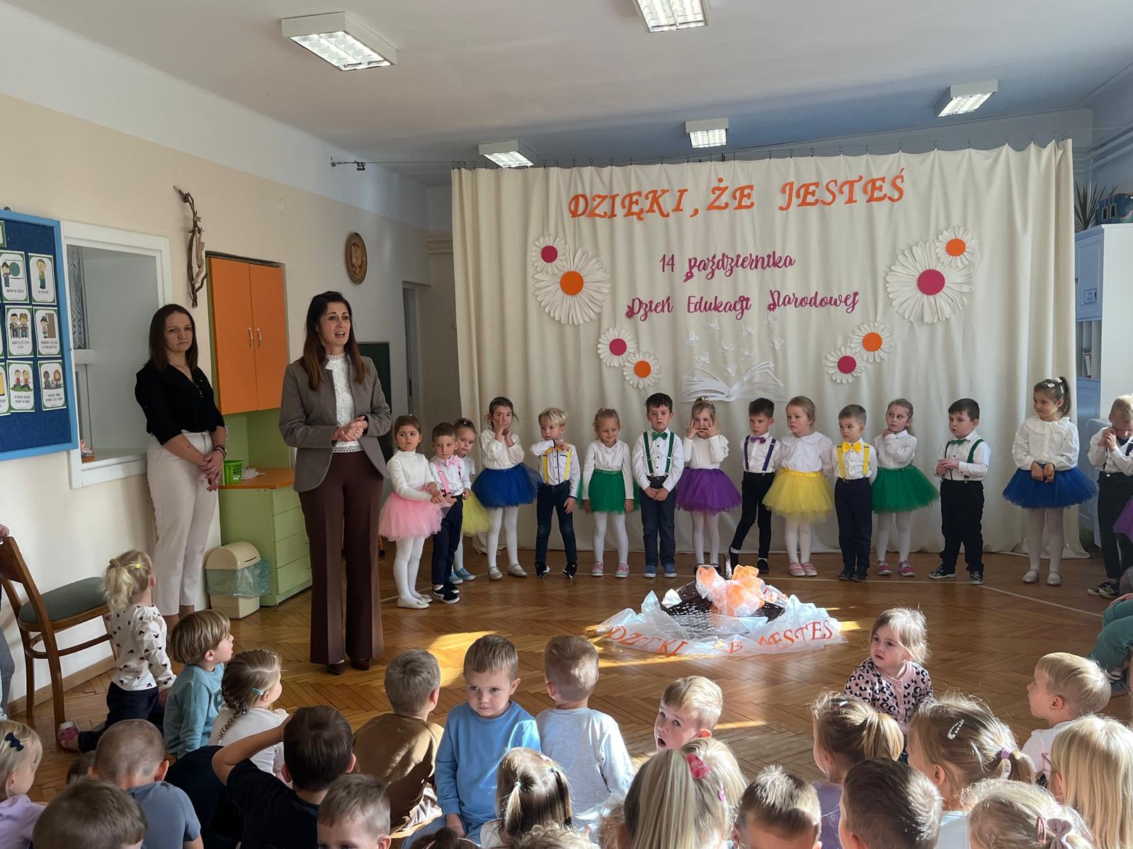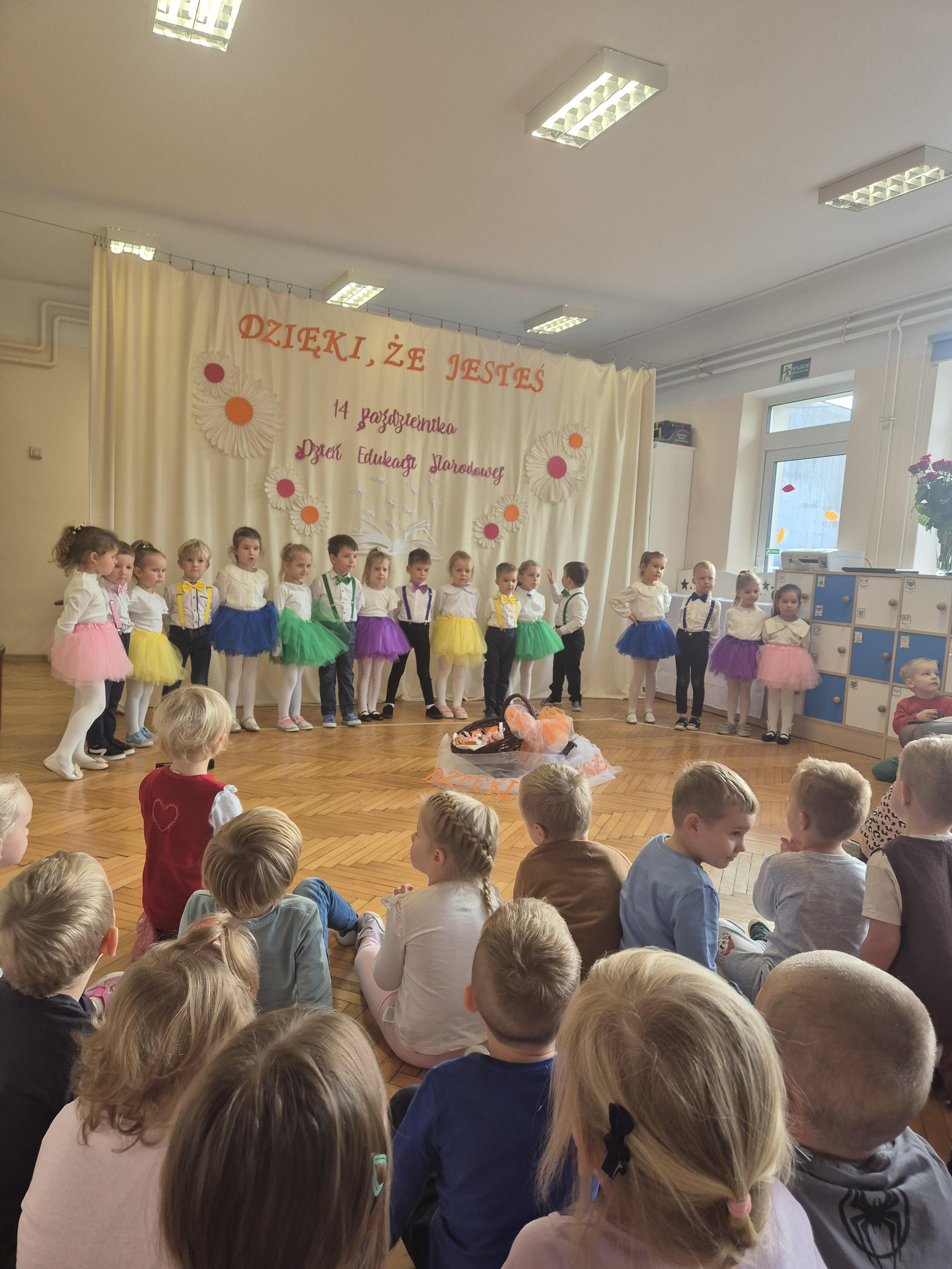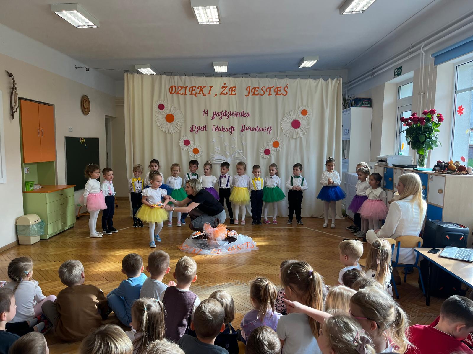 W dniu 13.10 w naszym przedszkolu odbył się występ artystyczny przygotowany przez dzieci z grupy Gwiazdeczki. Mali artyści zaprezentowali przed nauczycielami oraz pracownikami przedszkola pełen radości i emocji program artystyczny, który był wyrazem ich wdzięczności i sympatii wobec całego grona pedagogicznego.