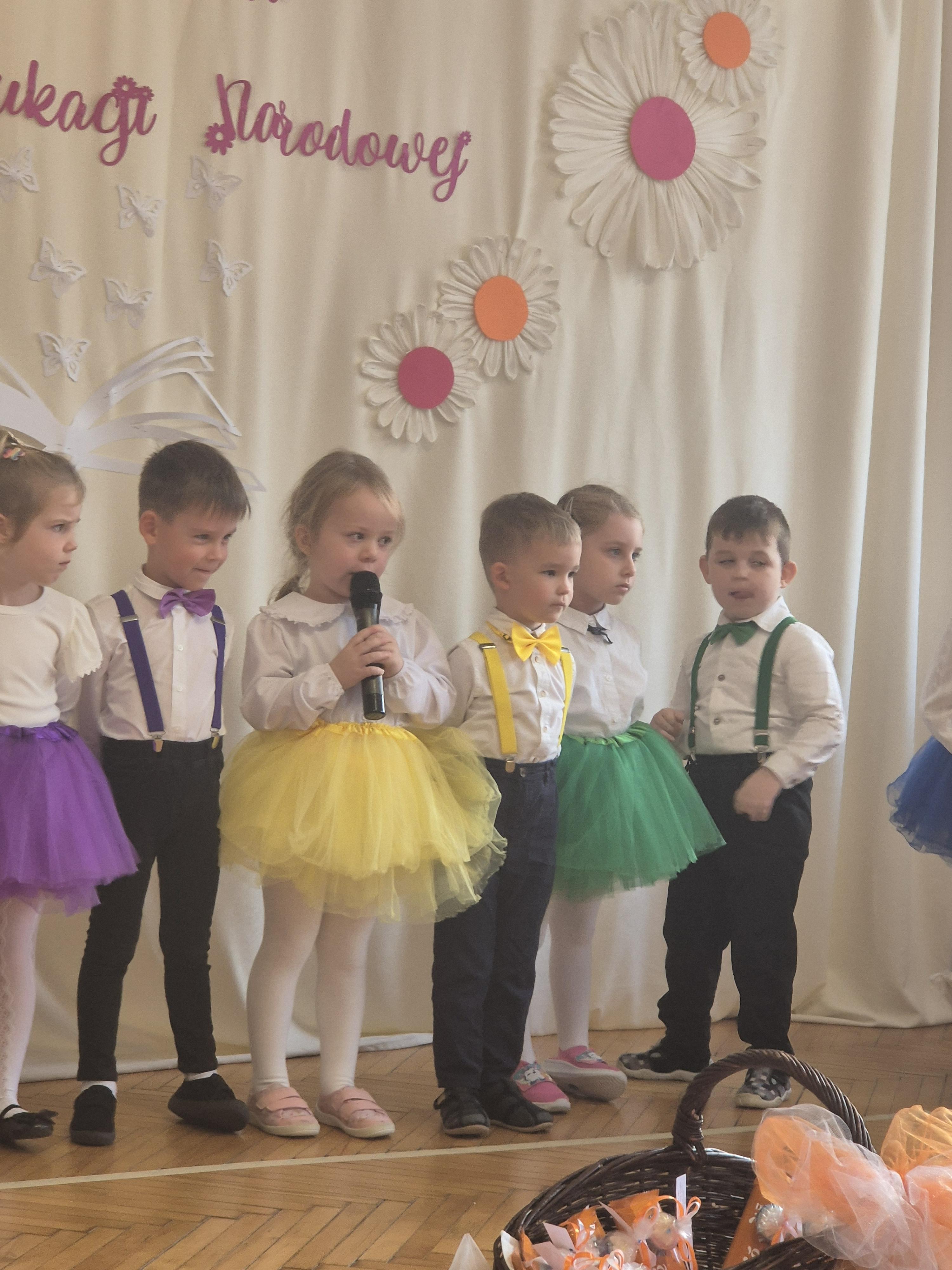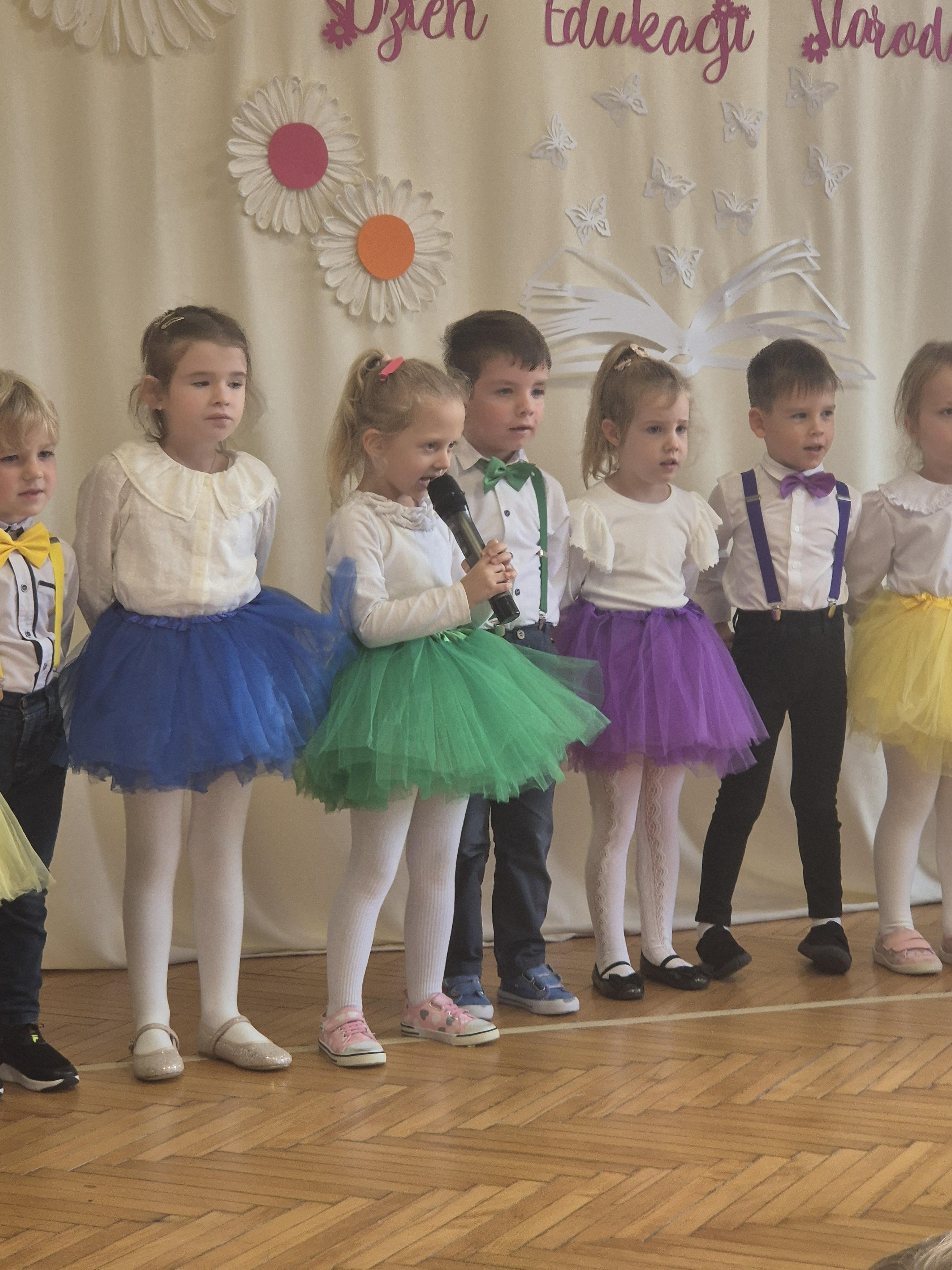Występ obejmował piosenki, wierszyki , które dzieci przygotowywały z dużym zaangażowaniem i entuzjazmem. Nie zabrakło wzruszeń, uśmiechów oraz braw, które były najlepszą nagrodą dla dzieci za ich trud i odwagę. Gwiazdeczki wykazały się nie tylko talentem artystycznym, ale także odwagą sceniczną i radością z występowania przed publicznością. Wydarzenie to było piękną okazją do integracji całej społeczności przedszkolnej oraz podkreślenia roli nauczycieli w codziennym wychowaniu i rozwoju dzieci. Dziękujemy wszystkim nauczycielom oraz wszystkim pracownikom przedszkola za ich cierpliwość, serce i codzienne zaangażowanie, a dzieciom – za cudowny występ, który na długo pozostanie w naszej pamięci. Na koniec Pani Dyrektor Ewa Paruch podziękowała Gwiazdeczkomza piękny występ i złożyła nauczcielom i pracownikom przedszkola życzenia z okazji ich święta. Serdeczne podziękowania kierujemy również do Rady Rodziców za słodki poczęstunek i upominek dla każdego pracownika przedszkola. Jeszcze raz 100 lat dla całej kadry pedagogicznej.