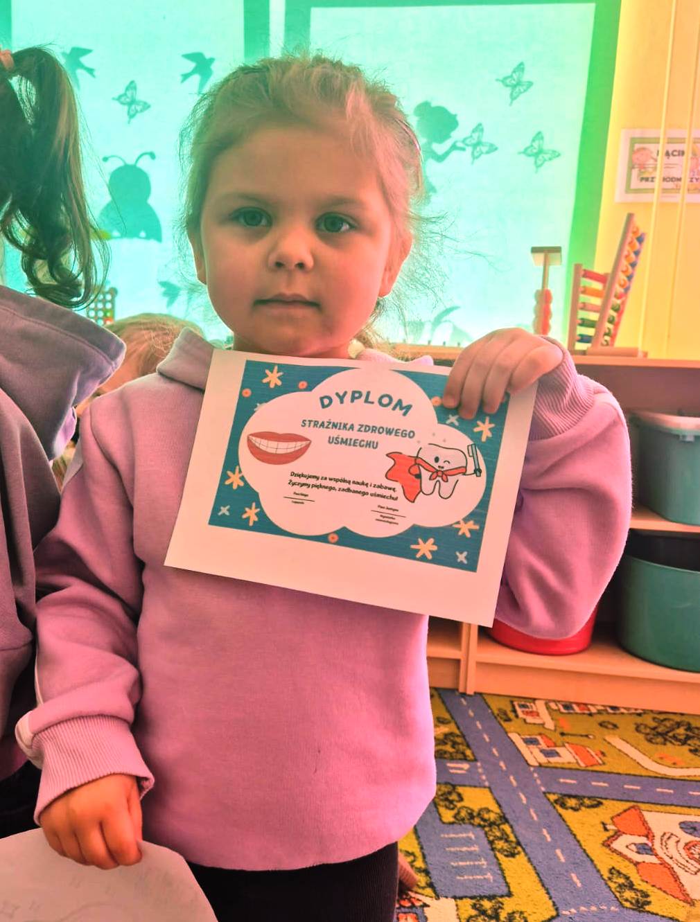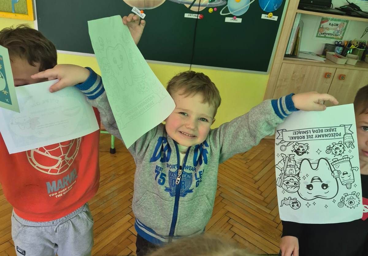 W tym roku pani Kinga Siekacz – logopeda naszego przedszkola – połączyła temat dbania o piękną mowę z troską o zdrowy i piękny uśmiech. Dzieci miały okazję wcielić się w rolę „Strażników Zdrowego Uśmiechu”, zdobywając wiedzę i nowe umiejętności poprzez zabawę i aktywne uczestnictwo w zajęciach.