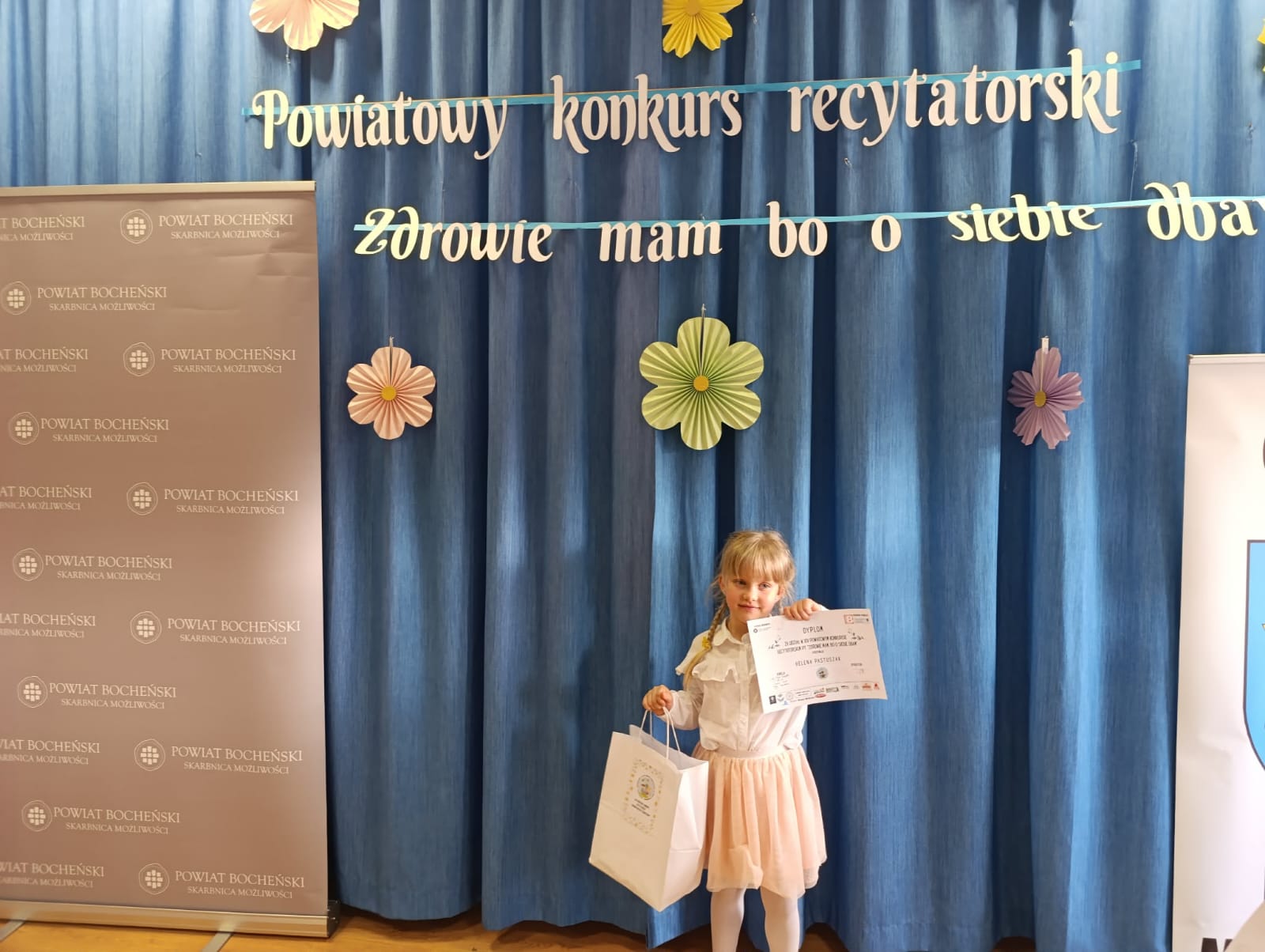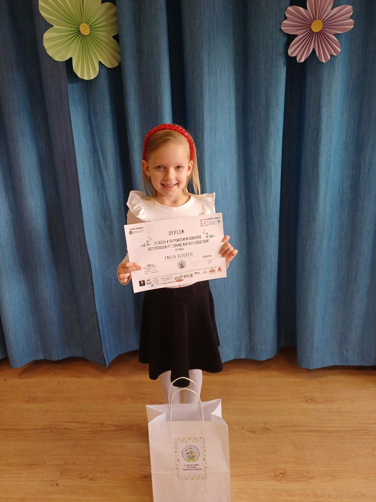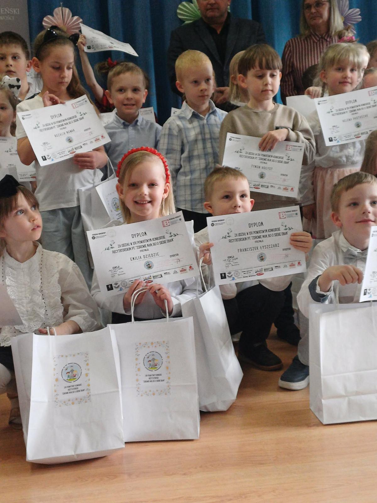 19 marca 2026 r. odbył się XIV Powiatowy Konkurs Recytatorsko-Krasomówczy w Lipnicy Murowanej pod honorowym patronatem Wójta Gminy Lipnica Murowana oraz Starosty Bocheńskiego. Hasło tegorocznego konkursu brzmiało: "Zdrowie mam bo o siebie dbam". Zadaniem dzieci 6-letnich było zaprezentowanie wybranego utworu literackiego na temat zdrowia i sposobów dbanie o nie. Nasze przedszkole zaprezentowały: Helena Pastuszak, która wyrecytowała wiersz pt.: "Witaminowe abecadło" oraz Emilia Dziedzic, która przedstawiła utwór pt.: "Na zdrowie". Obie uczestniczki pięknie wyrecytowały wiersze, za co otrzymały zasłużone dyplomy i upominki. Gratulujemy.