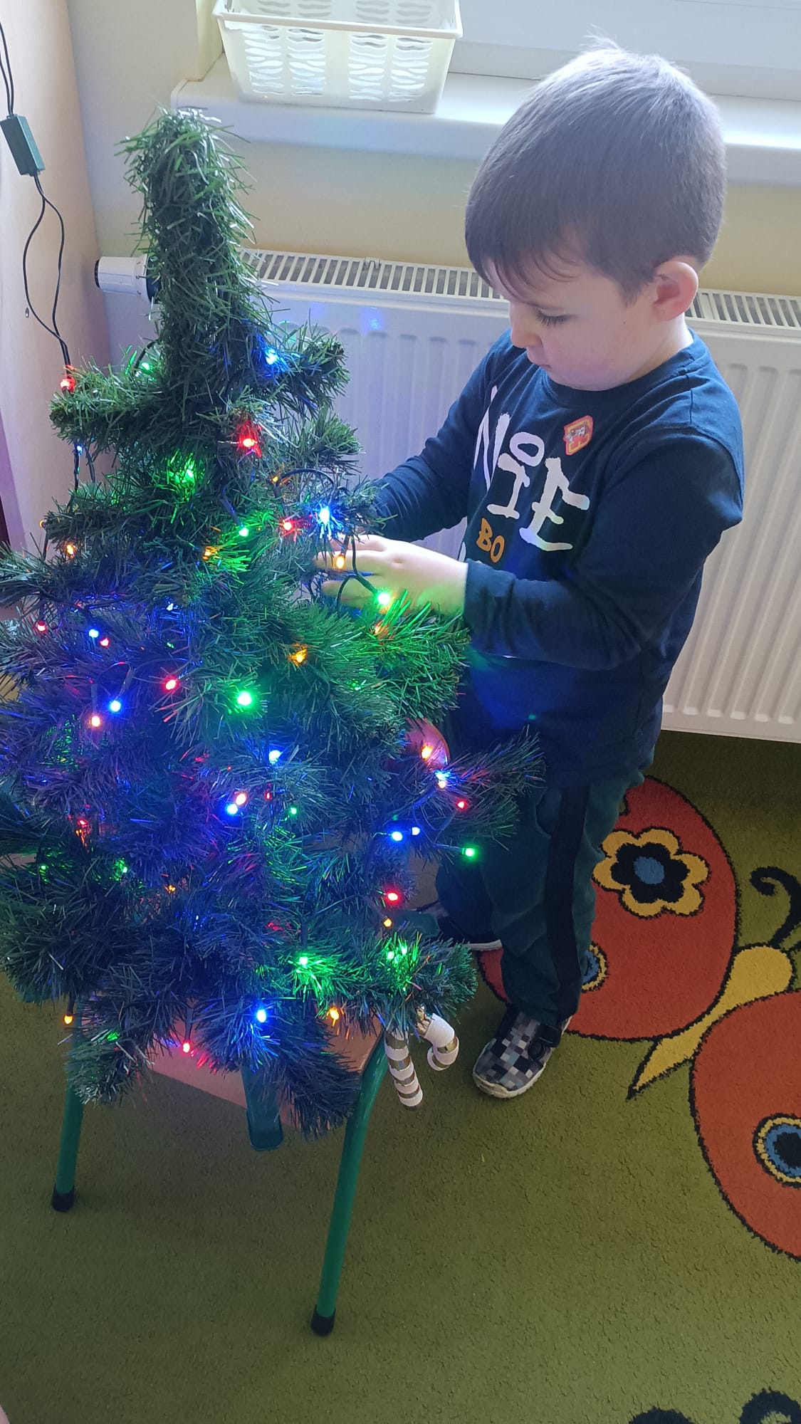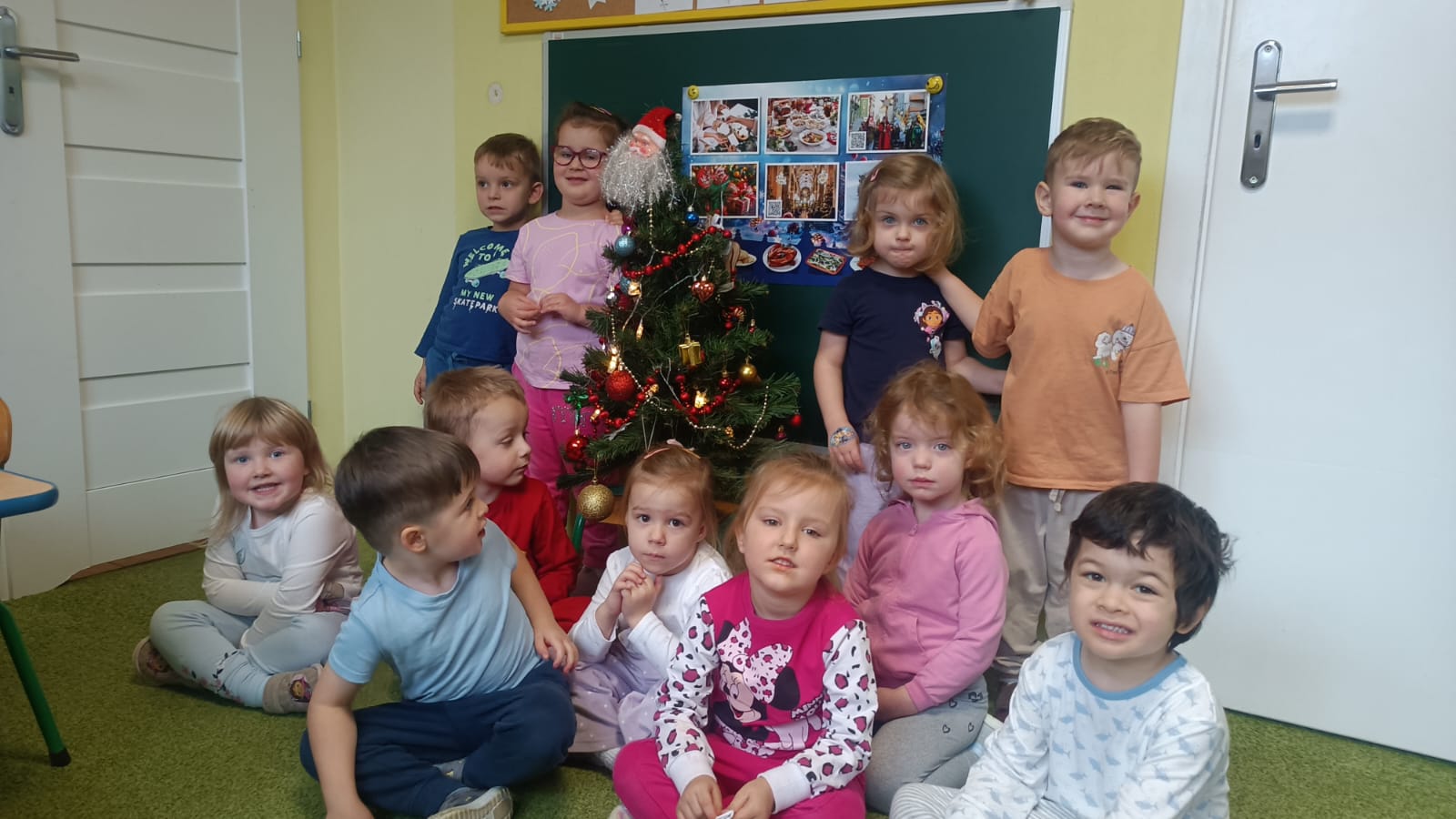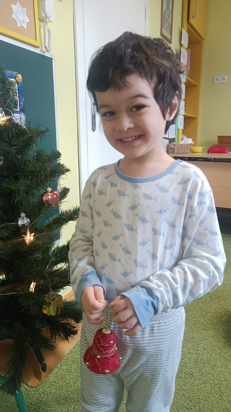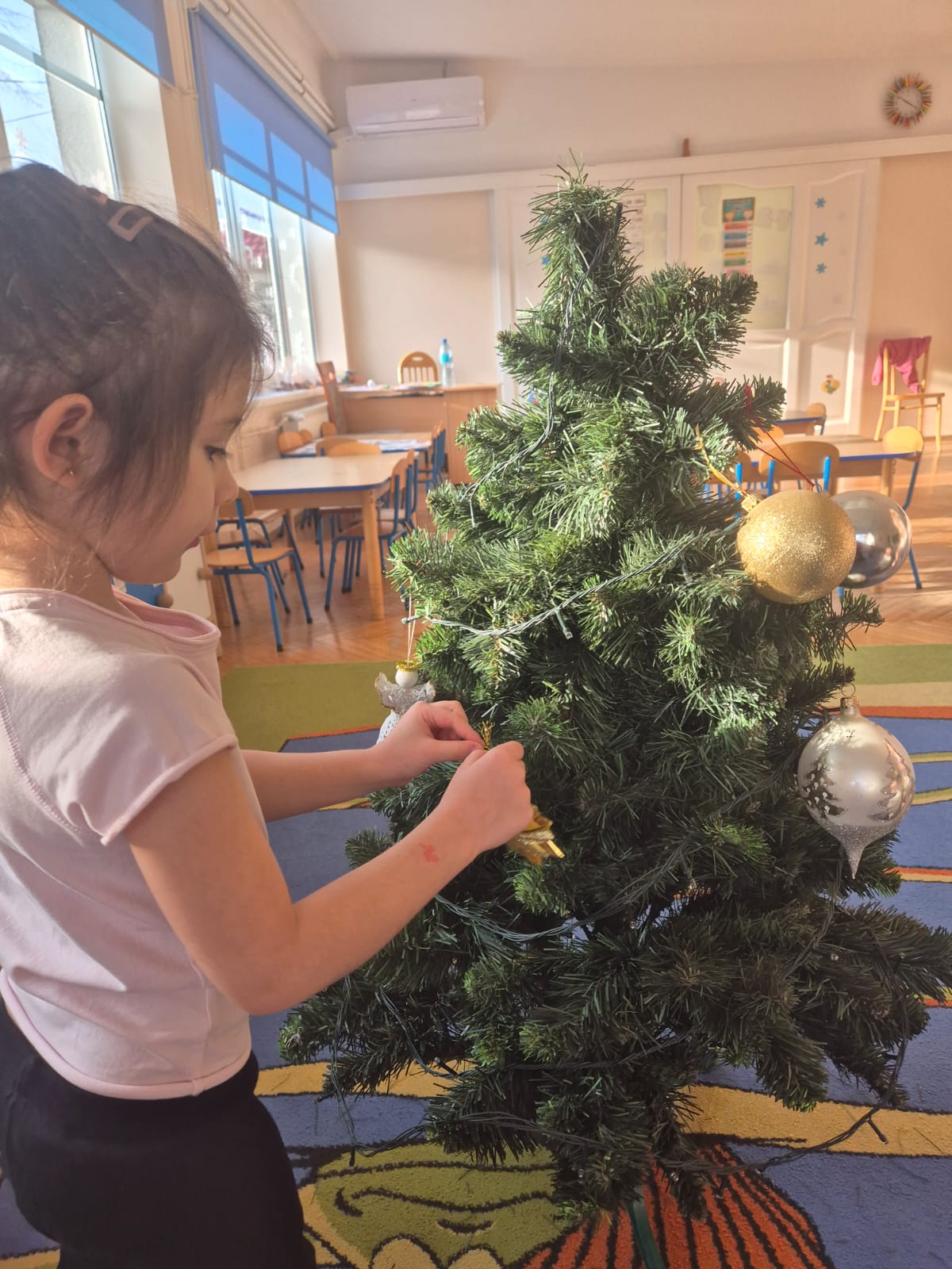 W ramach przygotowań do Świąt Bożego Narodzenia dzieci z przedszkola wzięły udział w uroczystym ubieraniu choinek w swoich salach. Przedszkolaki z dużym zaangażowaniem i radością zawieszały kolorowe bombki, łańcuchy oraz własnoręcznie wykonane ozdoby. Podczas wspólnej pracy dzieci uczyły się współdziałania, dzielenia ozdobami oraz pielęgnowania tradycji świątecznych. Ubieraniu choinki towarzyszyły rozmowy o symbolice świąt oraz śpiewanie kolęd. Przystrojone choinki wprowadziły w salach radosną, świąteczną atmosferę i pomogły dzieciom poczuć wyjątkowy klimat nadchodzącego Bożego Narodzenia.