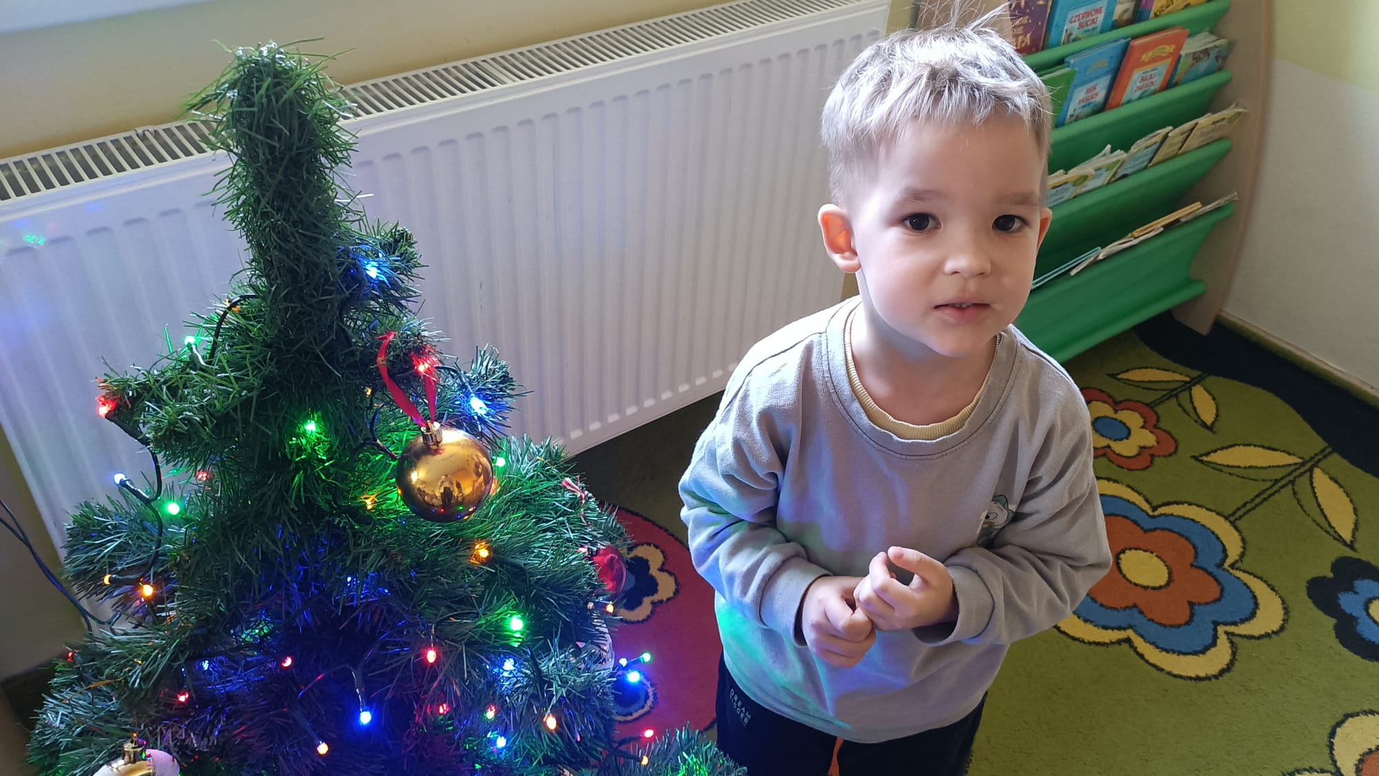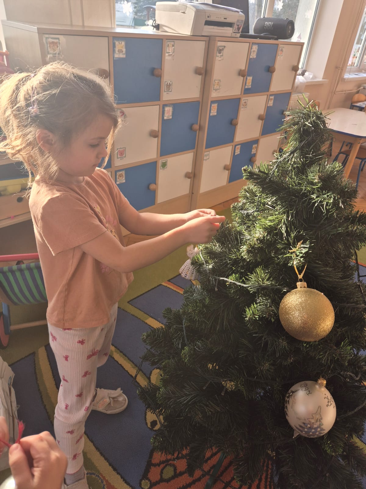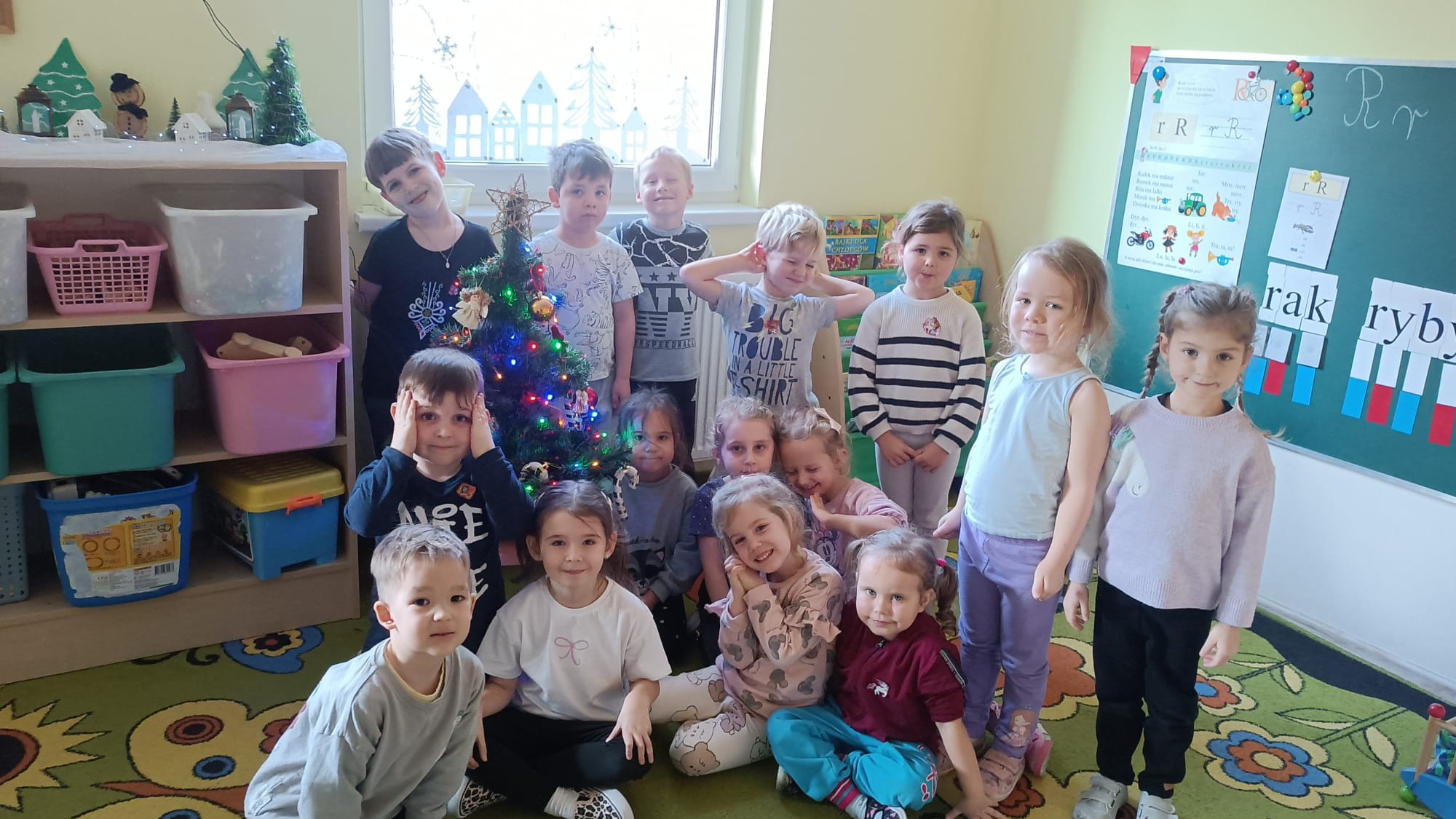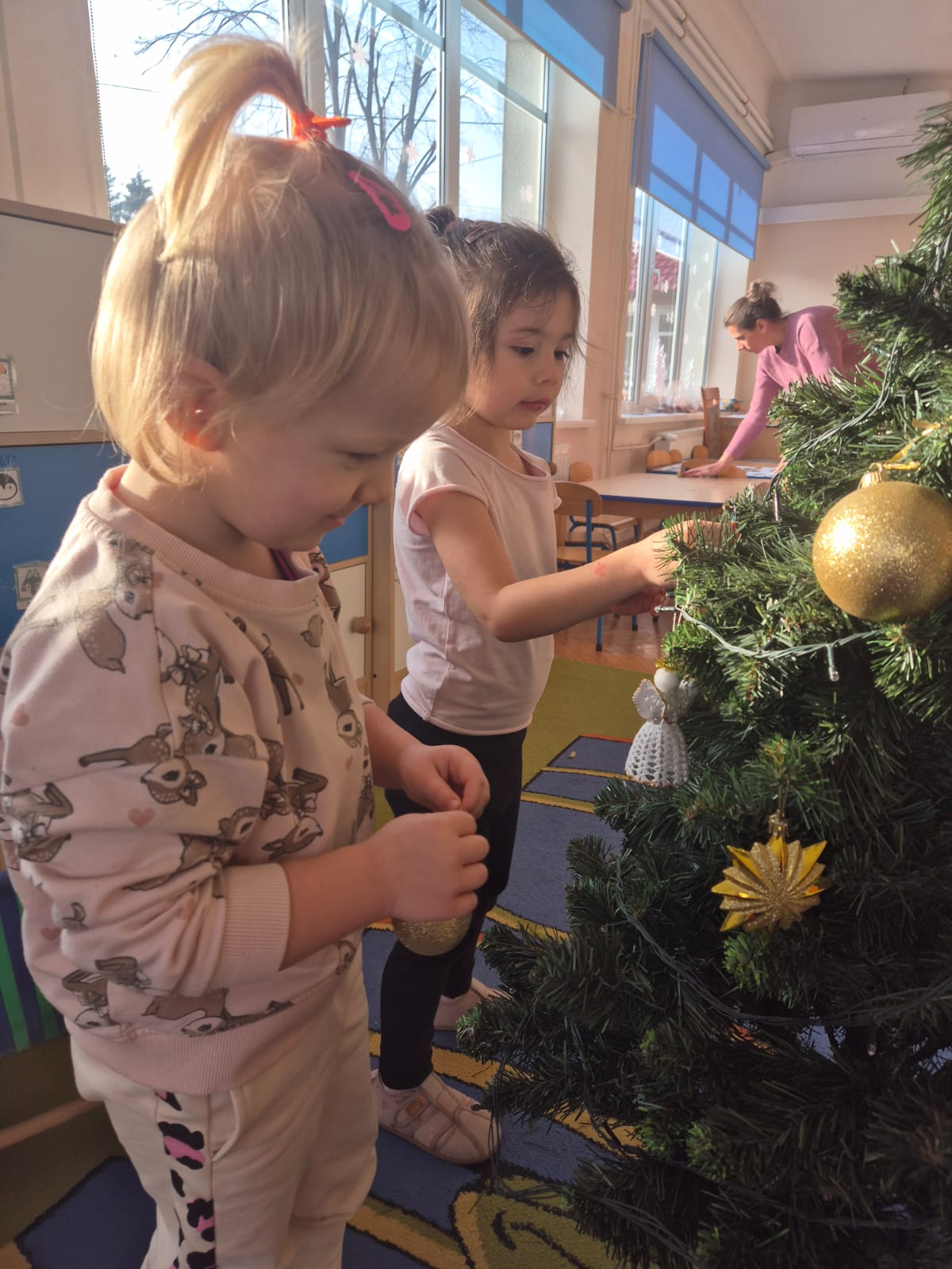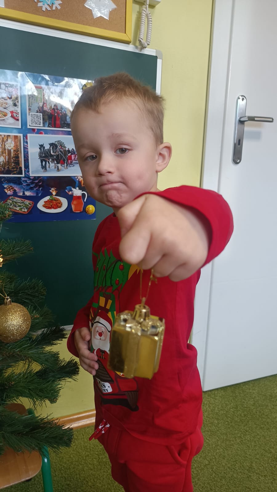 W ramach przygotowań do Świąt Bożego Narodzenia dzieci z przedszkola wzięły udział w uroczystym ubieraniu choinek w swoich salach. Przedszkolaki z dużym zaangażowaniem i radością zawieszały kolorowe bombki, łańcuchy oraz własnoręcznie wykonane ozdoby. Podczas wspólnej pracy dzieci uczyły się współdziałania, dzielenia ozdobami oraz pielęgnowania tradycji świątecznych. Ubieraniu choinki towarzyszyły rozmowy o symbolice świąt oraz śpiewanie kolęd. Przystrojone choinki wprowadziły w salach radosną, świąteczną atmosferę i pomogły dzieciom poczuć wyjątkowy klimat nadchodzącego Bożego Narodzenia.