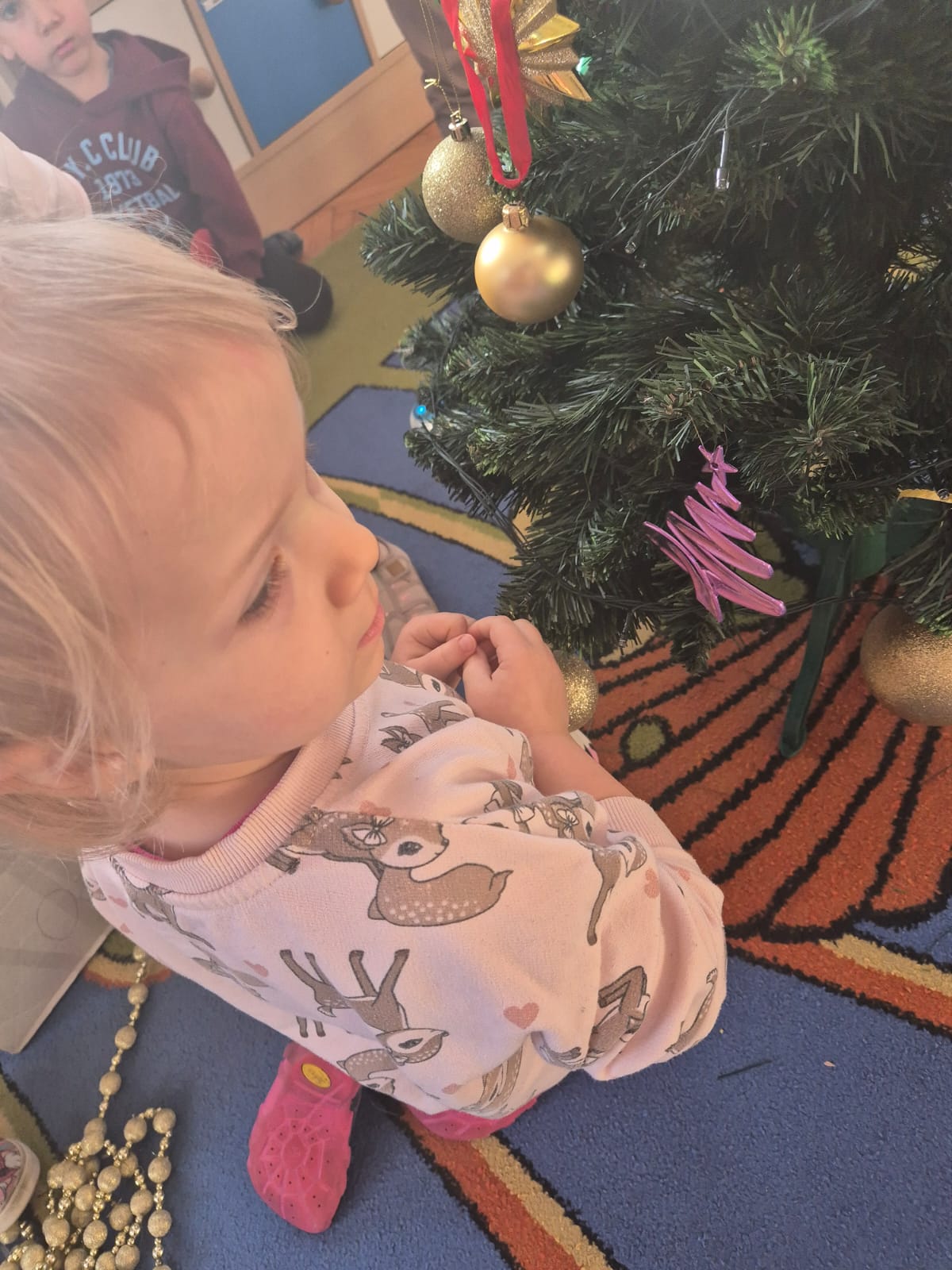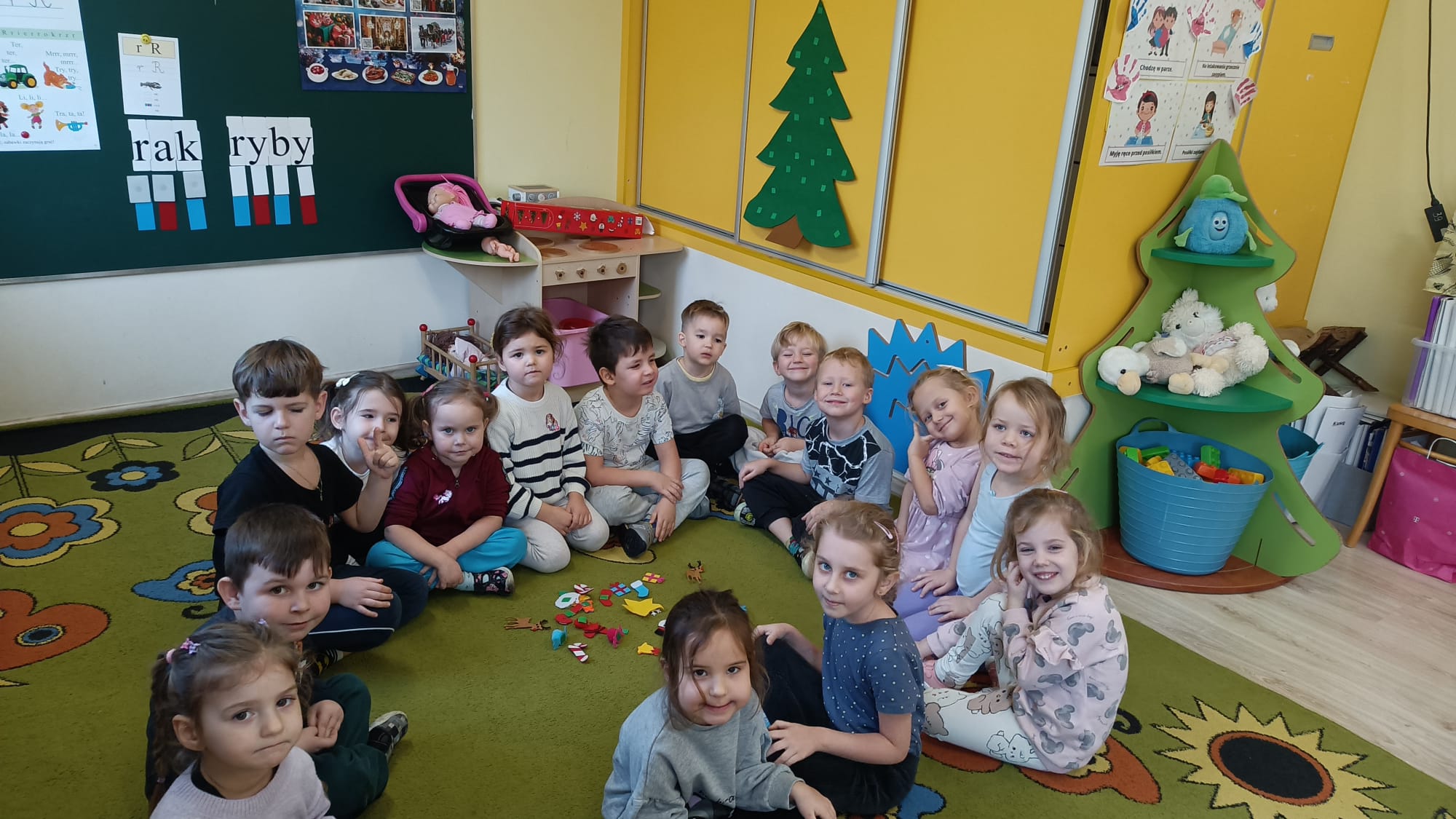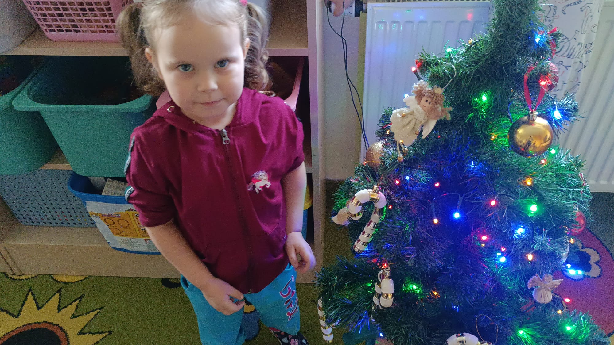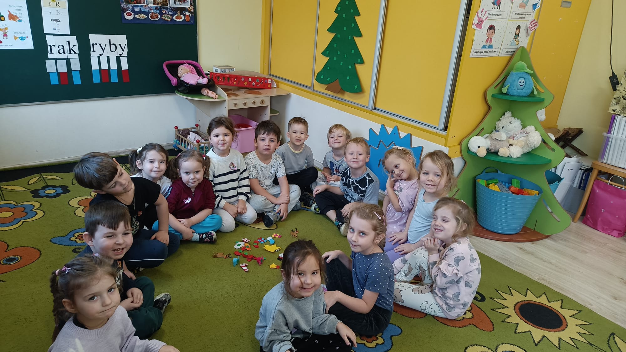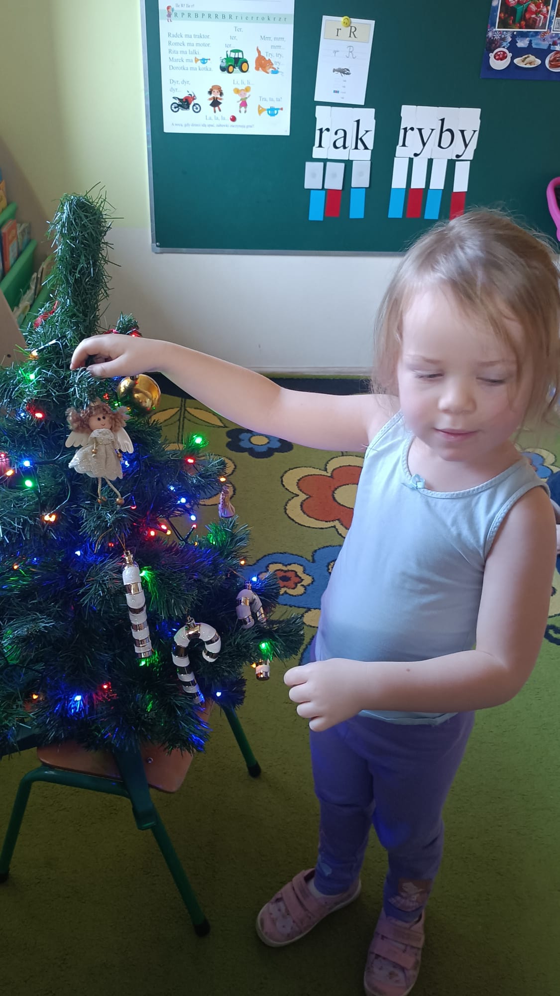 W ramach przygotowań do Świąt Bożego Narodzenia dzieci z przedszkola wzięły udział w uroczystym ubieraniu choinek w swoich salach. Przedszkolaki z dużym zaangażowaniem i radością zawieszały kolorowe bombki, łańcuchy oraz własnoręcznie wykonane ozdoby. Podczas wspólnej pracy dzieci uczyły się współdziałania, dzielenia ozdobami oraz pielęgnowania tradycji świątecznych. Ubieraniu choinki towarzyszyły rozmowy o symbolice świąt oraz śpiewanie kolęd. Przystrojone choinki wprowadziły w salach radosną, świąteczną atmosferę i pomogły dzieciom poczuć wyjątkowy klimat nadchodzącego Bożego Narodzenia.