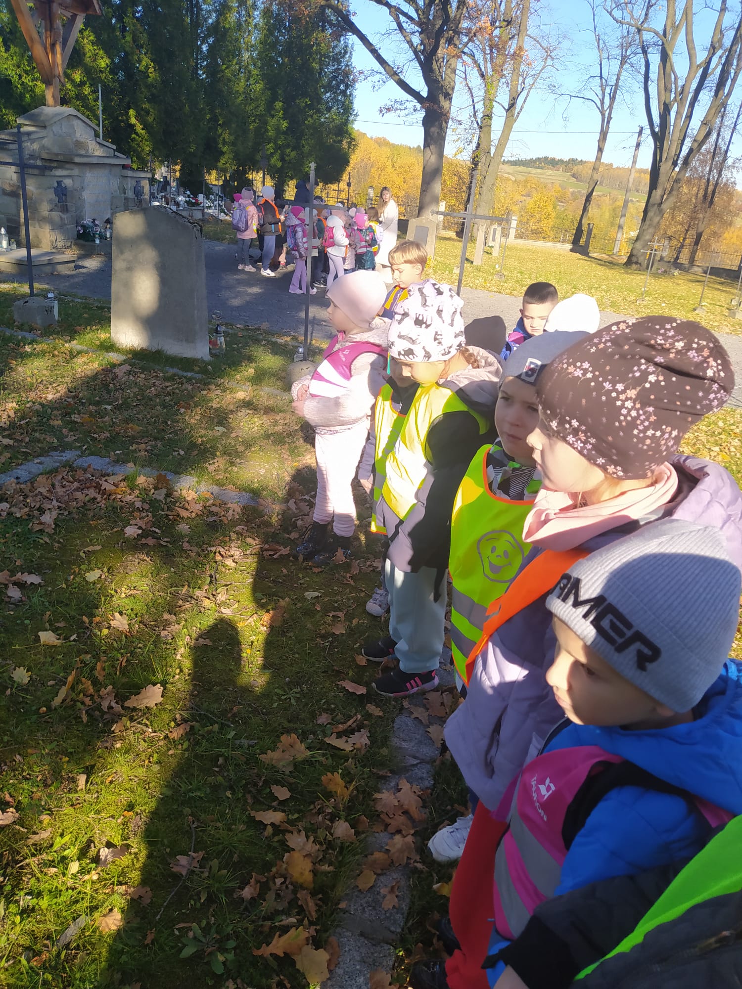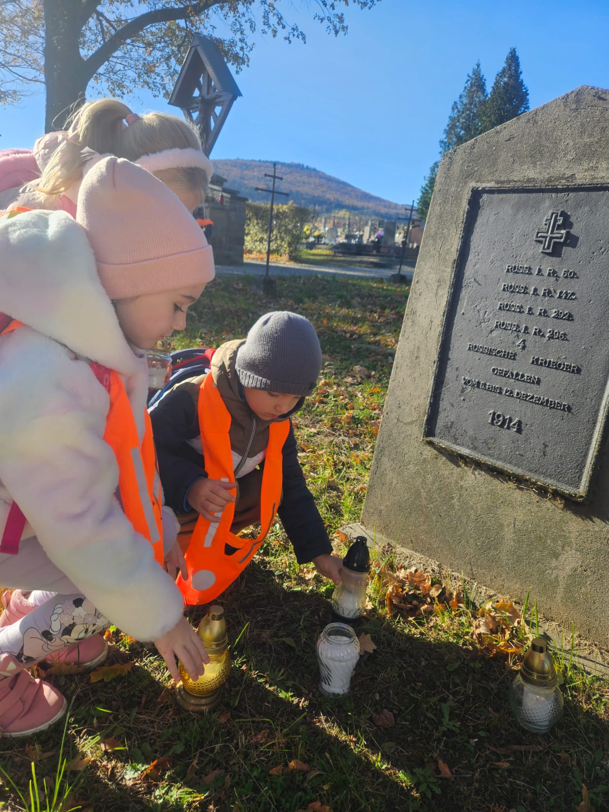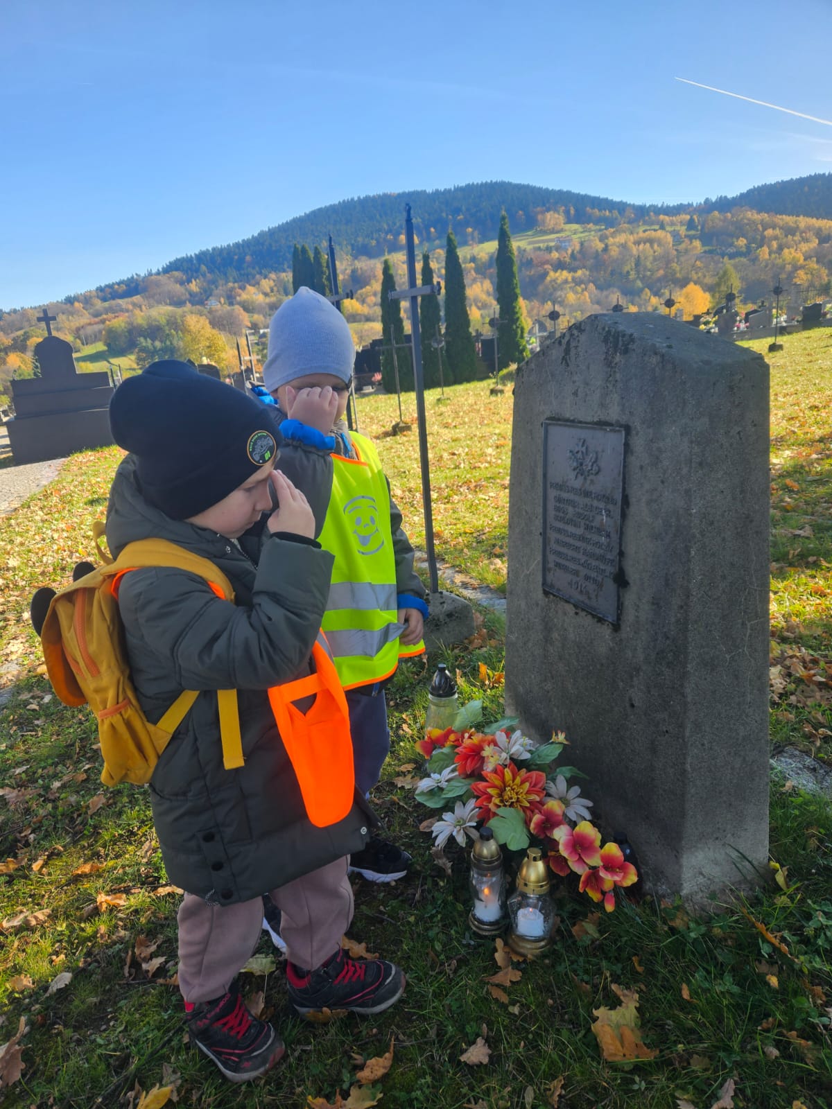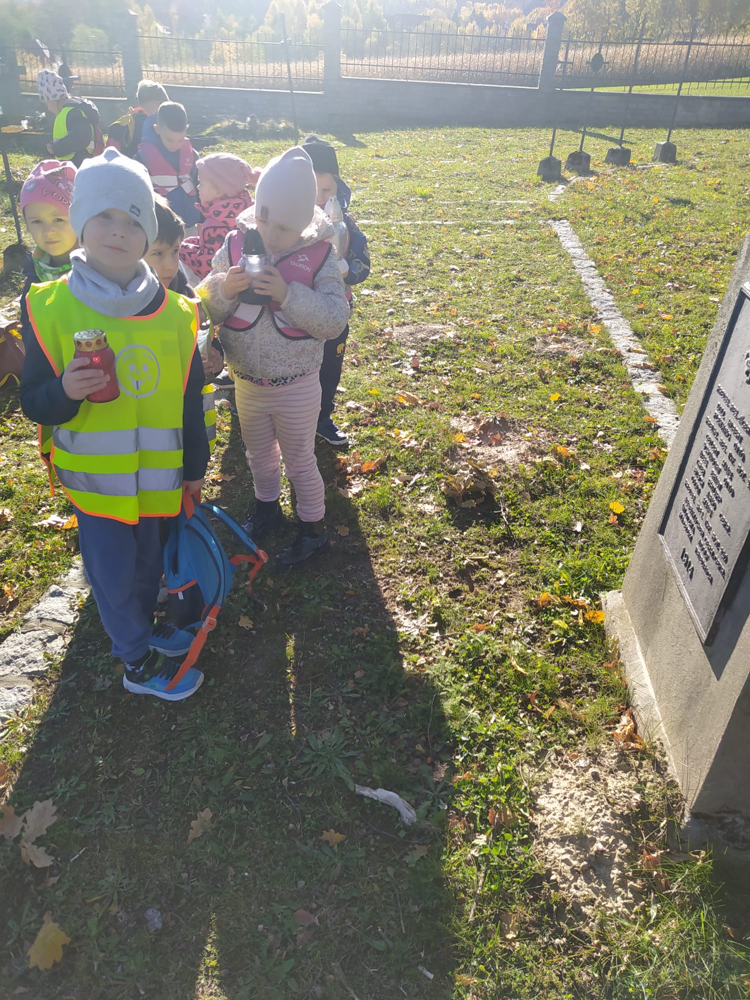 W piątek, 31 października, dzieci z grup „Motylki” i „Promyczki” udały się na pobliski cmentarz, aby uczcić pamięć zmarłych żołnierzy, którzy polegli podczas I i II wojny światowej. Podczas wizyty rozmawialiśmy z dziećmi o znaczeniu tego miejsca, o tym, dlaczego co roku wspominamy tych, którzy oddali życie za naszą Ojczyznę i jak wiele im zawdzięczamy.
