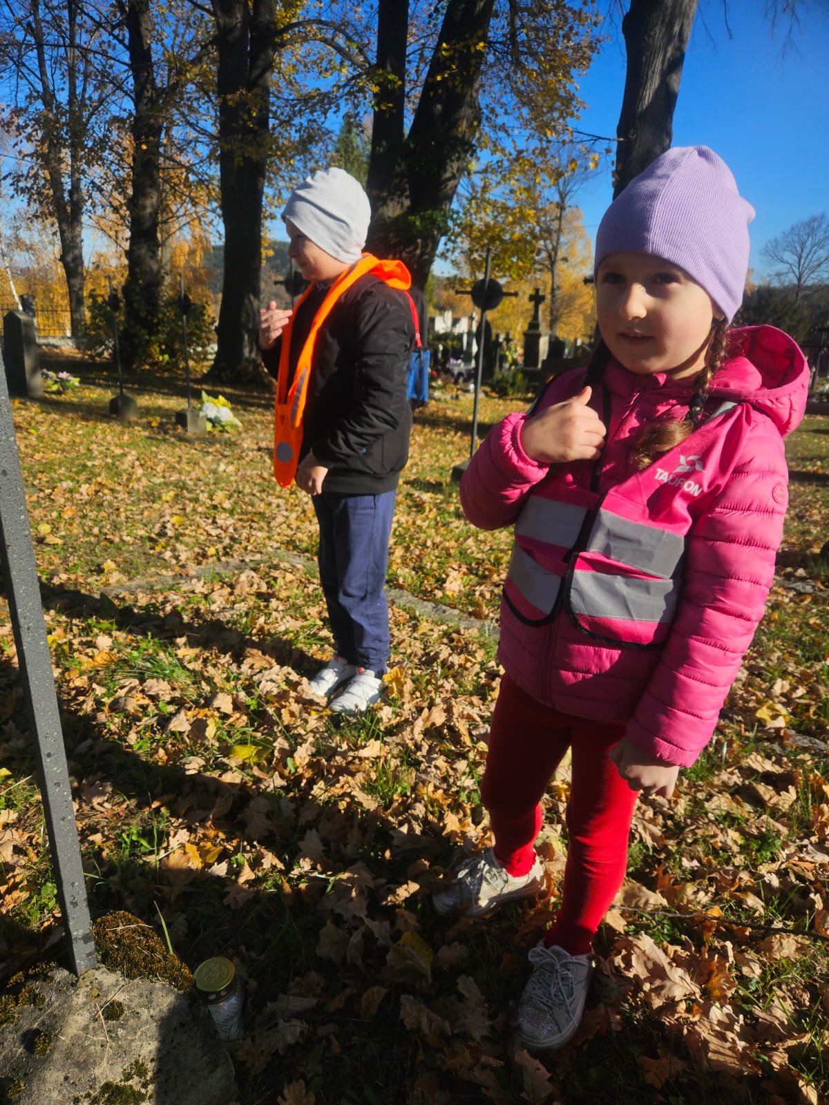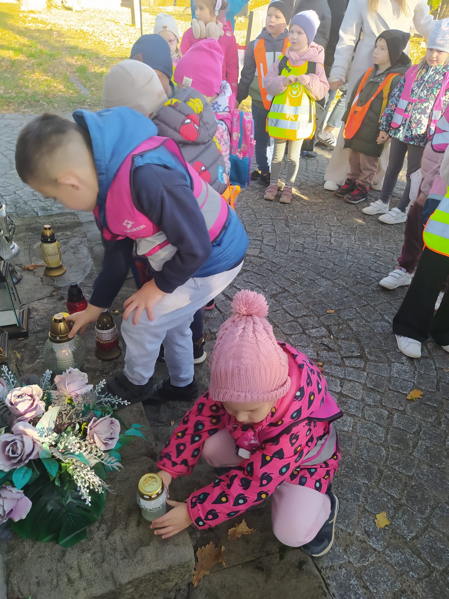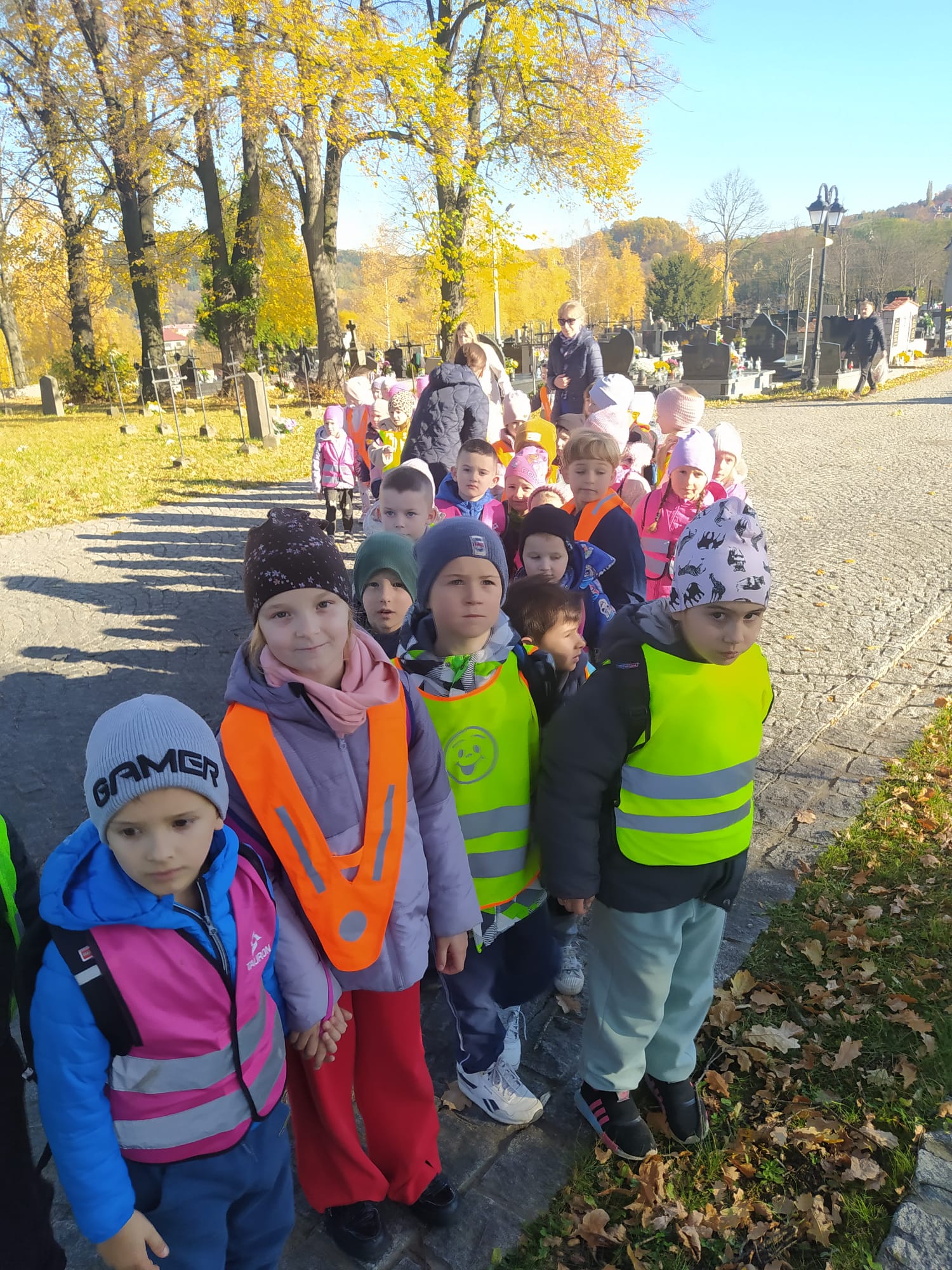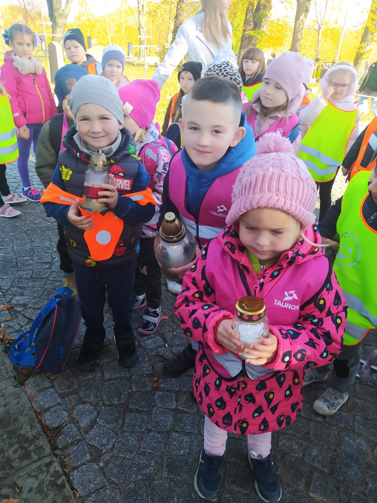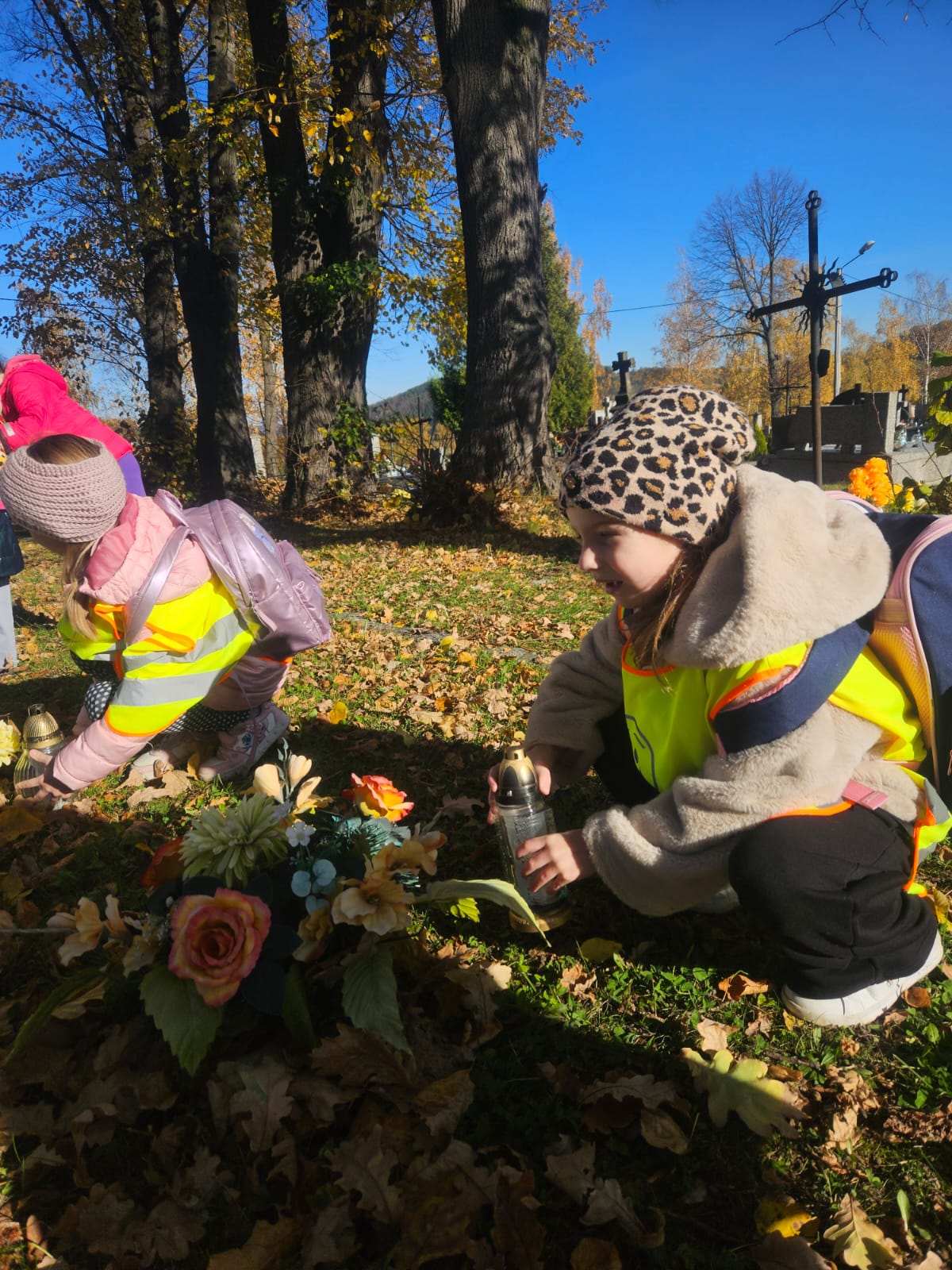 W piątek, 31 października, dzieci z grup „Motylki” i „Promyczki” udały się na pobliski cmentarz, aby uczcić pamięć zmarłych żołnierzy, którzy polegli podczas I i II wojny światowej. Podczas wizyty rozmawialiśmy z dziećmi o znaczeniu tego miejsca, o tym, dlaczego co roku wspominamy tych, którzy oddali życie za naszą Ojczyznę i jak wiele im zawdzięczamy.