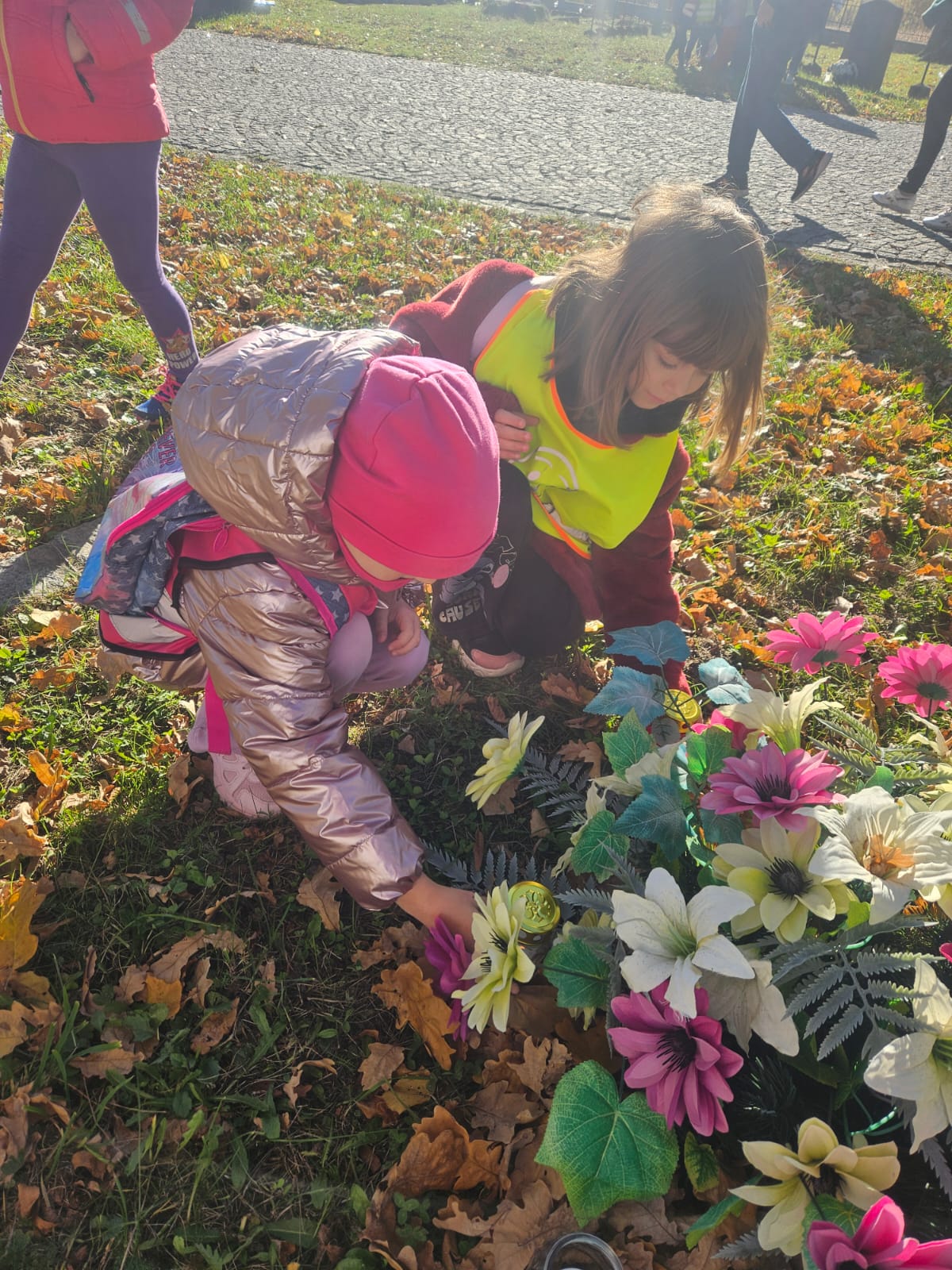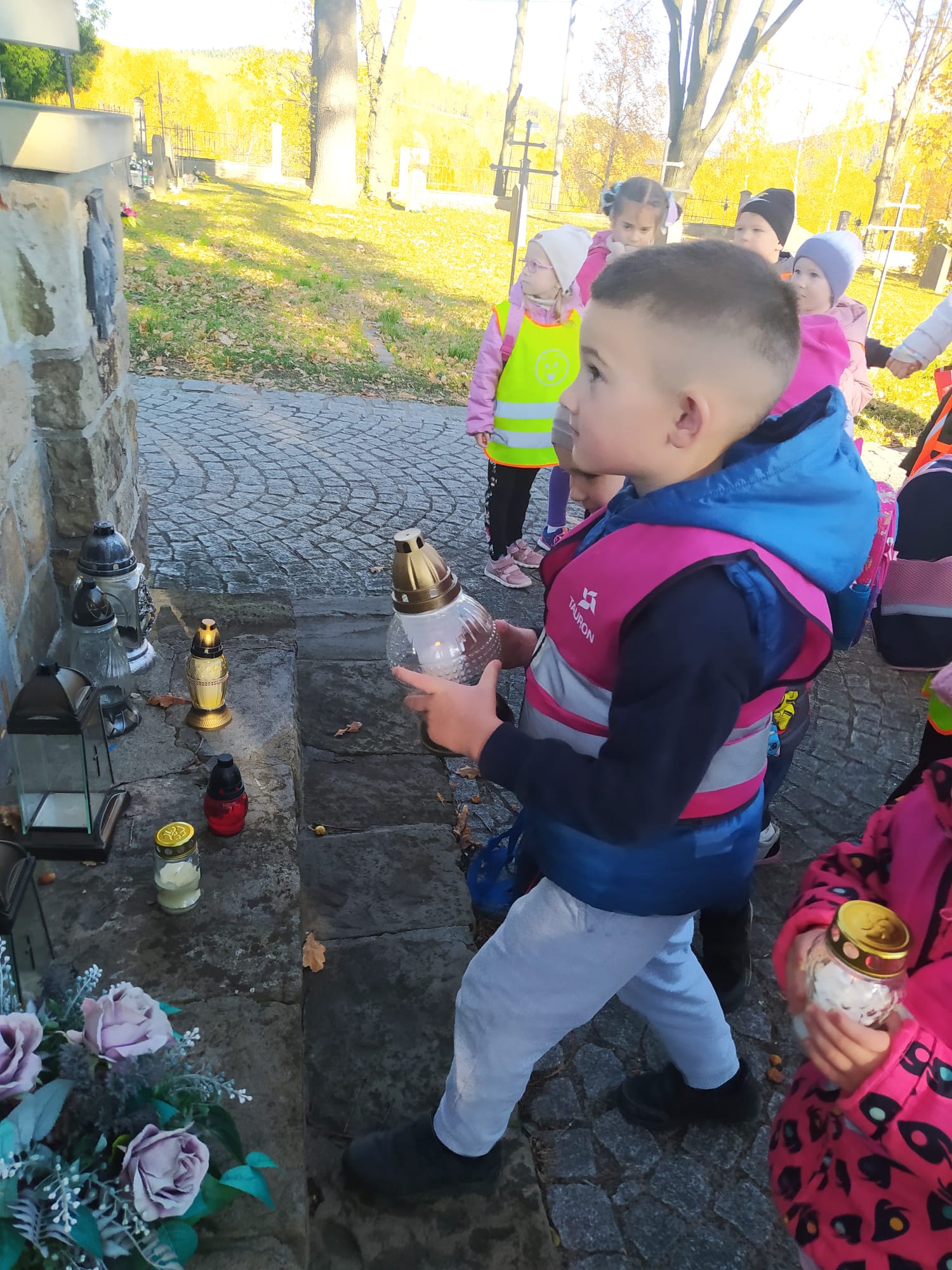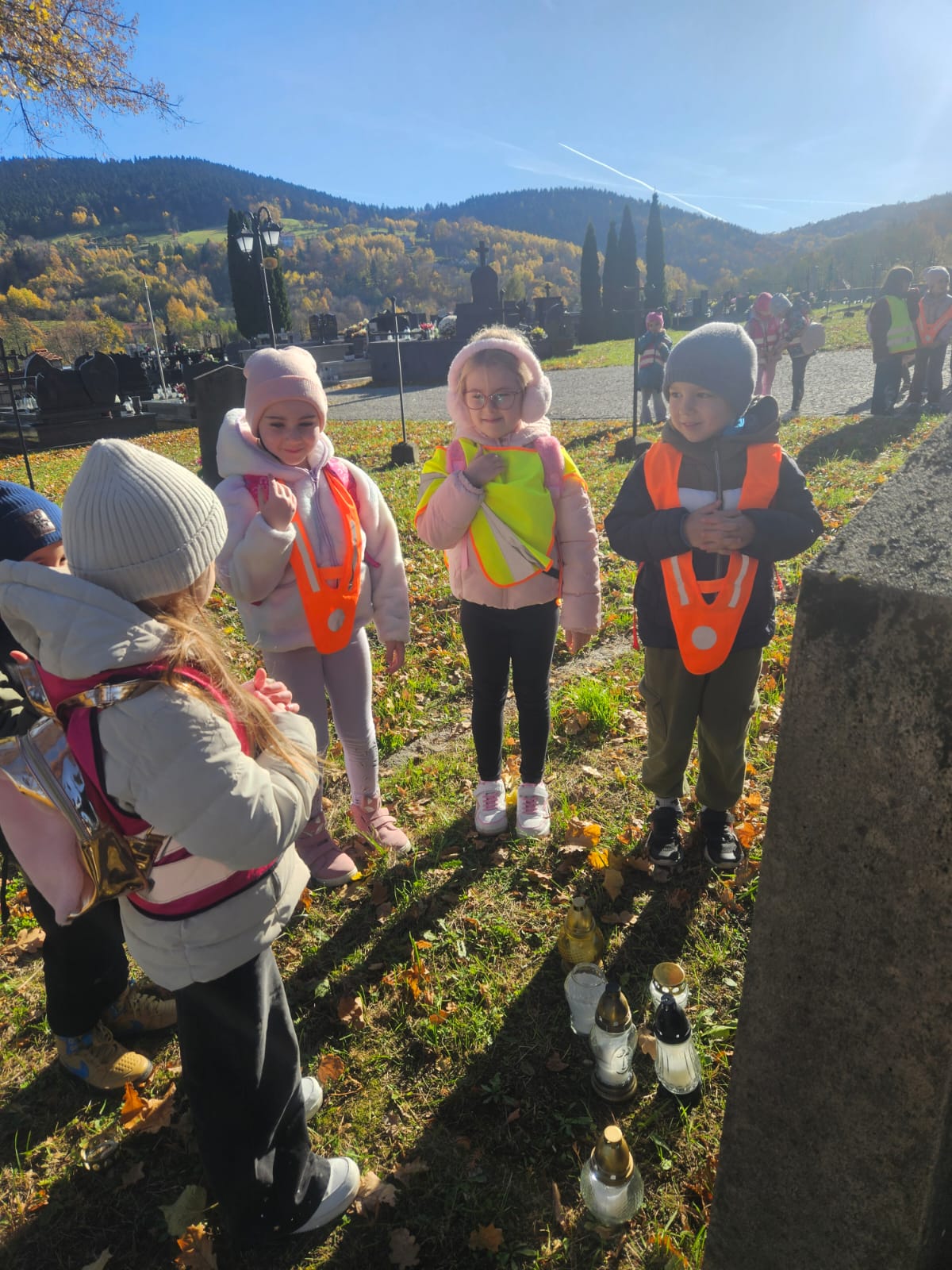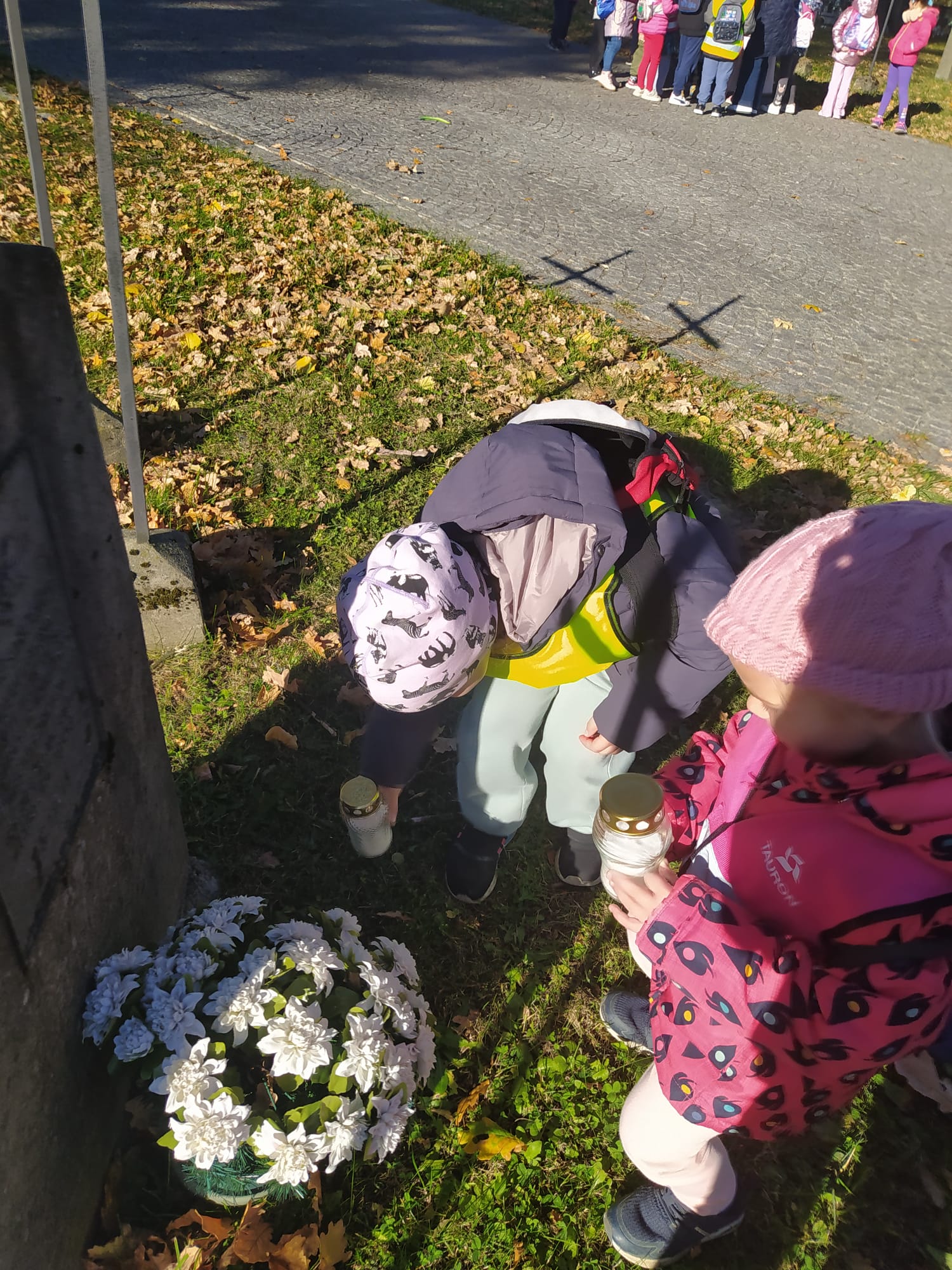 W piątek, 31 października, dzieci z grup „Motylki” i „Promyczki” udały się na pobliski cmentarz, aby uczcić pamięć zmarłych żołnierzy, którzy polegli podczas I i II wojny światowej. Podczas wizyty rozmawialiśmy z dziećmi o znaczeniu tego miejsca, o tym, dlaczego co roku wspominamy tych, którzy oddali życie za naszą Ojczyznę i jak wiele im zawdzięczamy.