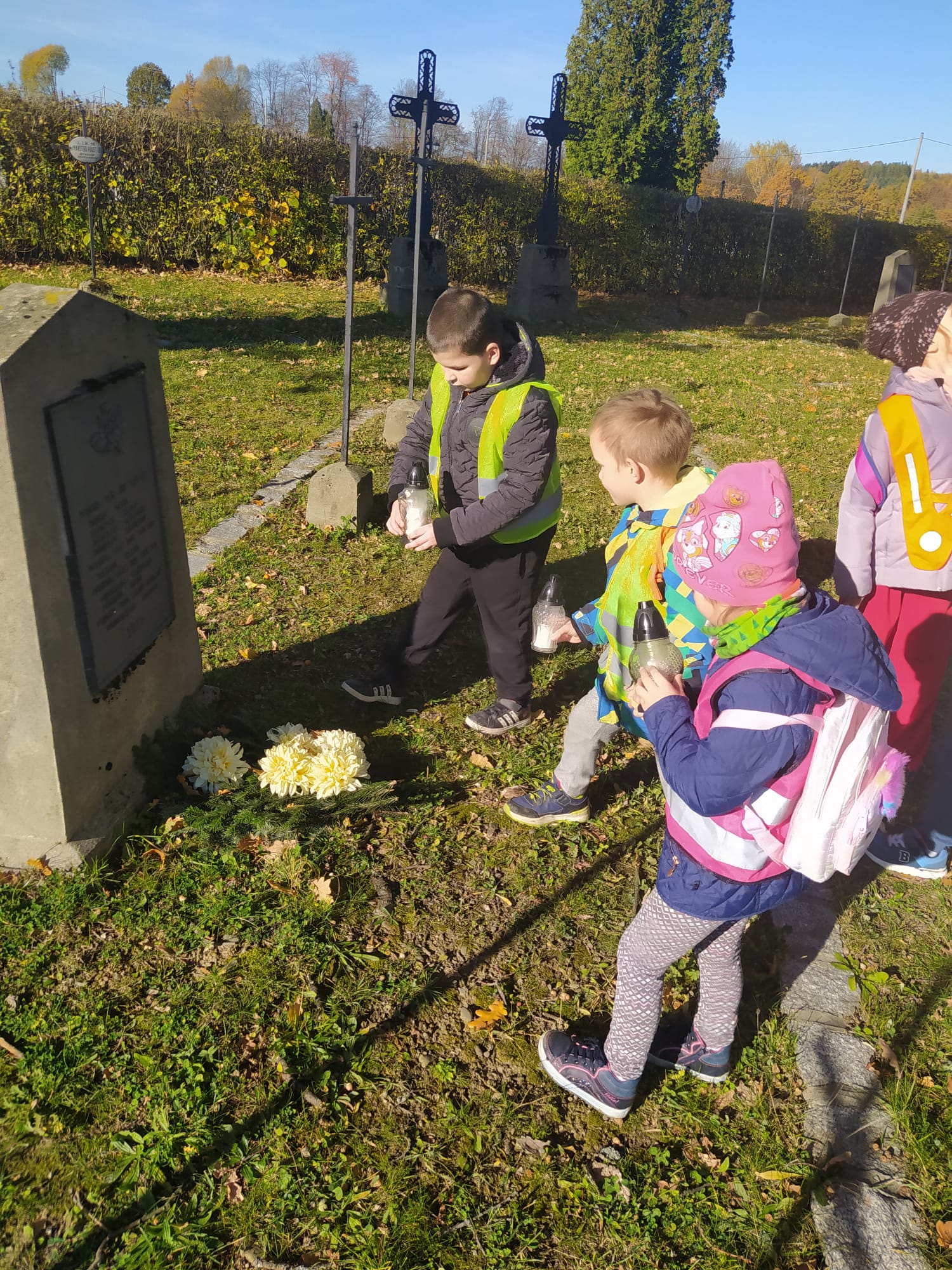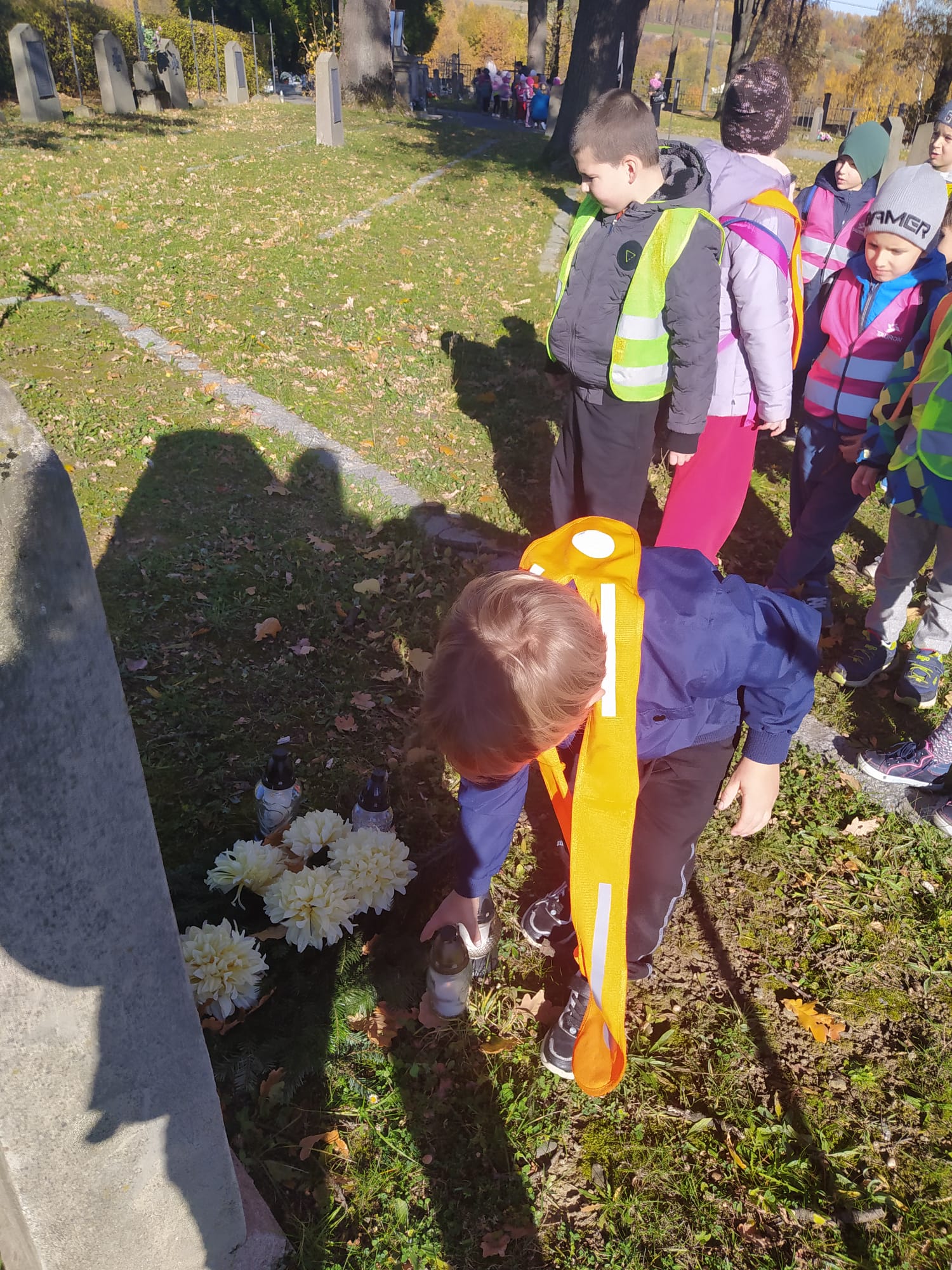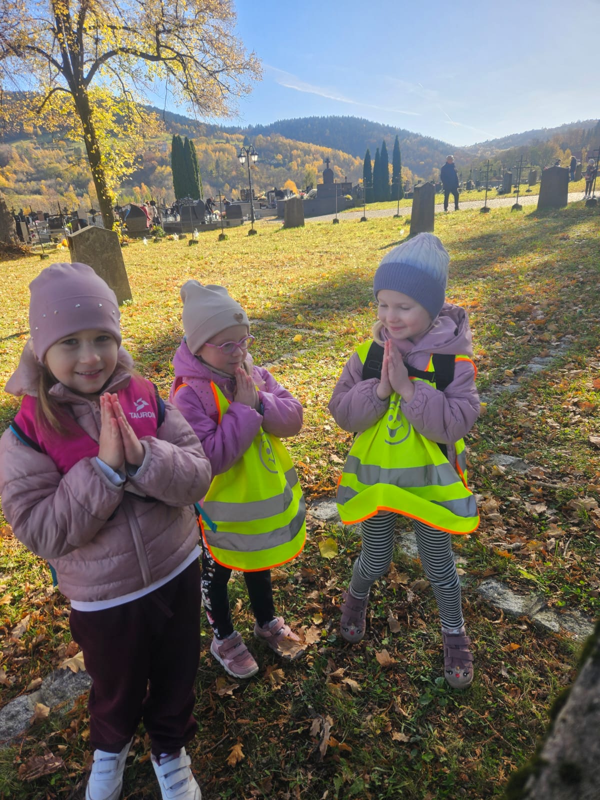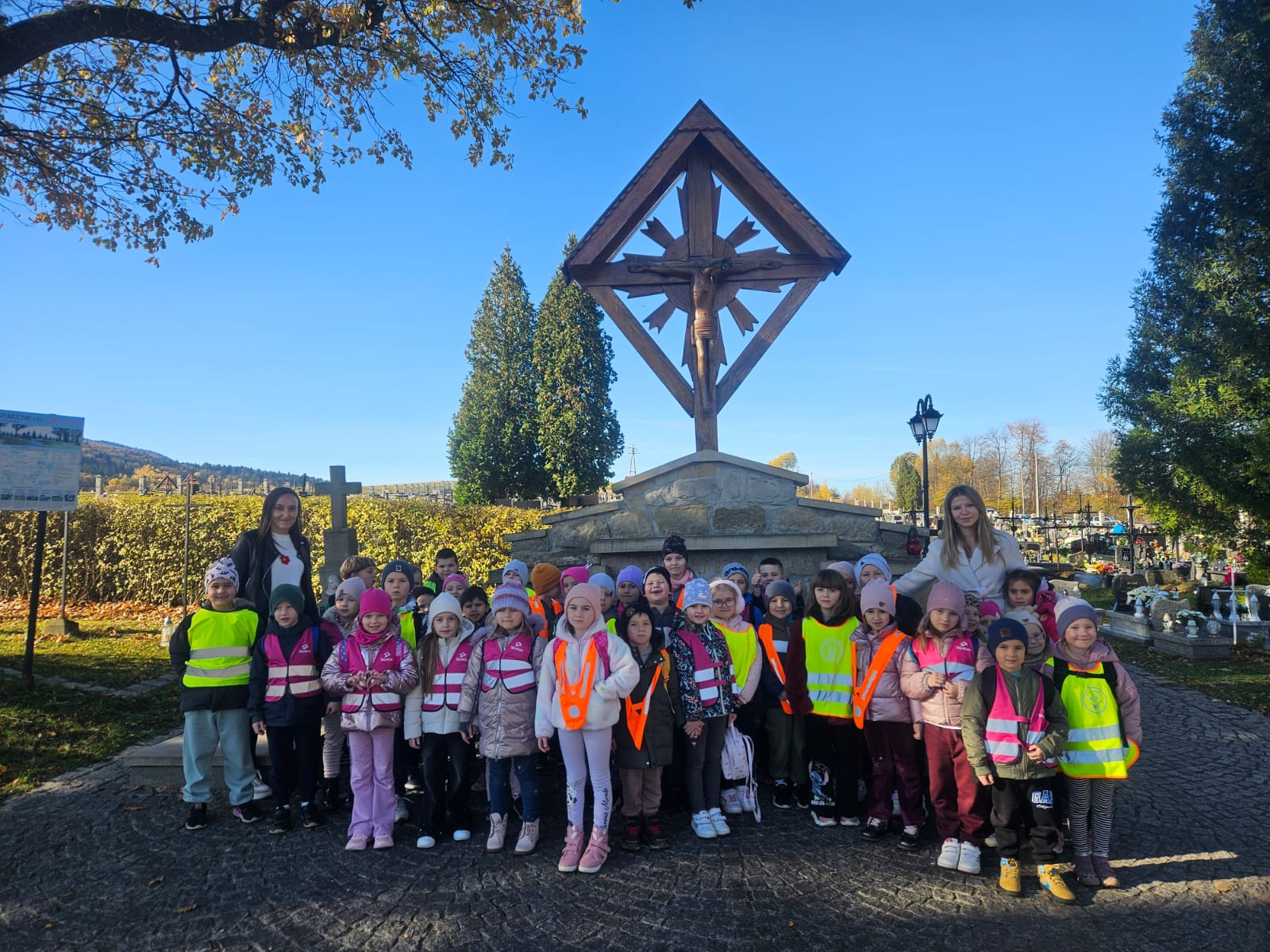 W piątek, 31 października, dzieci z grup „Motylki” i „Promyczki” udały się na pobliski cmentarz, aby uczcić pamięć zmarłych żołnierzy, którzy polegli podczas I i II wojny światowej. Podczas wizyty rozmawialiśmy z dziećmi o znaczeniu tego miejsca, o tym, dlaczego co roku wspominamy tych, którzy oddali życie za naszą Ojczyznę i jak wiele im zawdzięczamy.