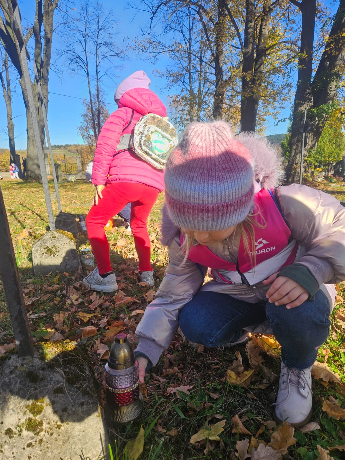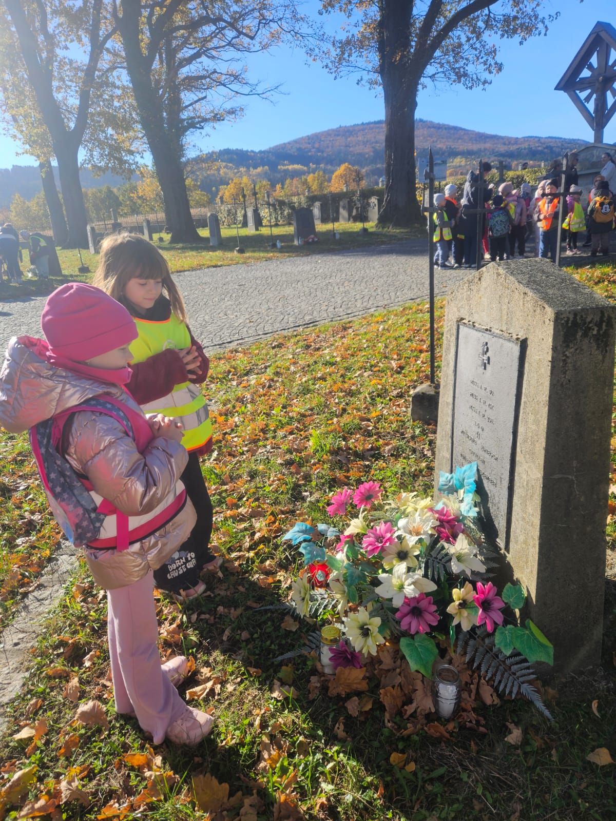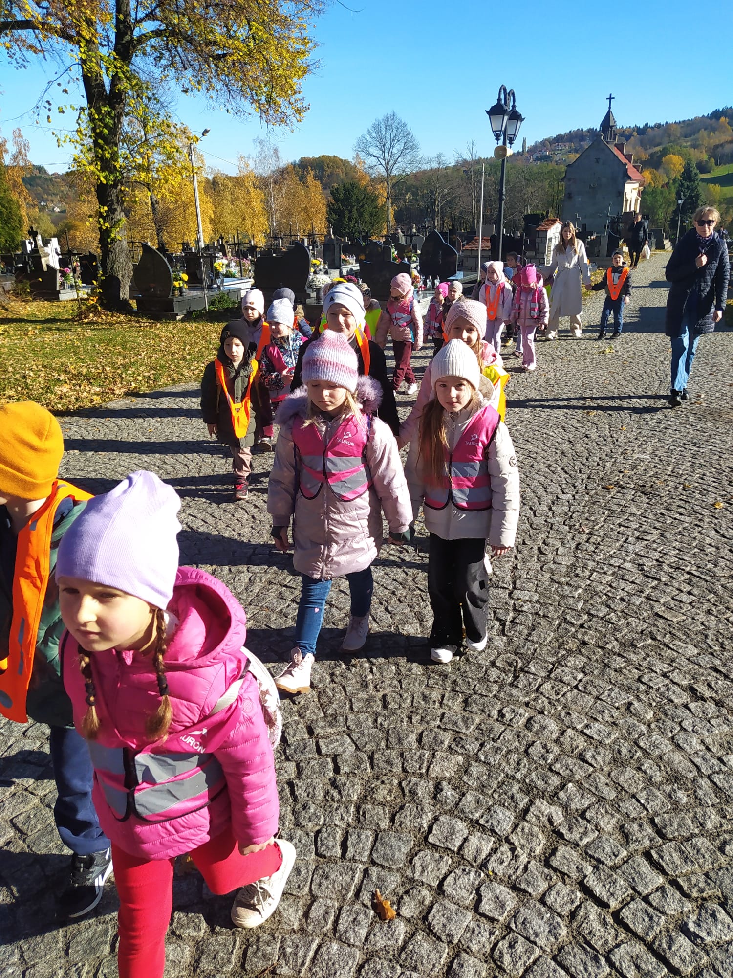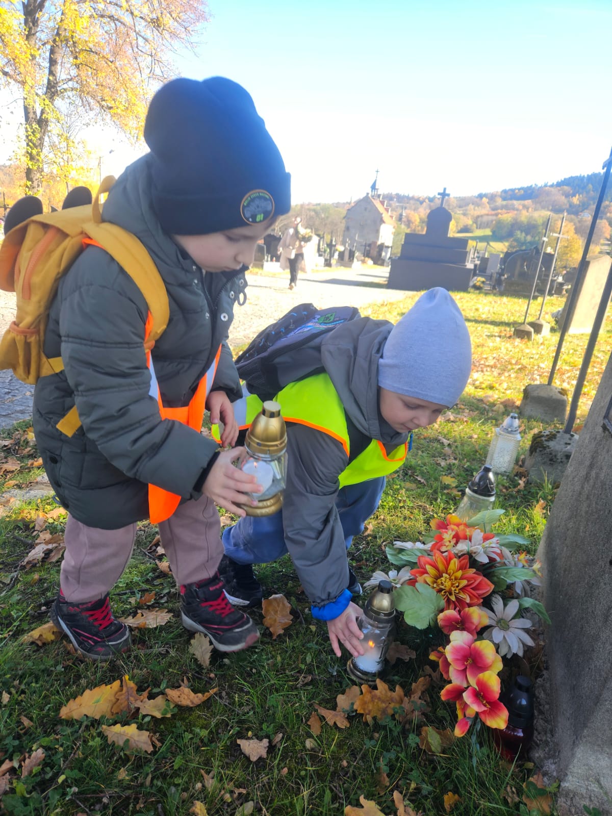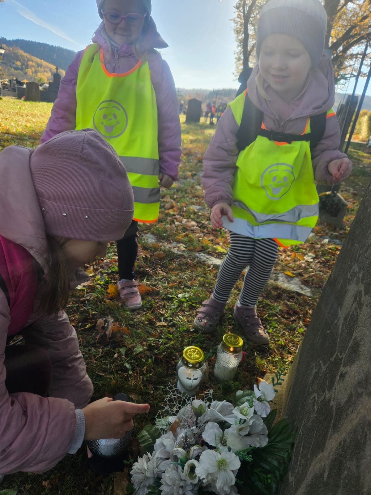 W piątek, 31 października, dzieci z grup „Motylki” i „Promyczki” udały się na pobliski cmentarz, aby uczcić pamięć zmarłych żołnierzy, którzy polegli podczas I i II wojny światowej. Podczas wizyty rozmawialiśmy z dziećmi o znaczeniu tego miejsca, o tym, dlaczego co roku wspominamy tych, którzy oddali życie za naszą Ojczyznę i jak wiele im zawdzięczamy.