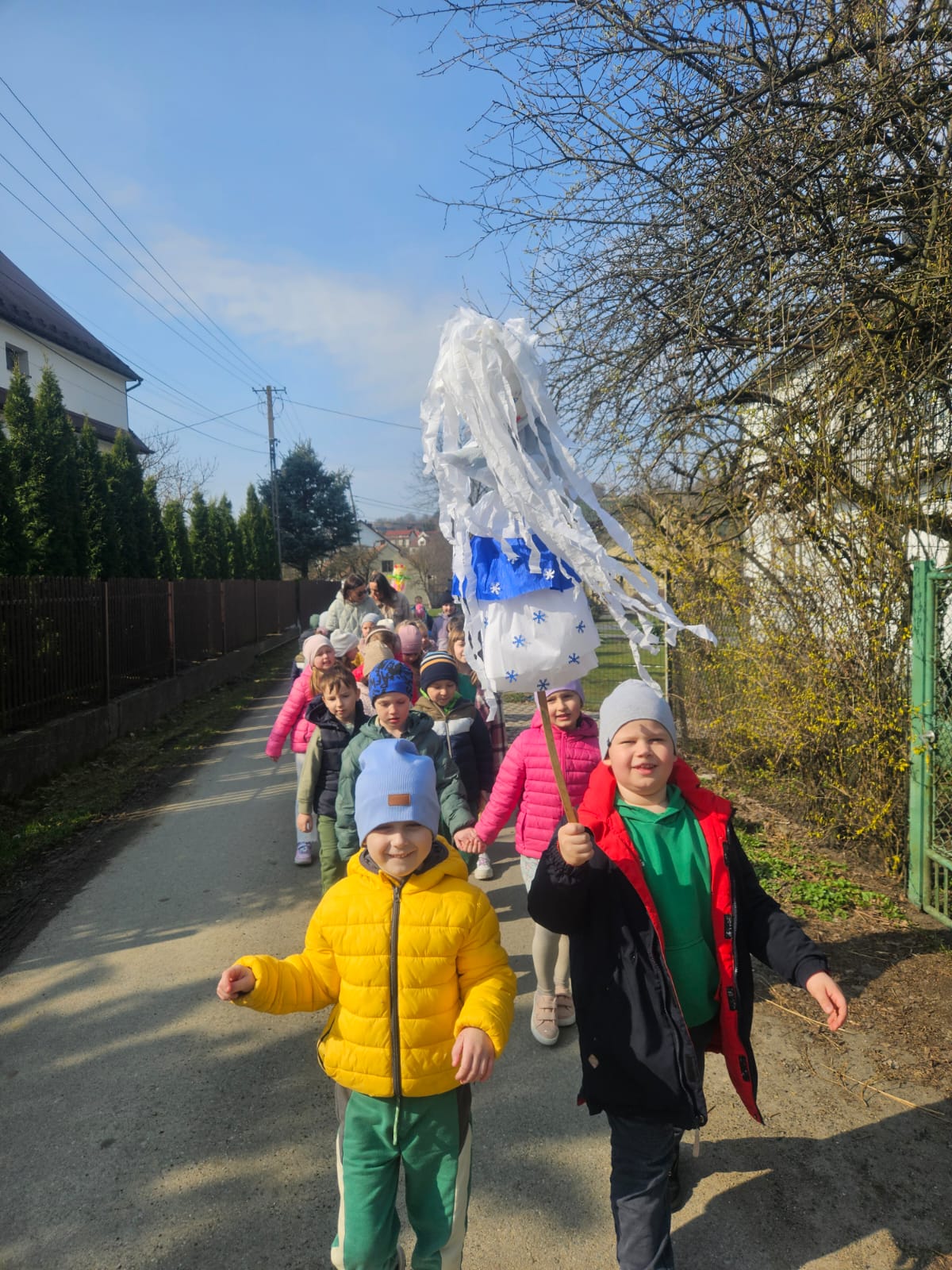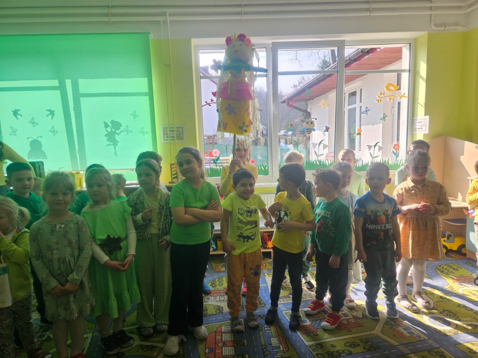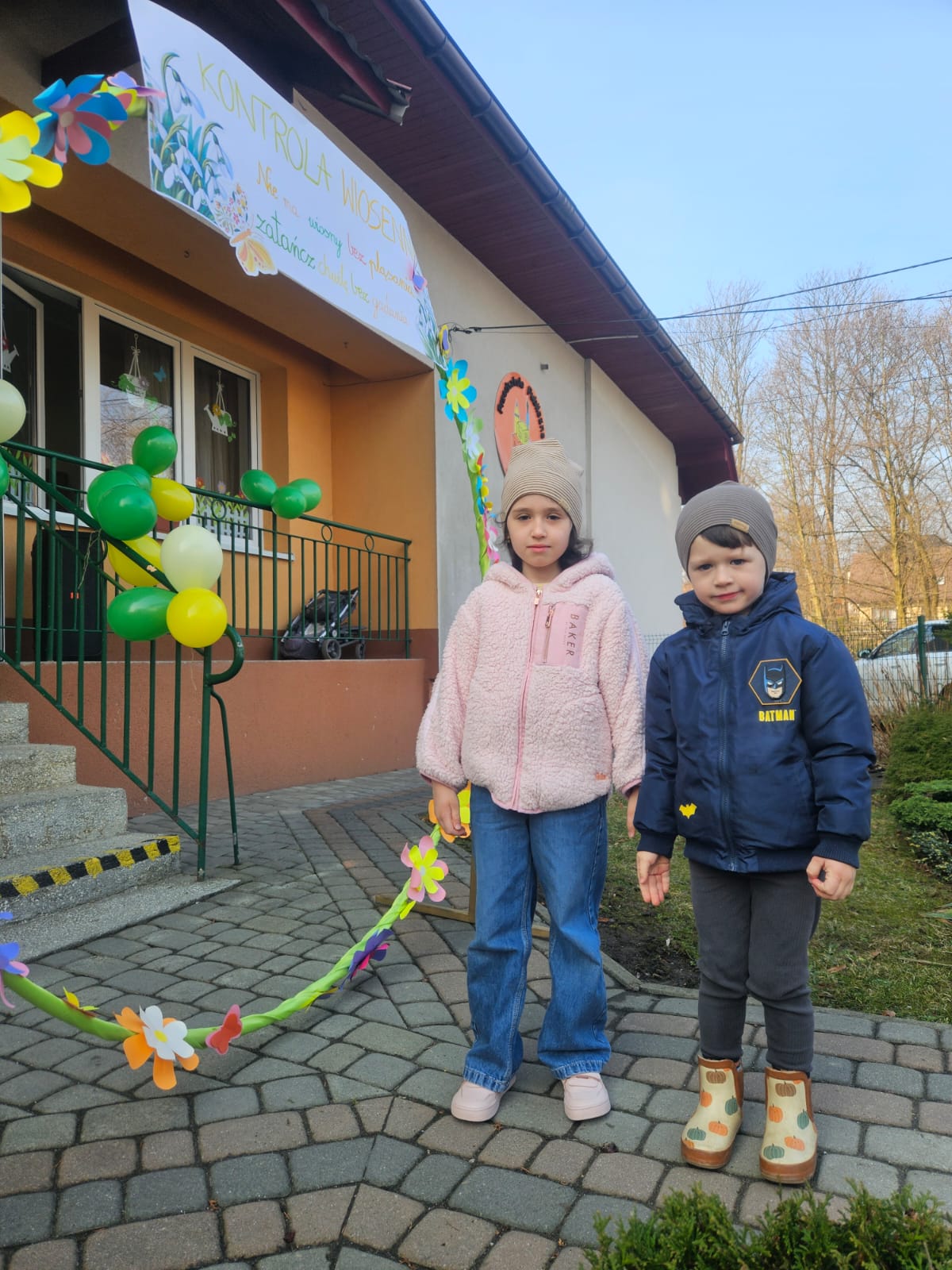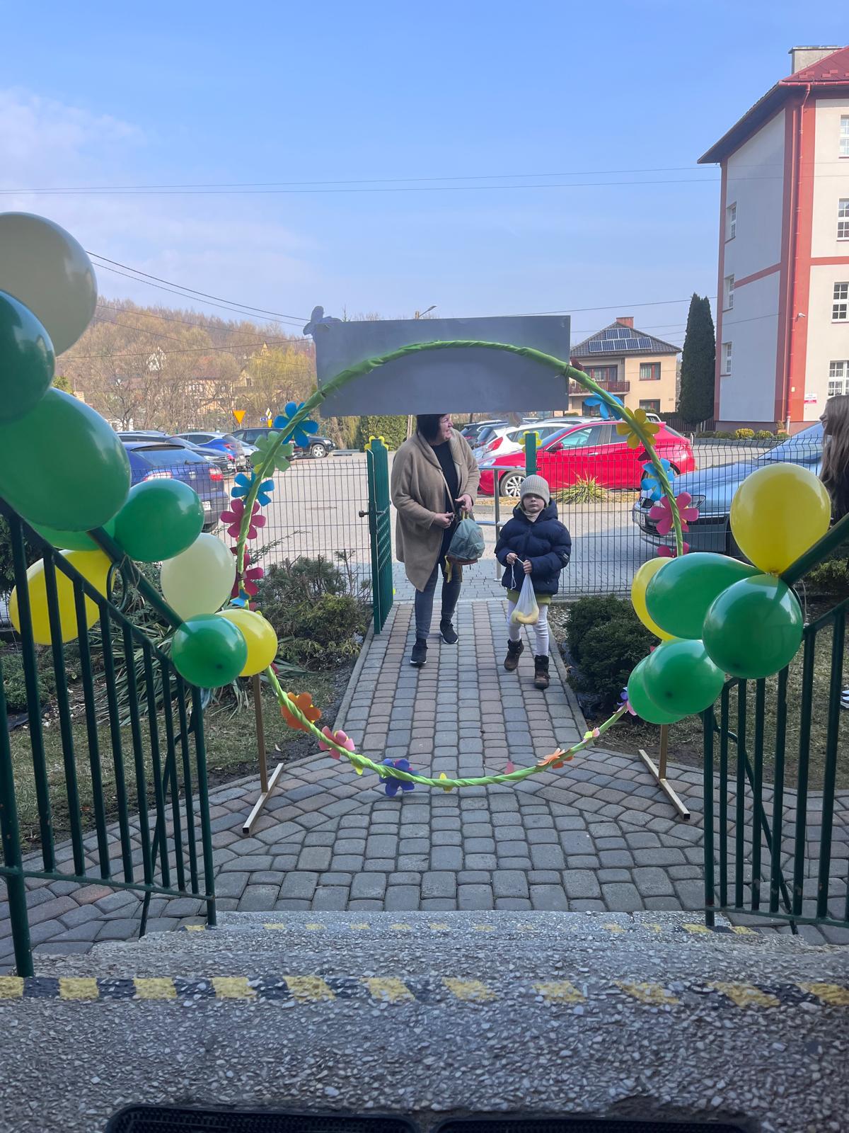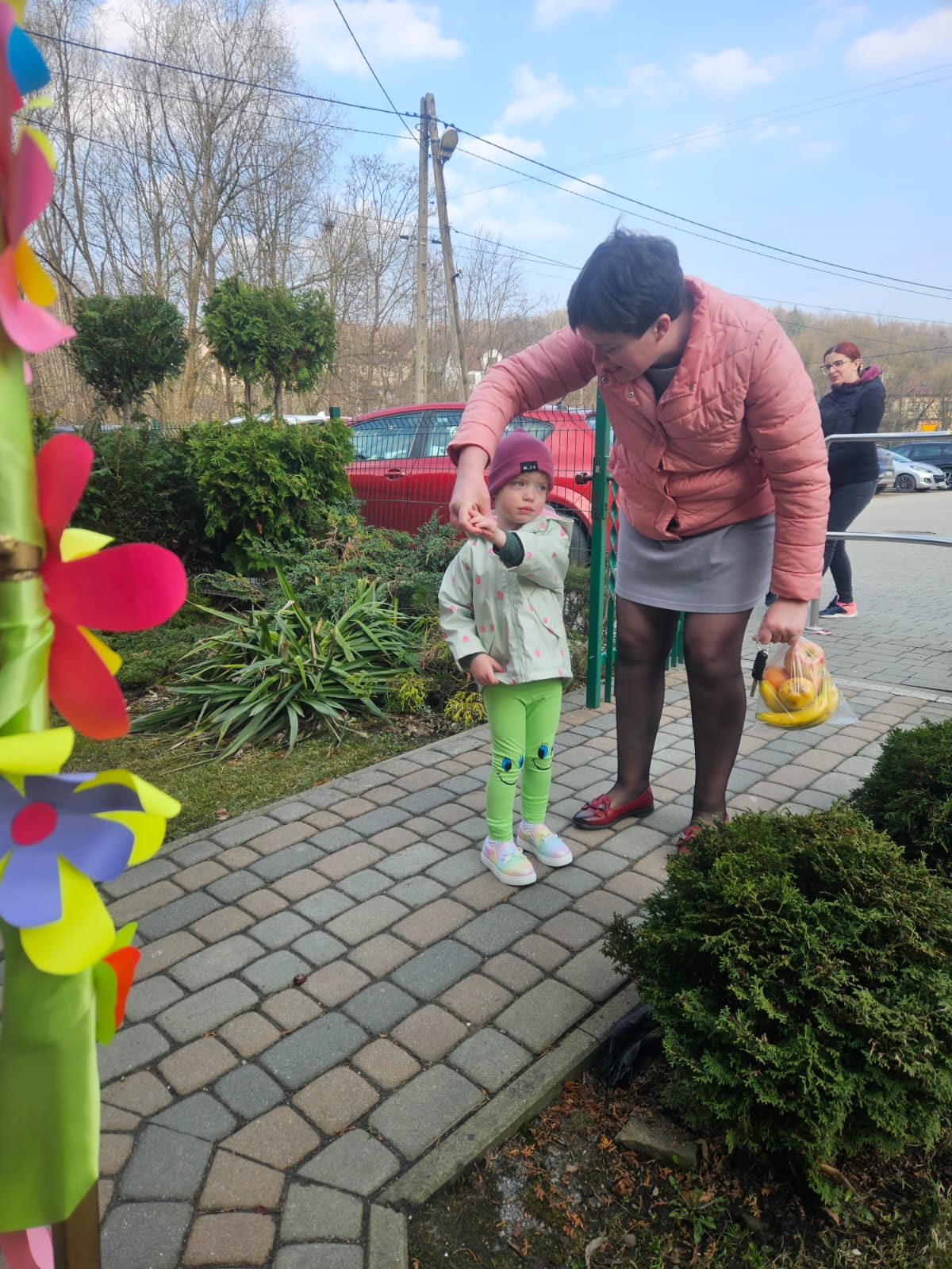 Dziś radośnie powitaliśmy długo wyczekiwaną wiosnę! Już od samego rana na dzieci czekało wyjątkowe zadanie. Przed wejściem do przedszkola, wspólnie z rodzicami, musiały wykonać polecenie: „Kontrola wiosenna – nie ma wiosny bez pląsania, zatańcz chwilę bez gadania!”. Wszyscy spisali się znakomicie i z uśmiechem rozpoczęli dzień. Następnie każda grupa zaprezentowała się, śpiewając wiosenną piosenkę oraz recytując wierszyk o wiośnie. Było kolorowo, radośnie i bardzo muzycznie! Kolejną atrakcją było wspólne przygotowanie pysznego, wiosennego soczku, który wszystkim bardzo smakował. Po nim wybraliśmy się na spacer z Marzanną oraz Panią Zimą, którą symbolicznie pożegnaliśmy, robiąc miejsce dla nowej pory roku. Nawet nasze posiłki – śniadanie, obiad i podwieczorek – miały dziś wiosenne kolory: zielony i żółty, tak jak ubrania, w które wszyscy byliśmy ubrani. Na zakończenie dnia każde dziecko otrzymało od Pani Wiosny słodki upominek – czekoladę z wiosennym wierszykiem i kwiatuszkiem. To był dzień pełen radości, zabawy i prawdziwie wiosennej atmosfery!
