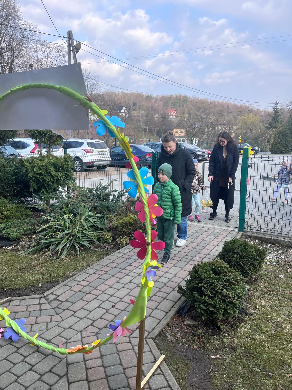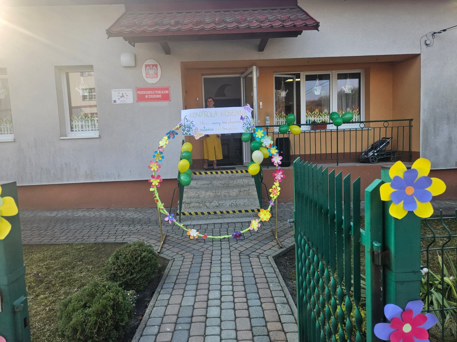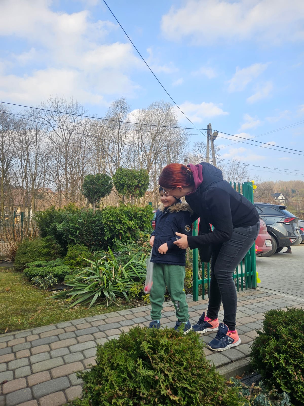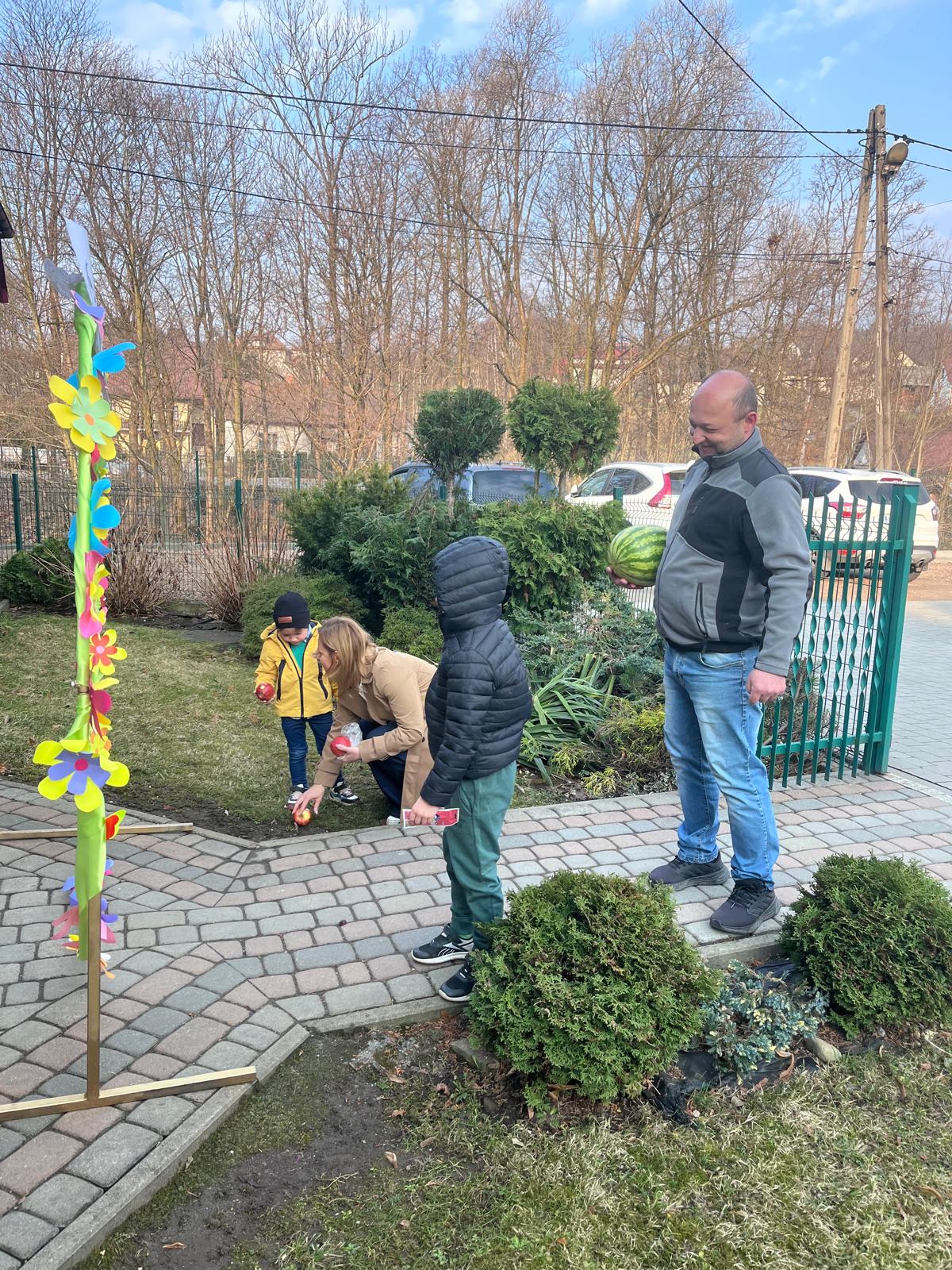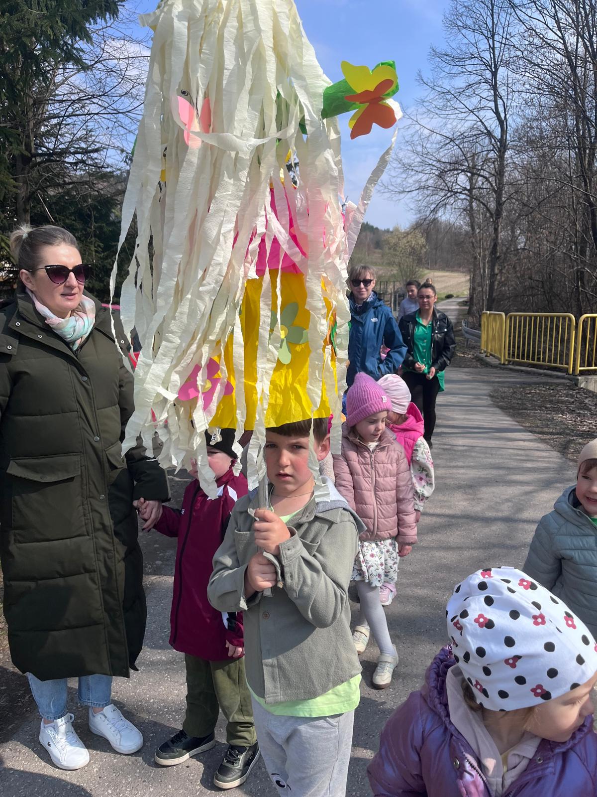 Dziś radośnie powitaliśmy długo wyczekiwaną wiosnę! Już od samego rana na dzieci czekało wyjątkowe zadanie. Przed wejściem do przedszkola, wspólnie z rodzicami, musiały wykonać polecenie: „Kontrola wiosenna – nie ma wiosny bez pląsania, zatańcz chwilę bez gadania!”. Wszyscy spisali się znakomicie i z uśmiechem rozpoczęli dzień. Następnie każda grupa zaprezentowała się, śpiewając wiosenną piosenkę oraz recytując wierszyk o wiośnie. Było kolorowo, radośnie i bardzo muzycznie! Kolejną atrakcją było wspólne przygotowanie pysznego, wiosennego soczku, który wszystkim bardzo smakował. Po nim wybraliśmy się na spacer z Marzanną oraz Panią Zimą, którą symbolicznie pożegnaliśmy, robiąc miejsce dla nowej pory roku. Nawet nasze posiłki – śniadanie, obiad i podwieczorek – miały dziś wiosenne kolory: zielony i żółty, tak jak ubrania, w które wszyscy byliśmy ubrani. Na zakończenie dnia każde dziecko otrzymało od Pani Wiosny słodki upominek – czekoladę z wiosennym wierszykiem i kwiatuszkiem. To był dzień pełen radości, zabawy i prawdziwie wiosennej atmosfery!
