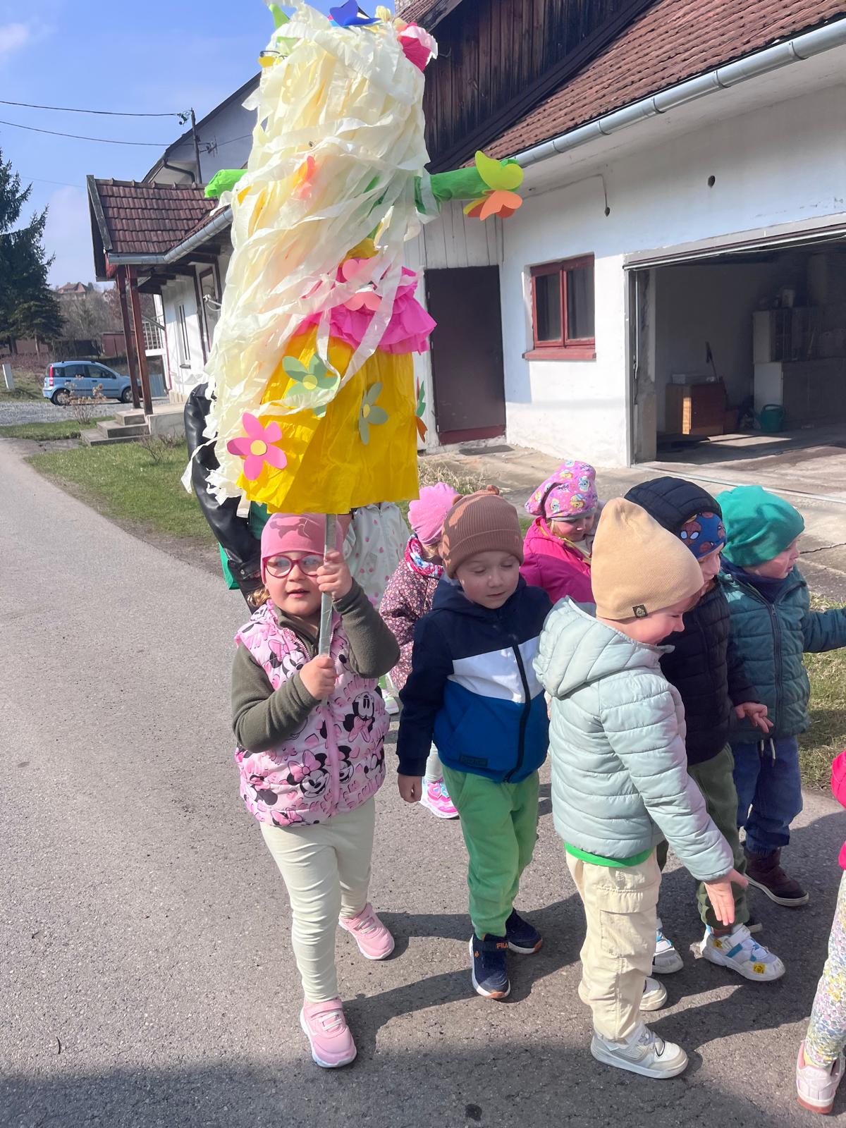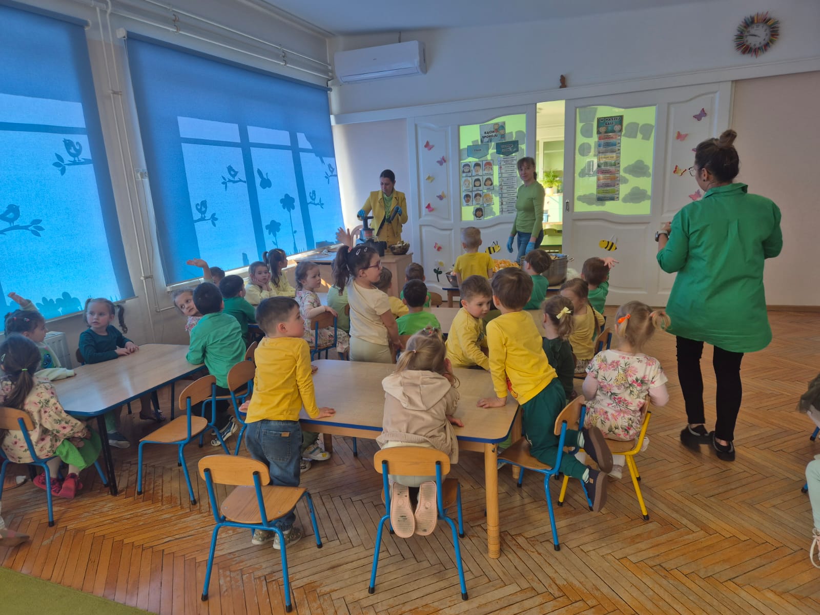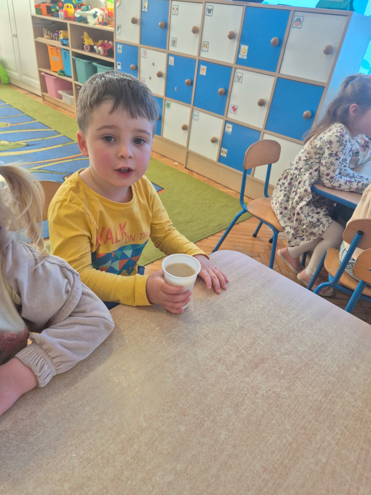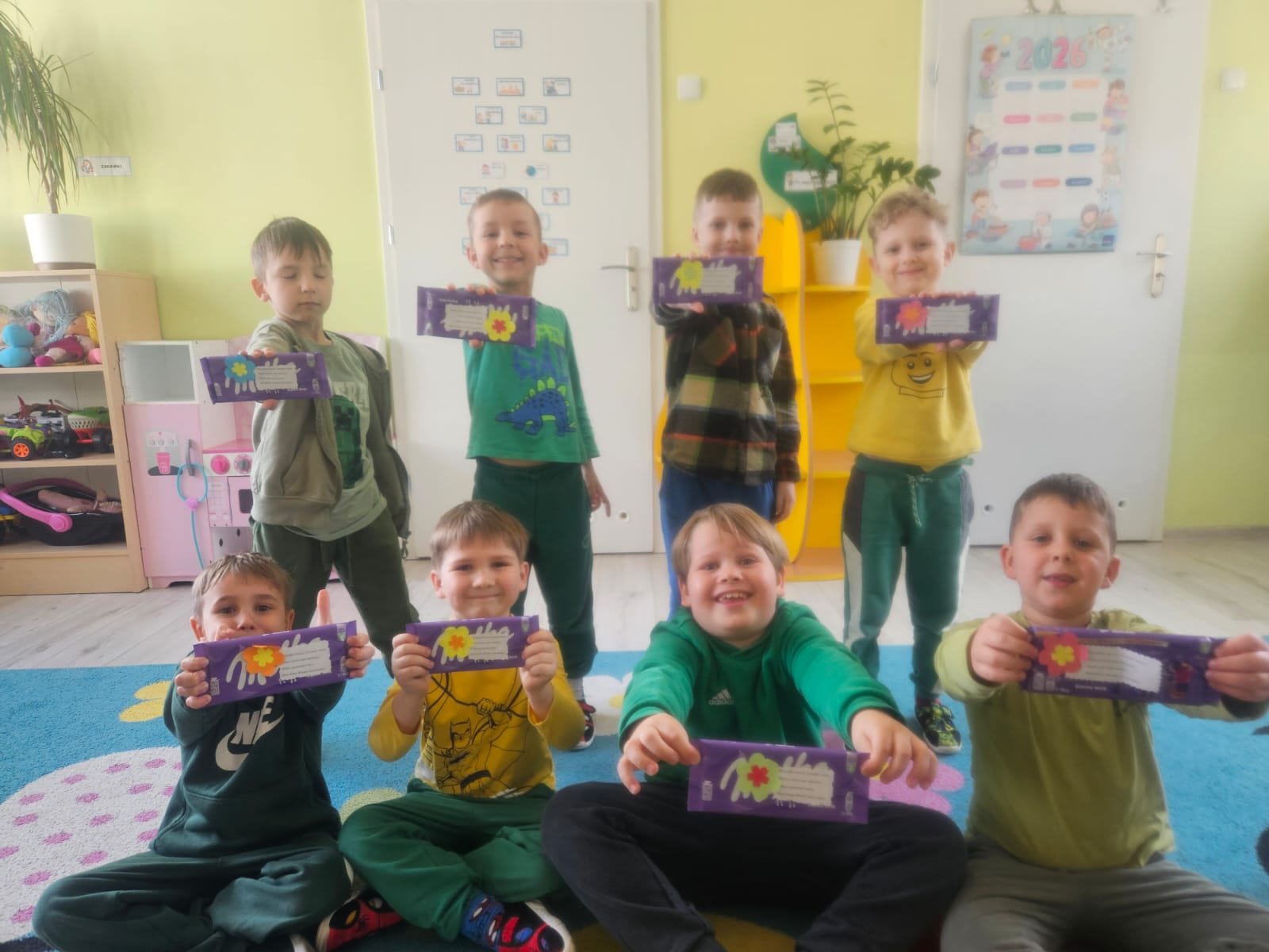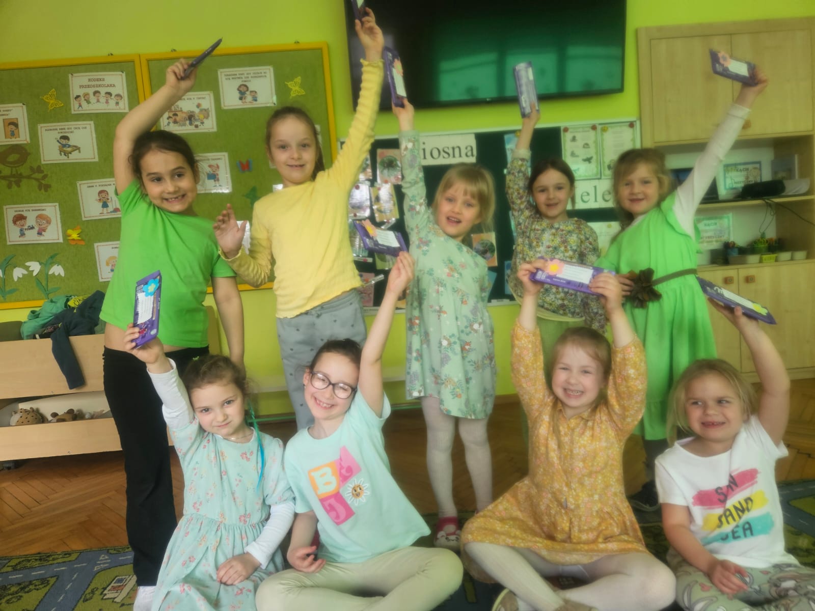 Dziś radośnie powitaliśmy długo wyczekiwaną wiosnę! Już od samego rana na dzieci czekało wyjątkowe zadanie. Przed wejściem do przedszkola, wspólnie z rodzicami, musiały wykonać polecenie: „Kontrola wiosenna – nie ma wiosny bez pląsania, zatańcz chwilę bez gadania!”. Wszyscy spisali się znakomicie i z uśmiechem rozpoczęli dzień. Następnie każda grupa zaprezentowała się, śpiewając wiosenną piosenkę oraz recytując wierszyk o wiośnie. Było kolorowo, radośnie i bardzo muzycznie! Kolejną atrakcją było wspólne przygotowanie pysznego, wiosennego soczku, który wszystkim bardzo smakował. Po nim wybraliśmy się na spacer z Marzanną oraz Panią Zimą, którą symbolicznie pożegnaliśmy, robiąc miejsce dla nowej pory roku. Nawet nasze posiłki – śniadanie, obiad i podwieczorek – miały dziś wiosenne kolory: zielony i żółty, tak jak ubrania, w które wszyscy byliśmy ubrani. Na zakończenie dnia każde dziecko otrzymało od Pani Wiosny słodki upominek – czekoladę z wiosennym wierszykiem i kwiatuszkiem. To był dzień pełen radości, zabawy i prawdziwie wiosennej atmosfery!