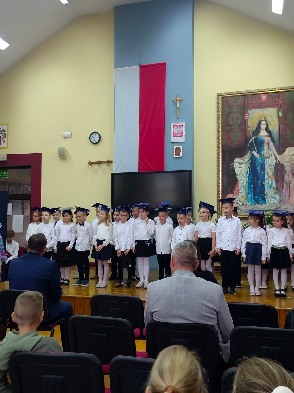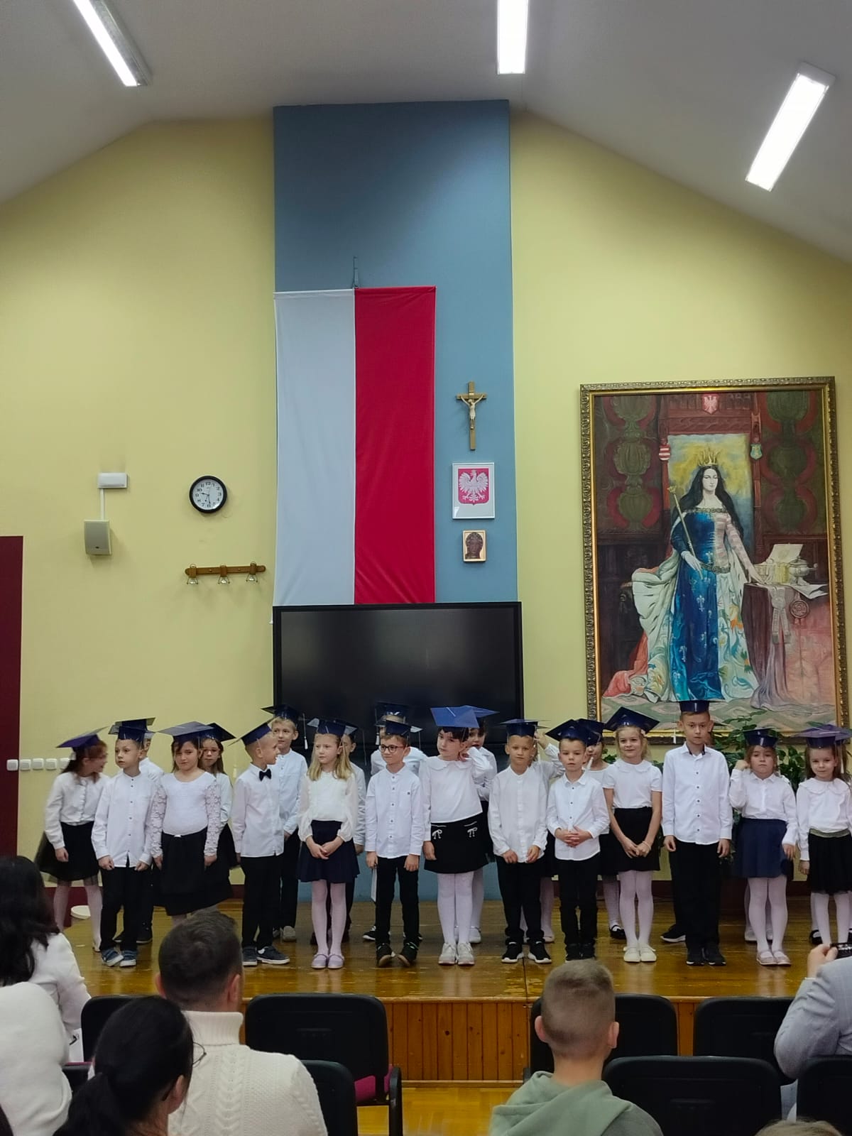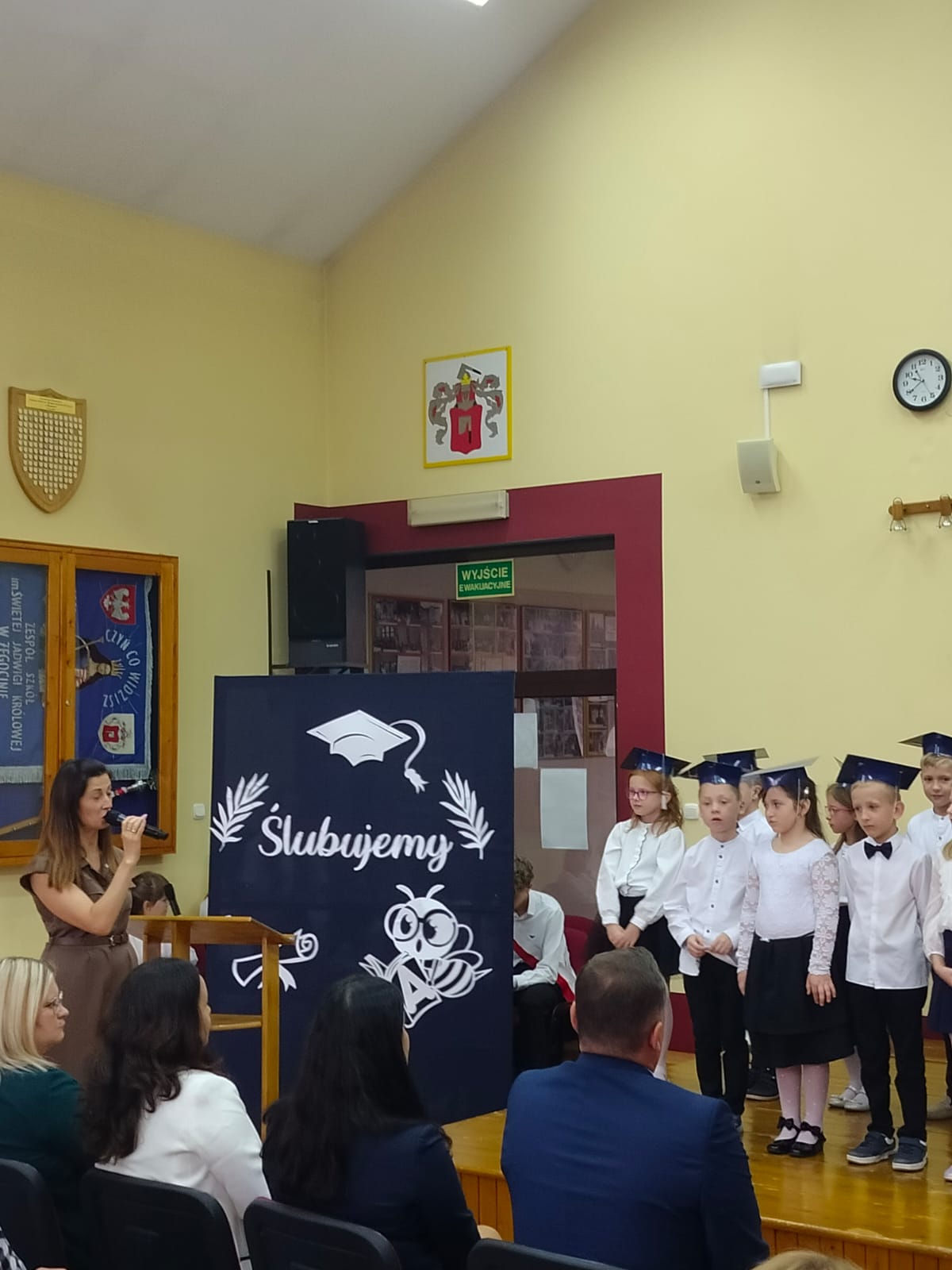 W dniu 08.10.2025 dzieci z grup Motylki i Promyczki odwiedziły Szkołę Podstawową w Żegocinie, aby uczestniczyć w uroczystości Ślubowania Pierwszoklasistów. Przedszkolaki z zainteresowaniem obserwowały występ uczniów klasy pierwszej, którzy zaprezentowali piękny program artystyczny i złożyli uroczyste ślubowanie na sztandar szkoły. Następnie odbyło się pasowanie na ucznia. Dzieci były bardzo podekscytowane wizytą – z ciekawością oglądały szkolne korytarze. Spotkanie przebiegło w miłej i przyjaznej atmosferze.