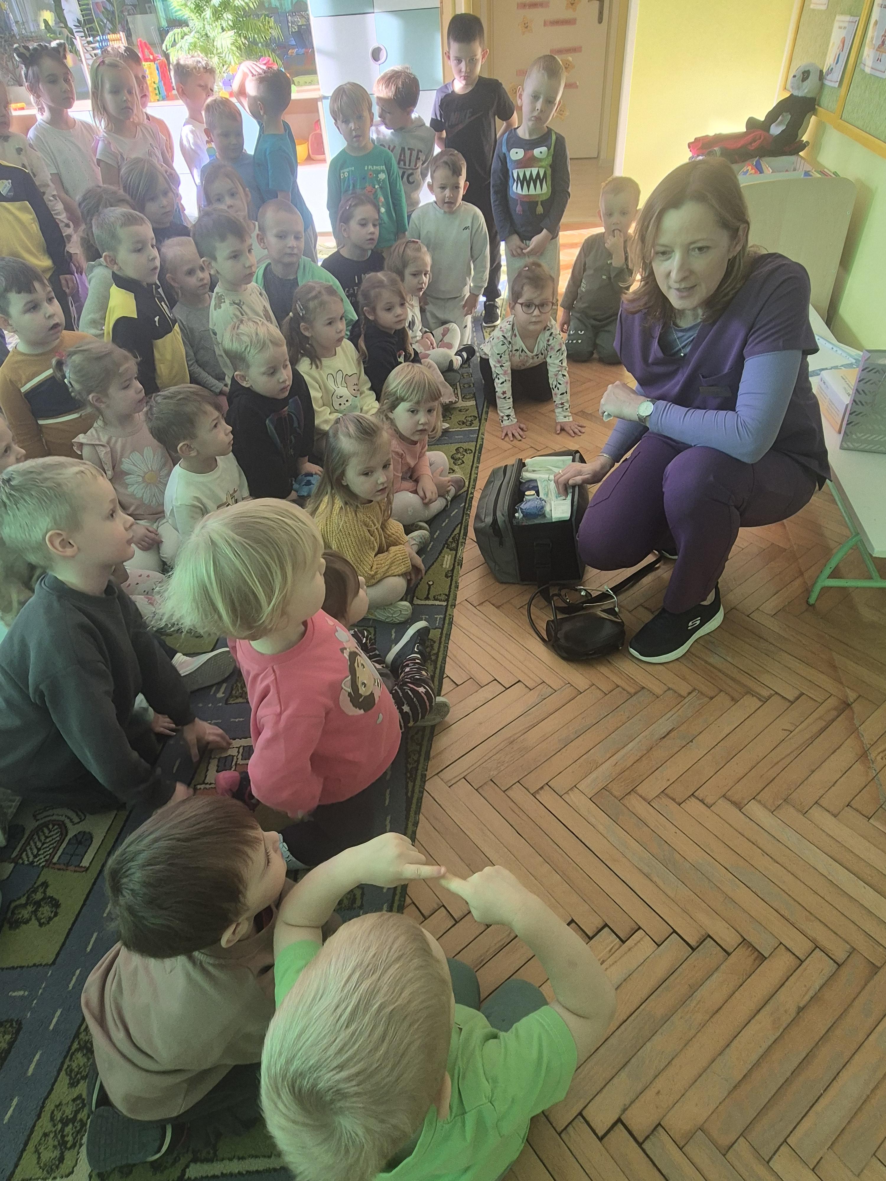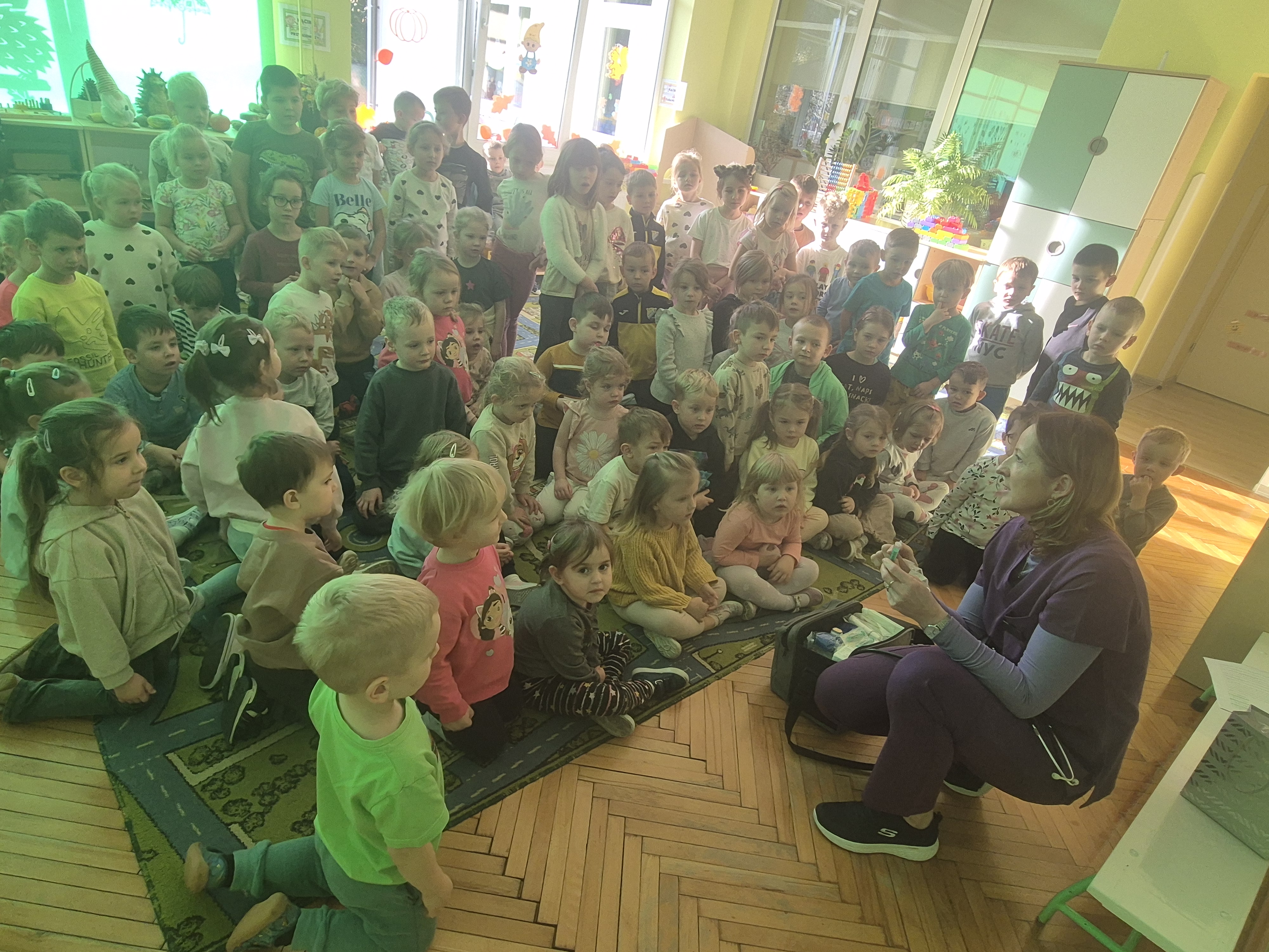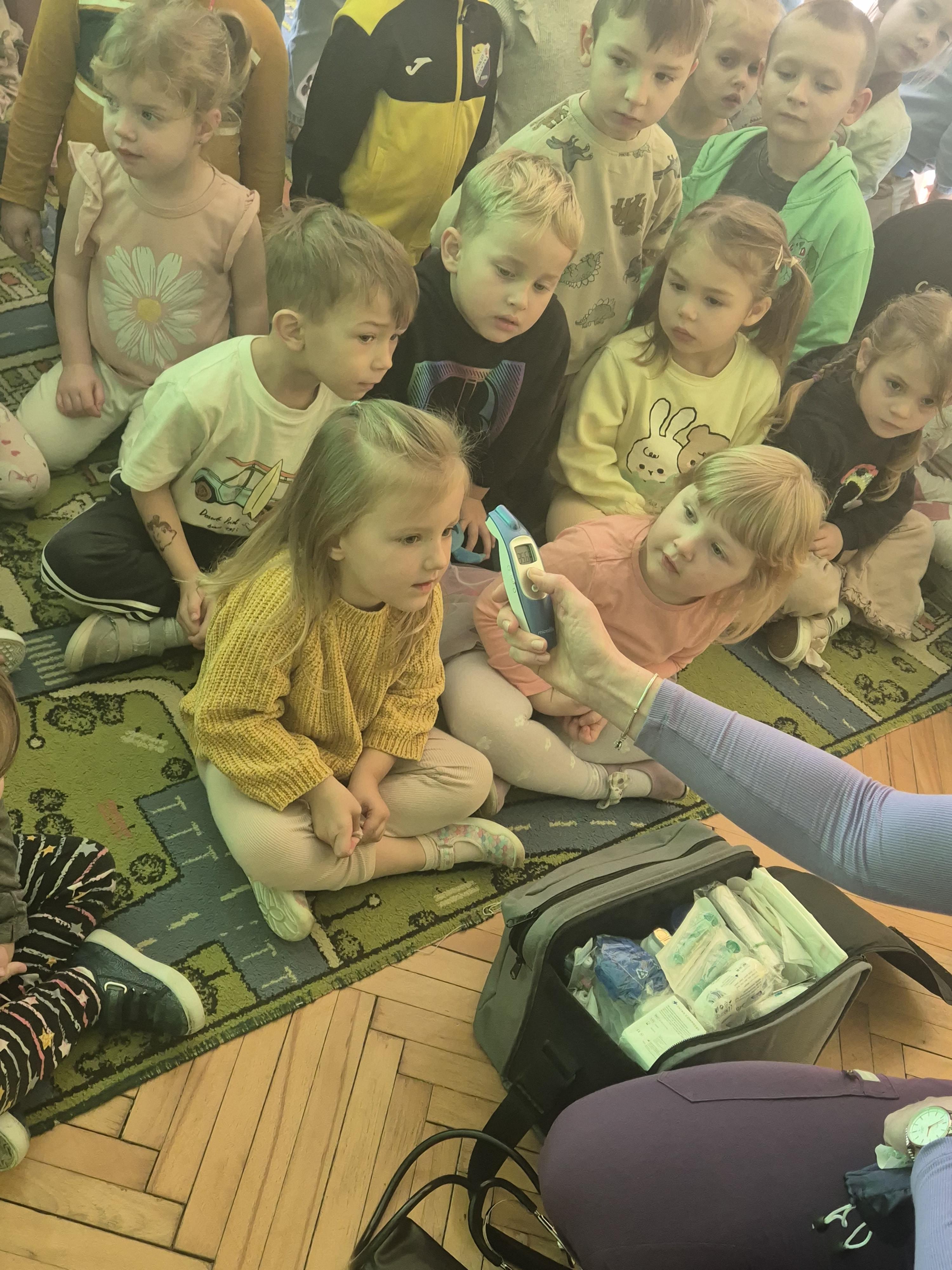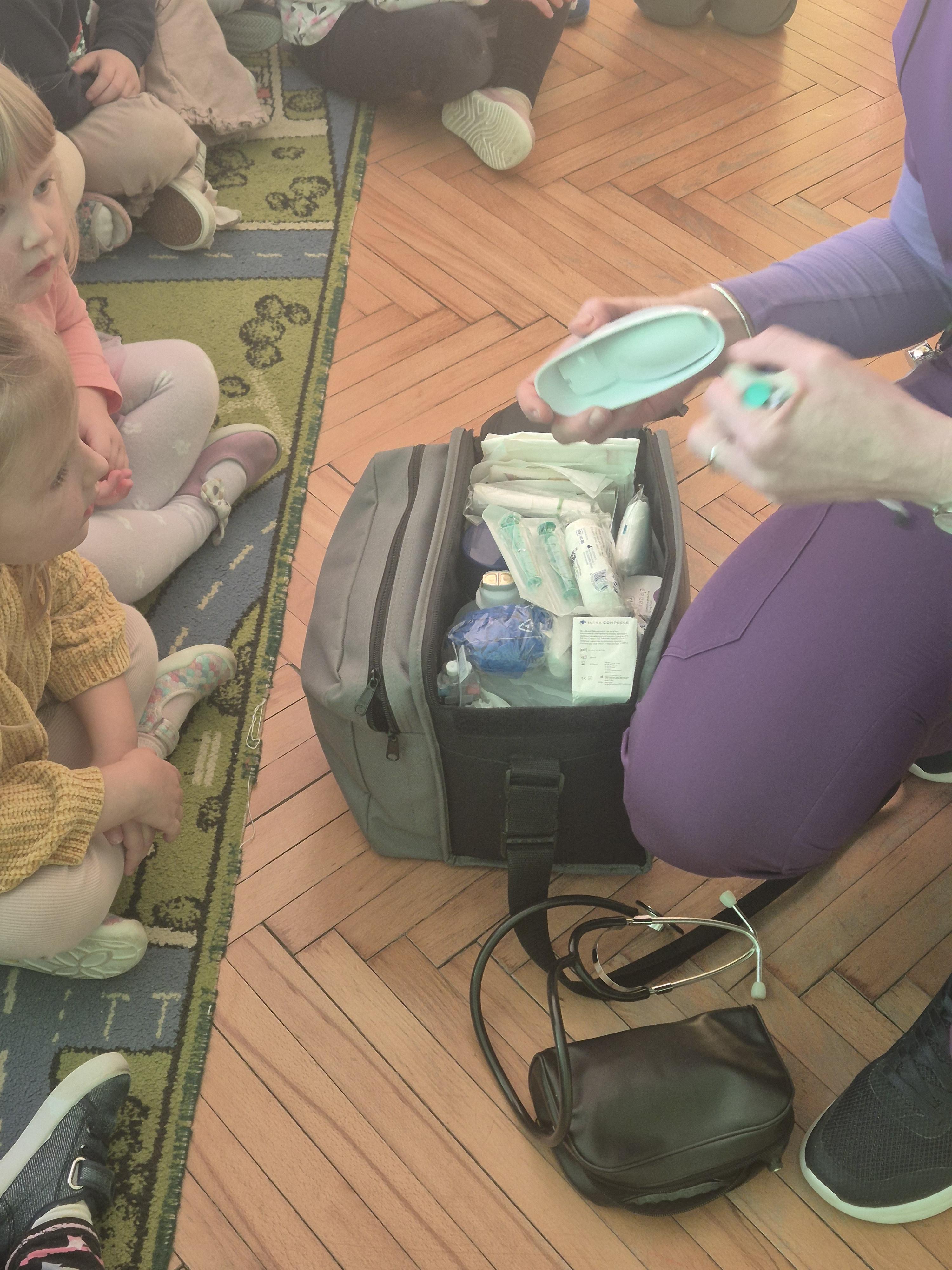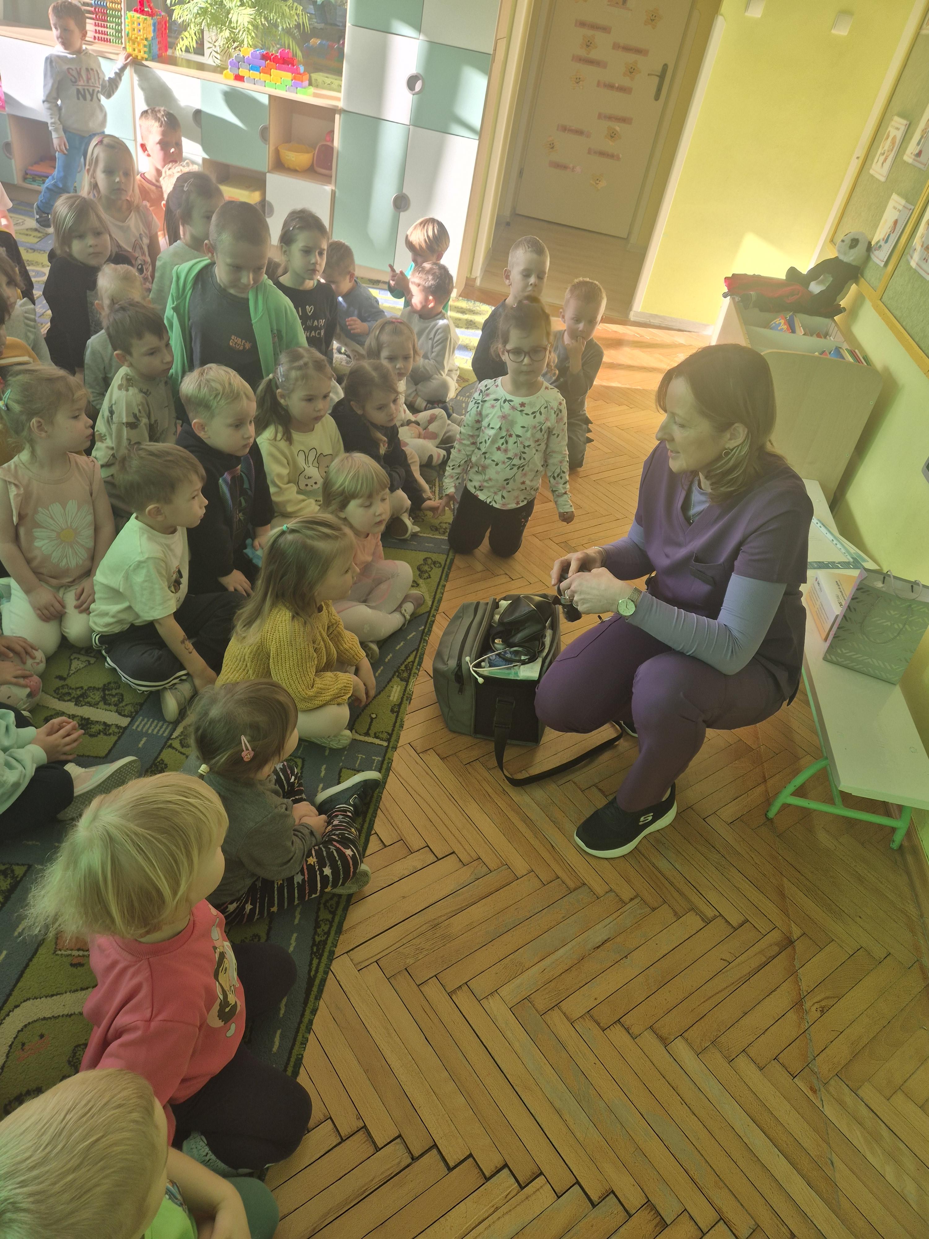Dzisiaj nasze przedszkole odwiedziła Pani Agata Bulanda - pielęgniarka z Gminnego Zakładu Opieki Zdrowotnej w Żegocinie. Przedszkolaki dzięki temu spotkaniu utrwaliły wszystkie wiadomości na temat zdrowia i sposobów dbania o nie. Przypomniane zostały zasady higieny oraz zdrowego stylu życia. Dzieci były bardzo zainteresowane tematem, szczególnie torbą z wyposażeniem, takim jak stetoskop, czy ciśnieniomierz. Zadawały Pani pielęgniarce wiele pytań.