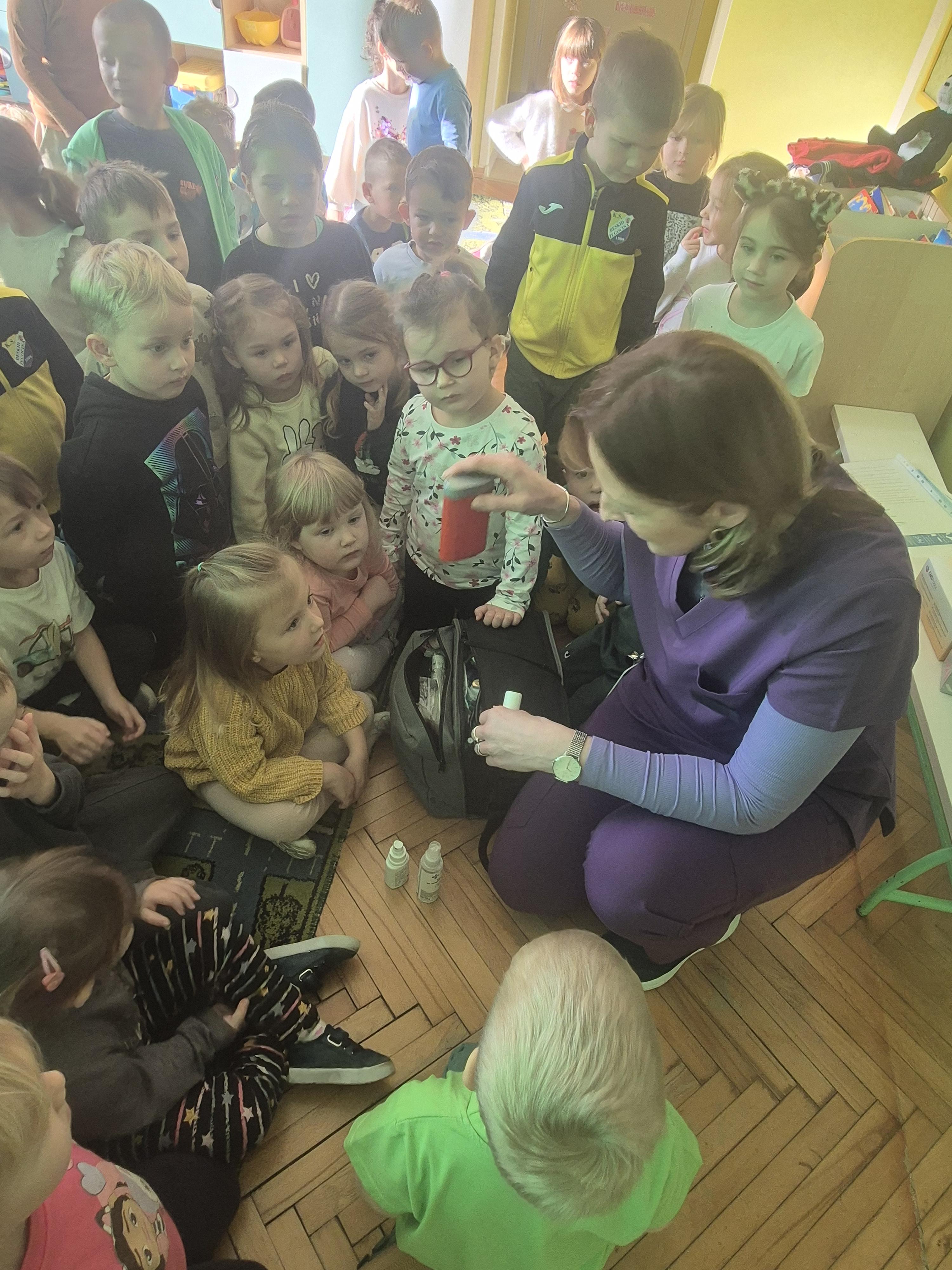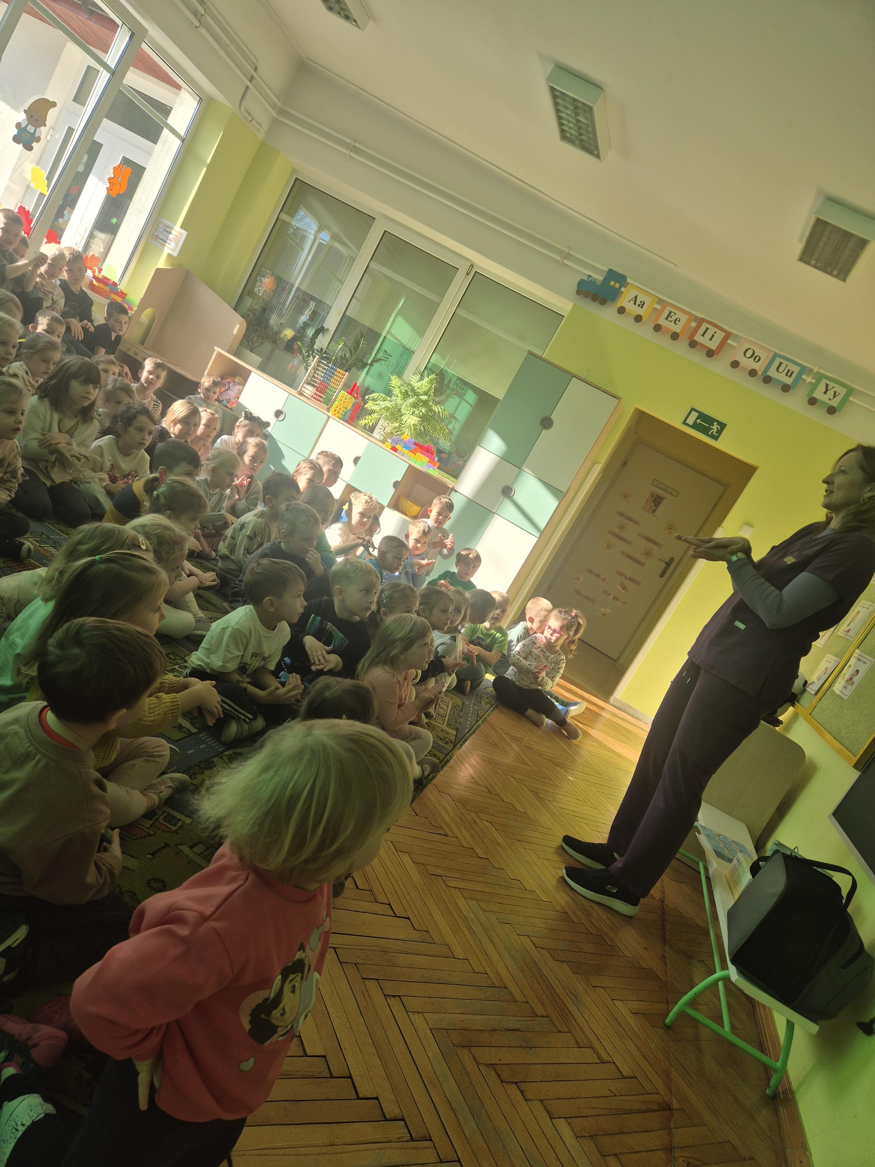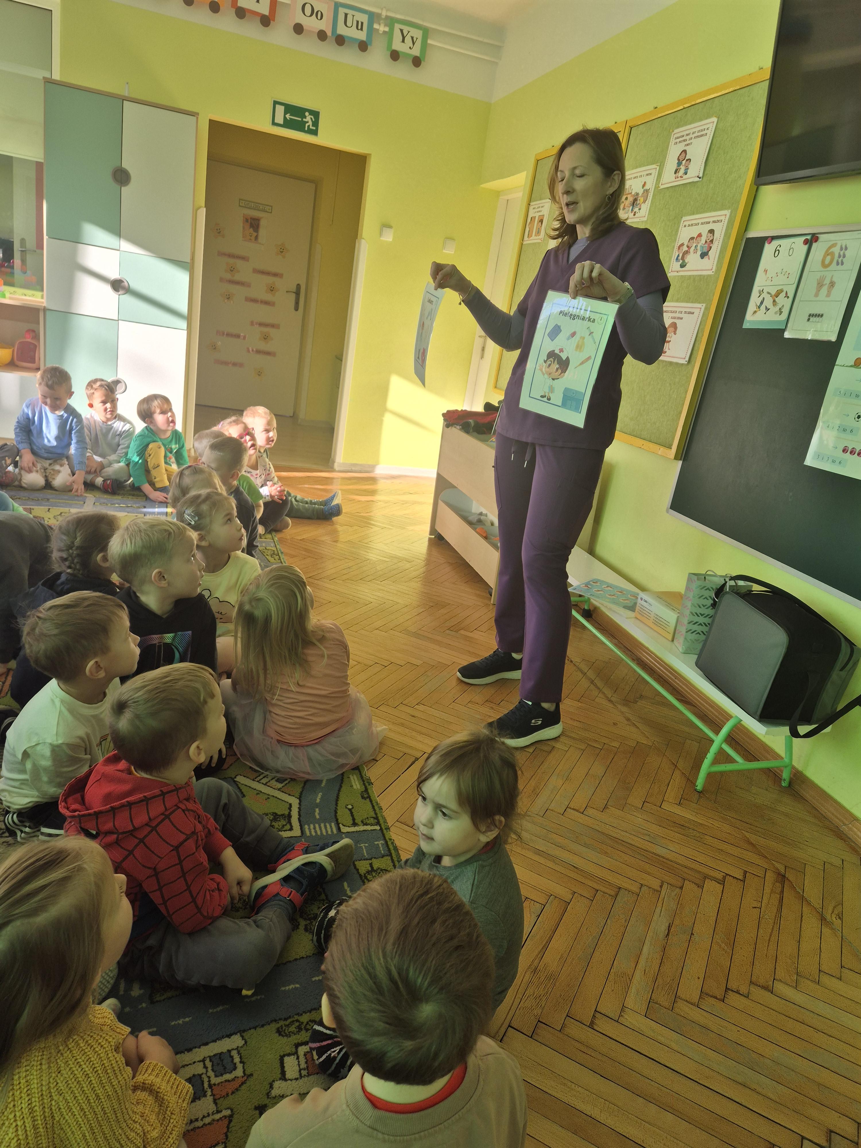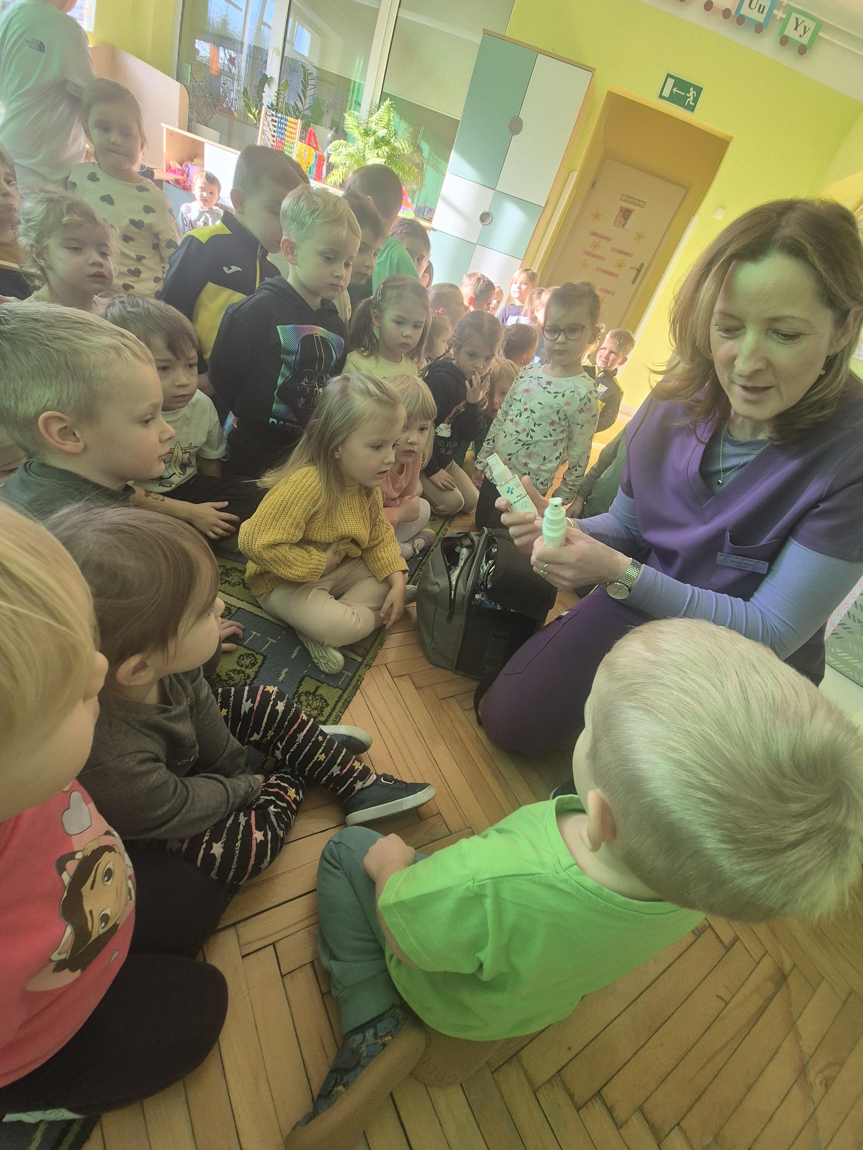 Dzisiaj nasze przedszkole odwiedziła Pani Agata Bulanda - pielęgniarka z Gminnego Zakładu Opieki Zdrowotnej w Żegocinie. Przedszkolaki dzięki temu spotkaniu utrwaliły wszystkie wiadomości na temat zdrowia i sposobów dbania o nie. Przypomniane zostały zasady higieny oraz zdrowego stylu życia. Dzieci były bardzo zainteresowane tematem, szczególnie torbą z wyposażeniem, takim jak stetoskop, czy ciśnieniomierz. Zadawały Pani pielęgniarce wiele pytań.