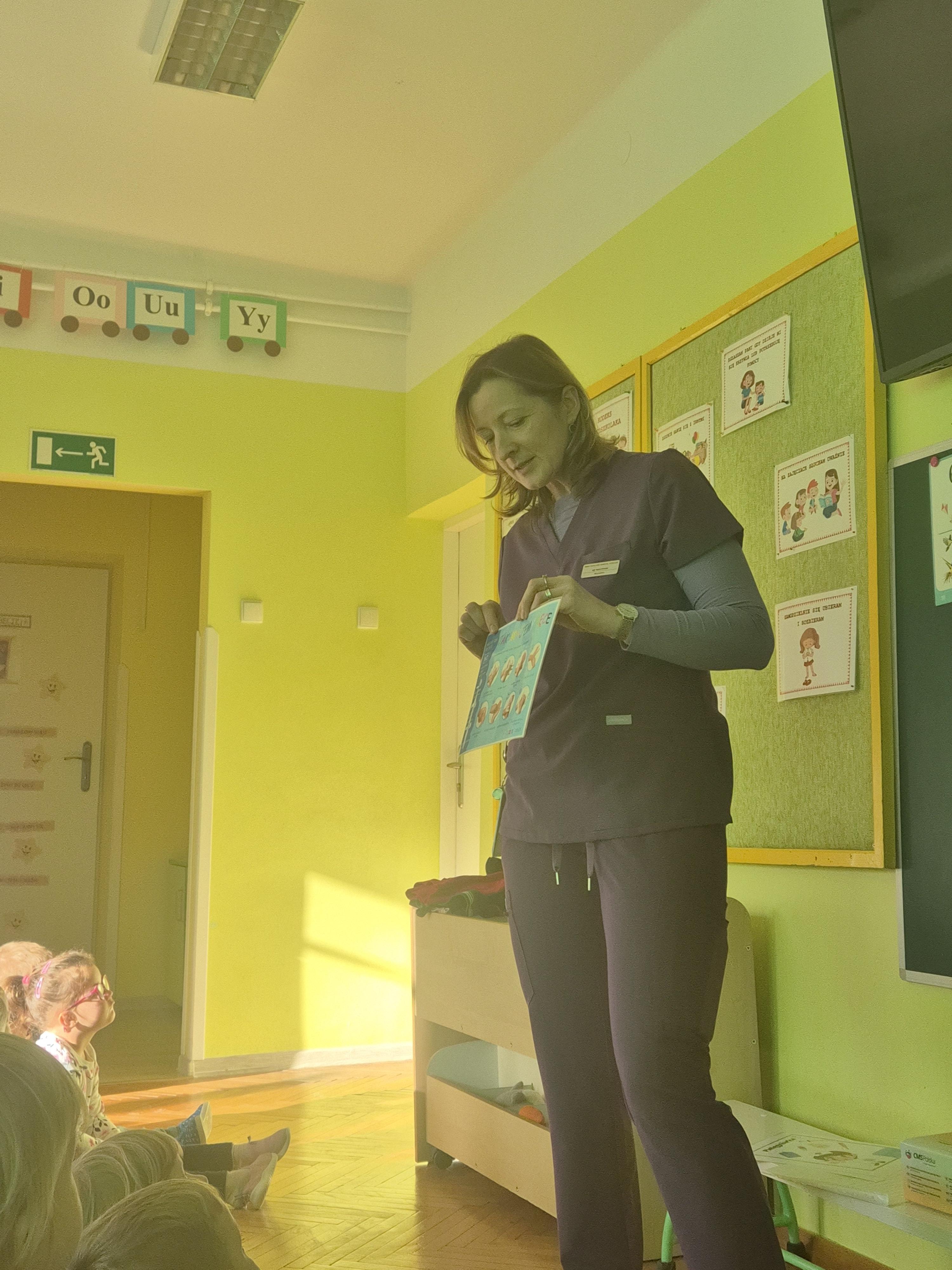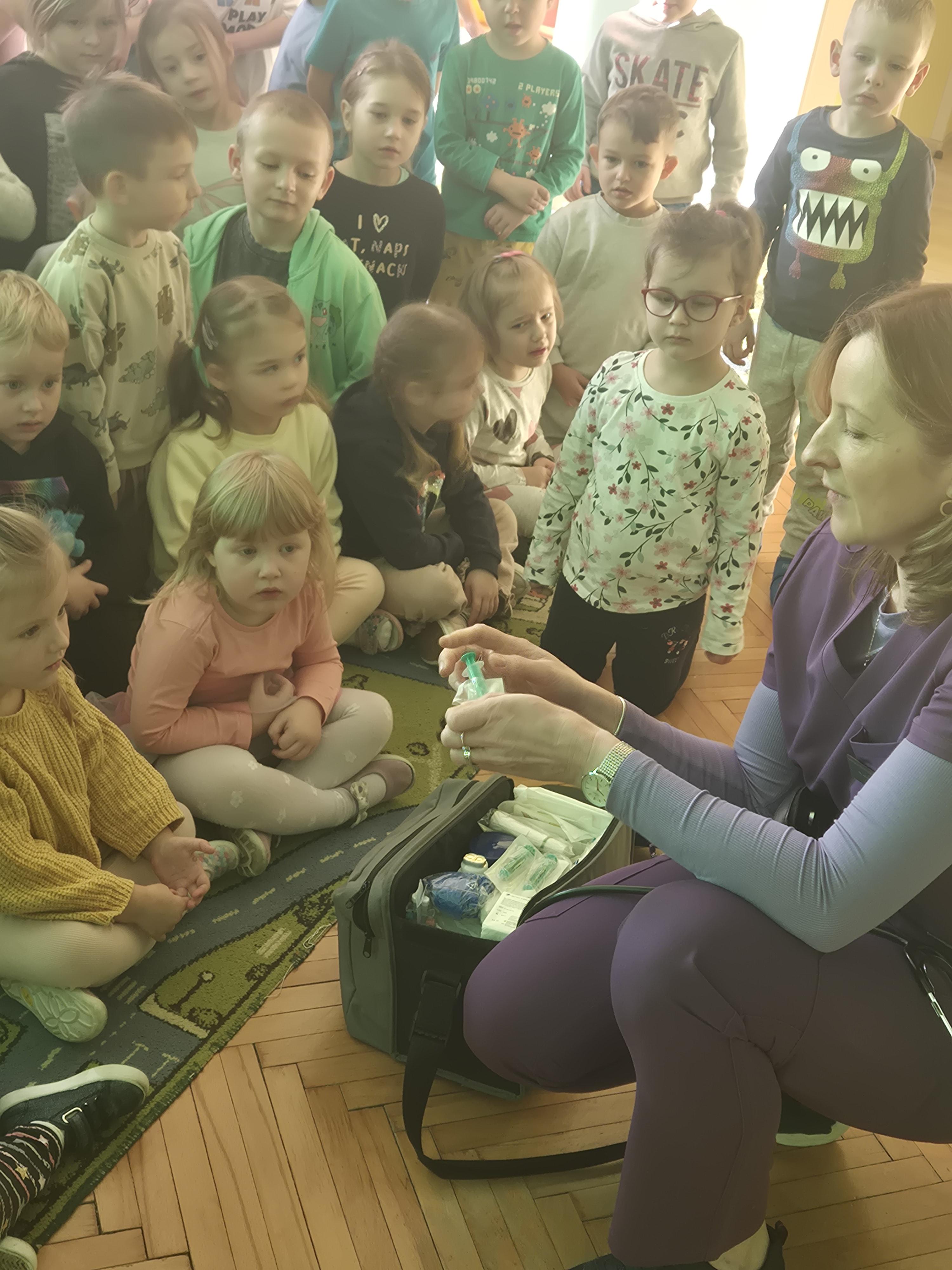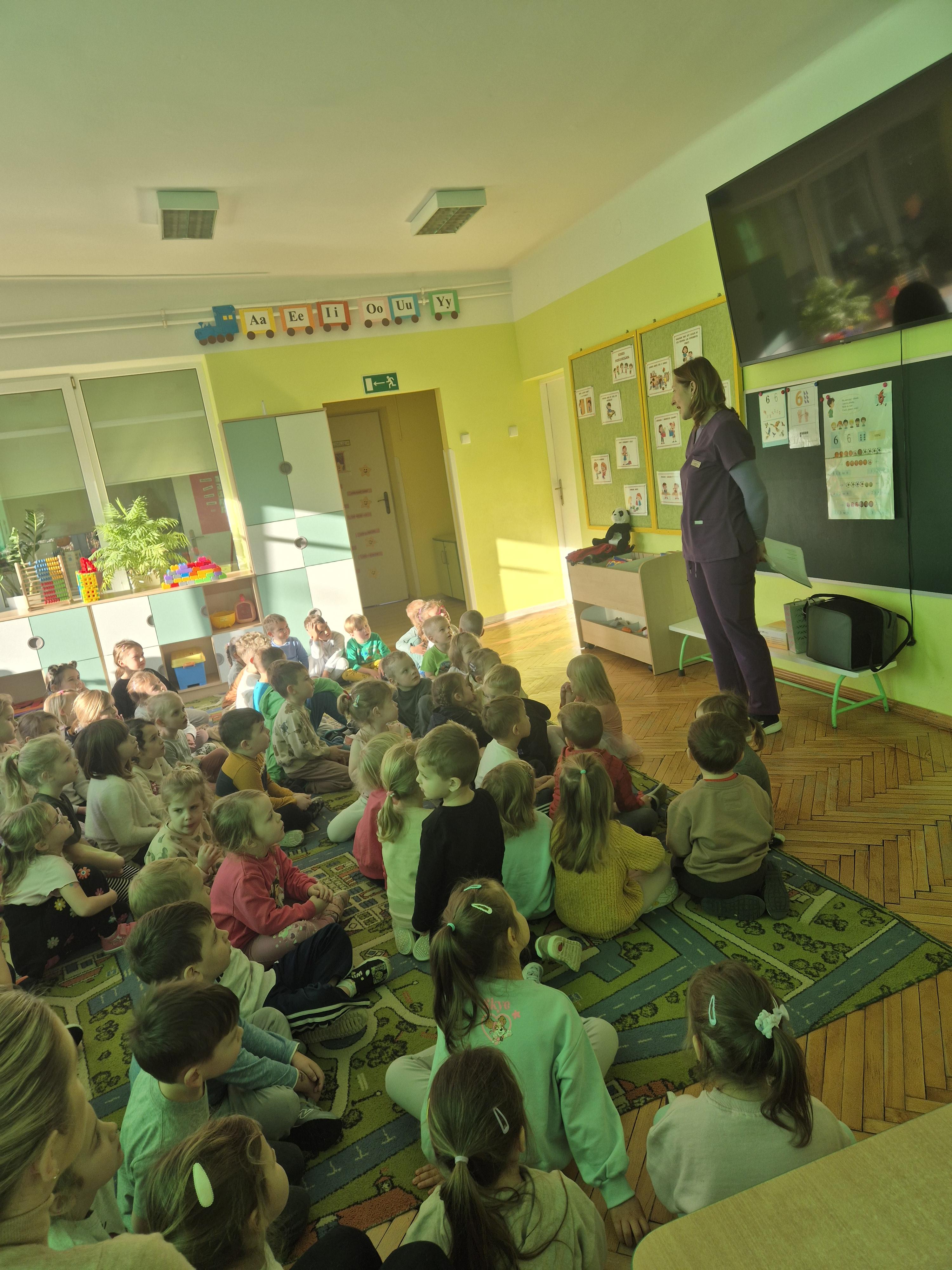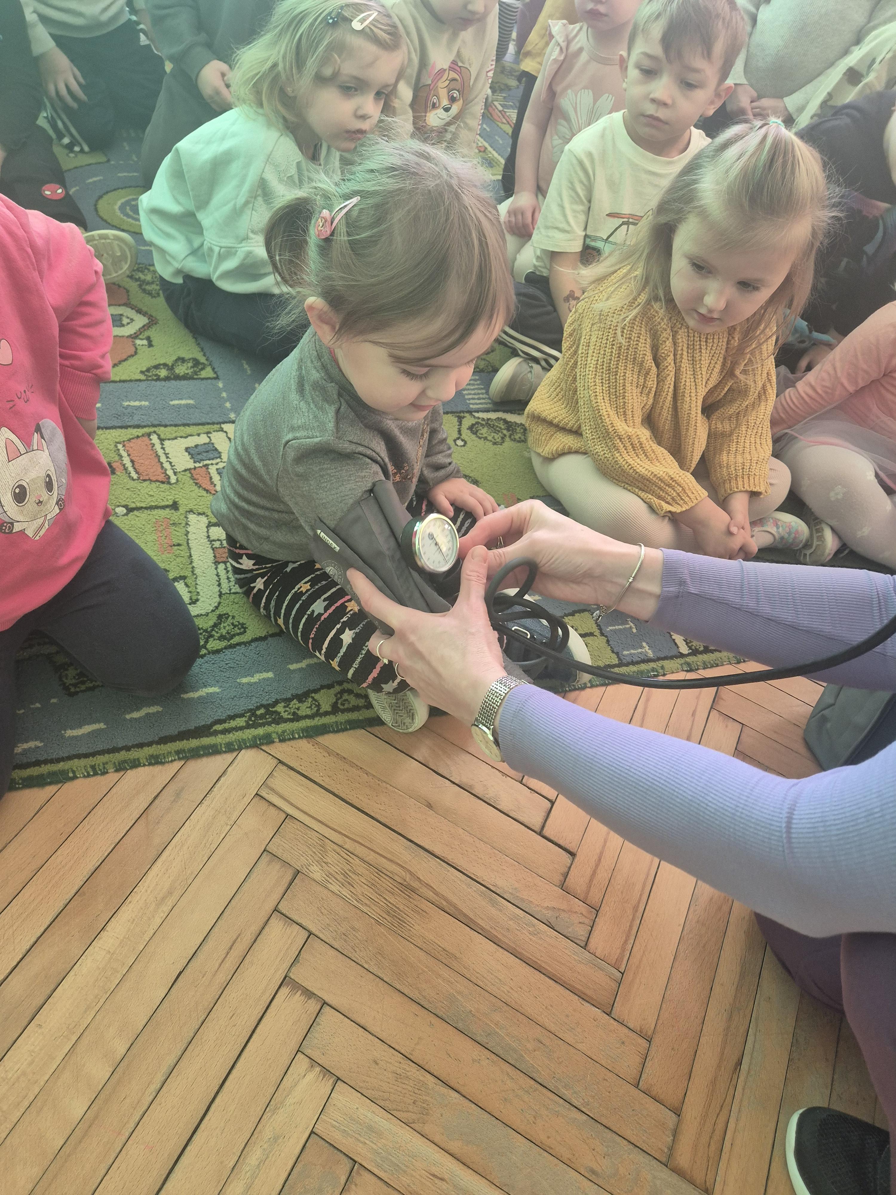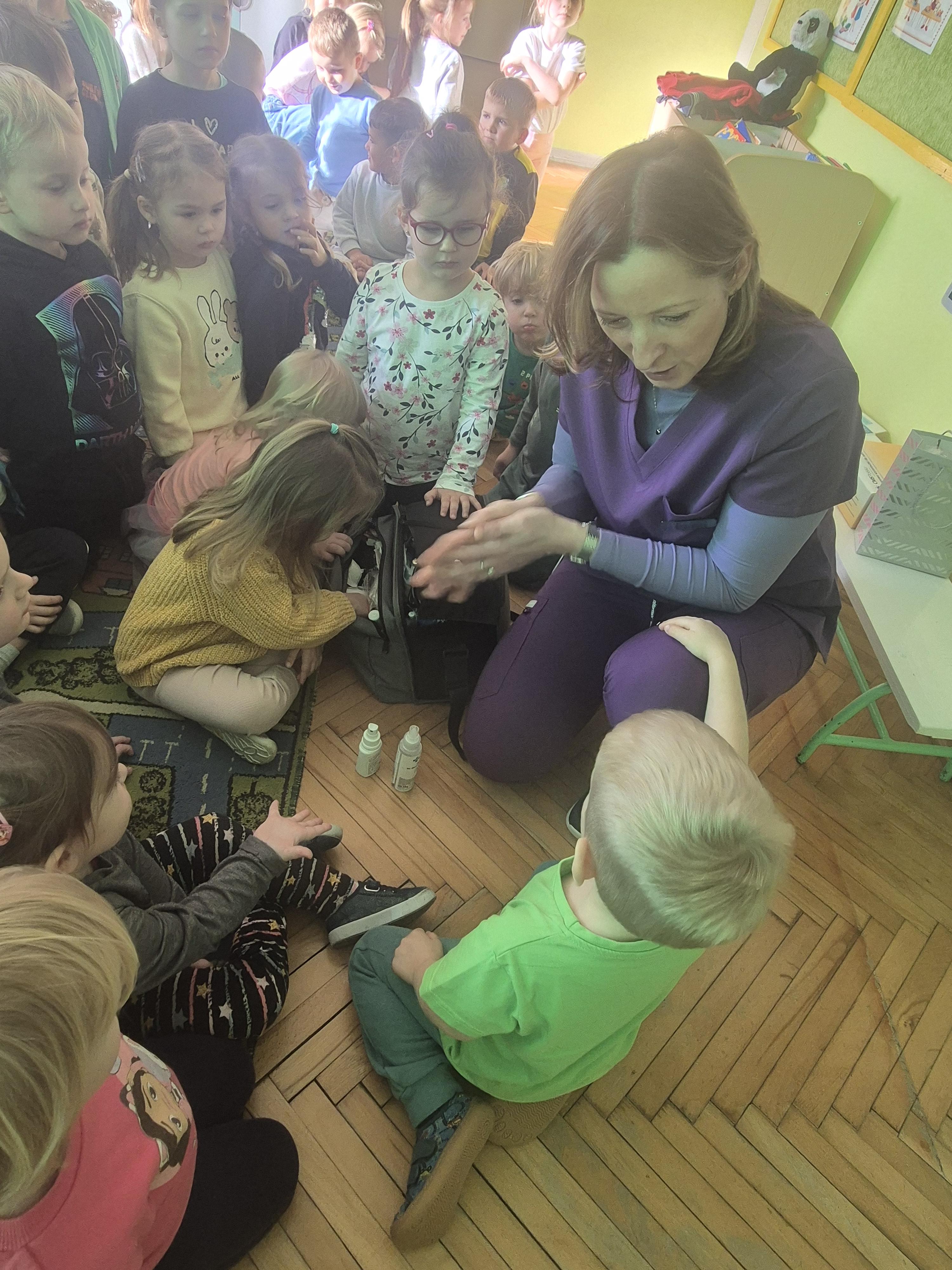 Dzisiaj nasze przedszkole odwiedziła Pani Agata Bulanda - pielęgniarka z Gminnego Zakładu Opieki Zdrowotnej w Żegocinie. Przedszkolaki dzięki temu spotkaniu utrwaliły wszystkie wiadomości na temat zdrowia i sposobów dbania o nie. Przypomniane zostały zasady higieny oraz zdrowego stylu życia. Dzieci były bardzo zainteresowane tematem, szczególnie torbą z wyposażeniem, takim jak stetoskop, czy ciśnieniomierz. Zadawały Pani pielęgniarce wiele pytań.
