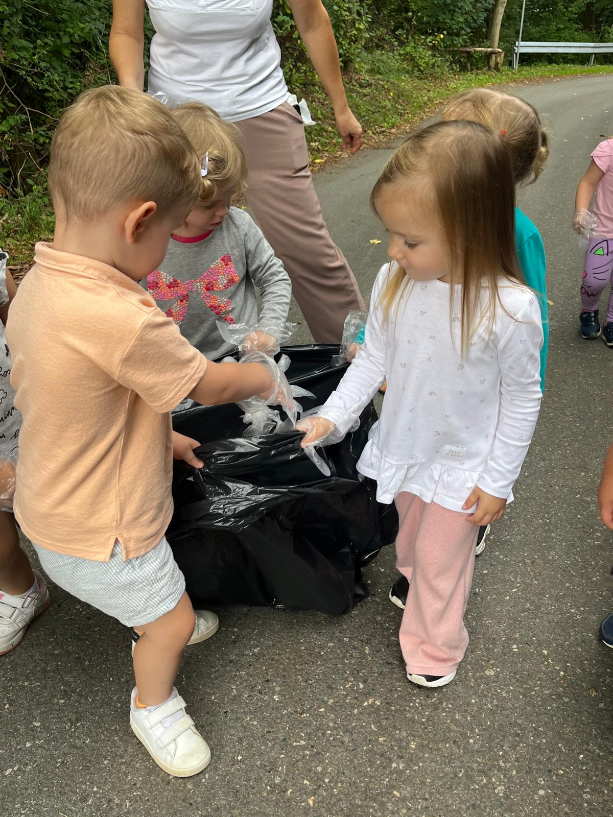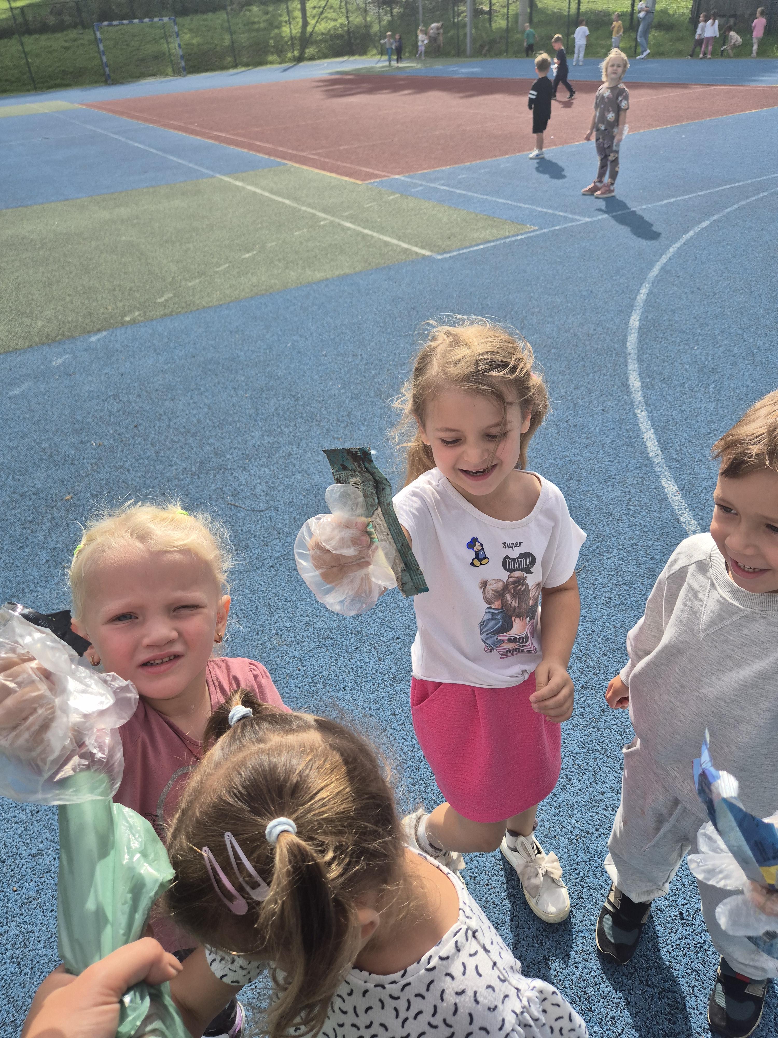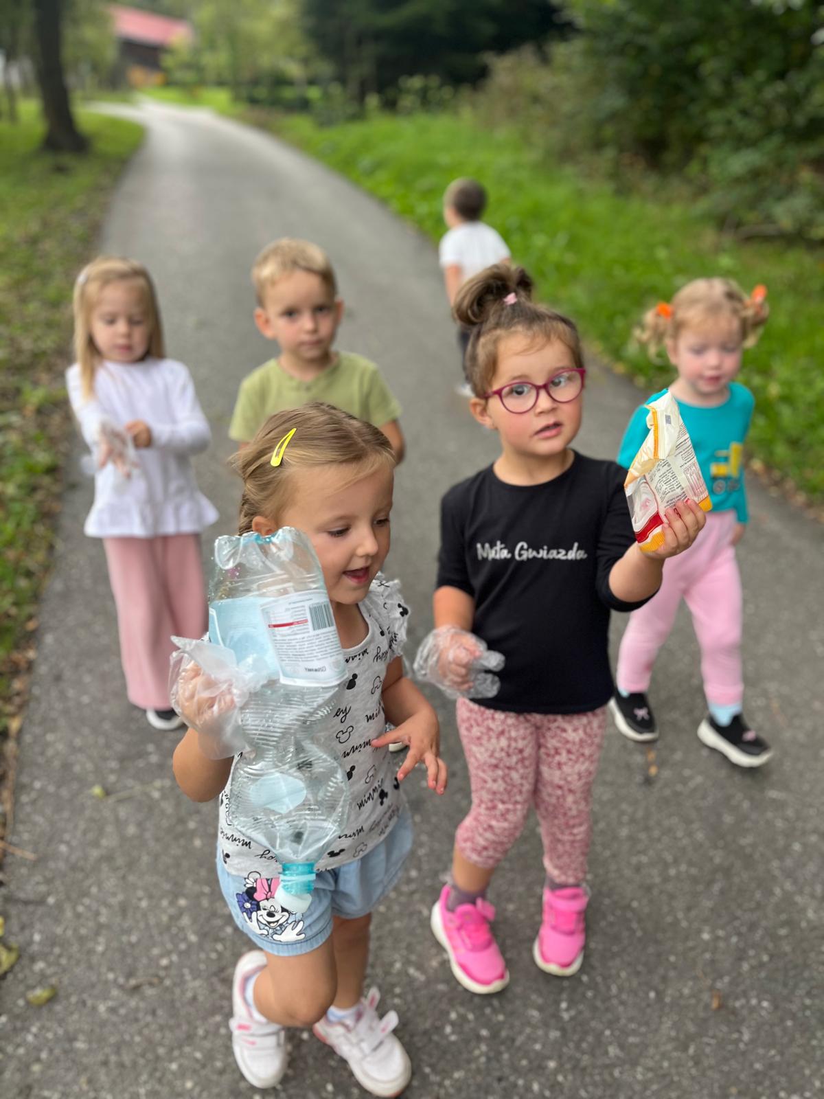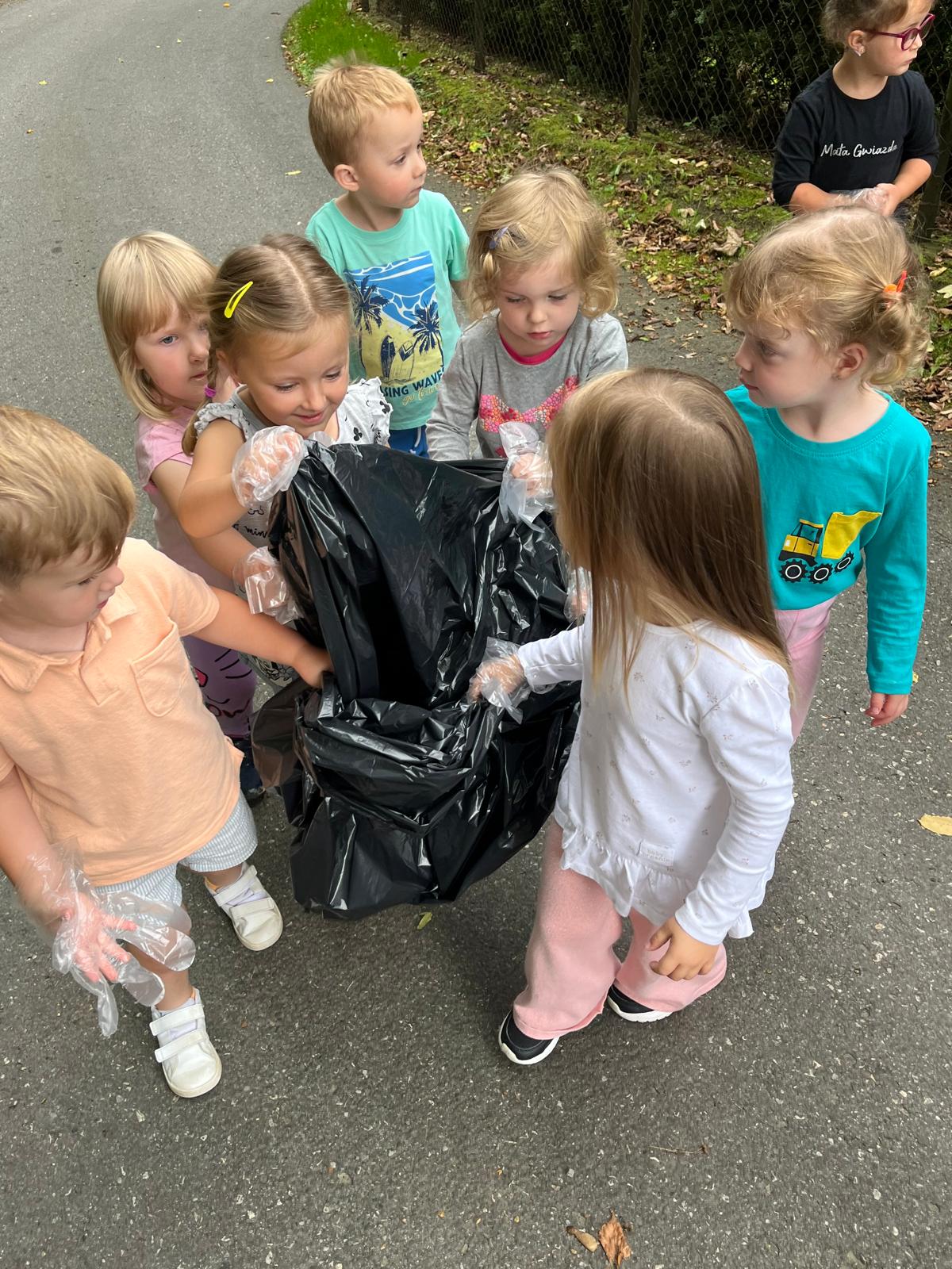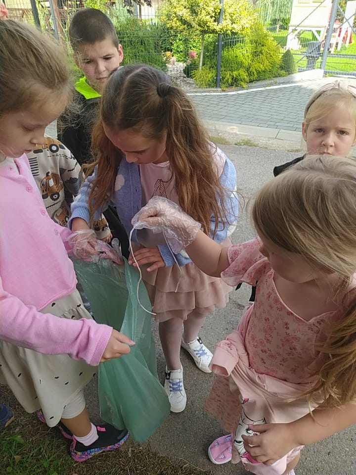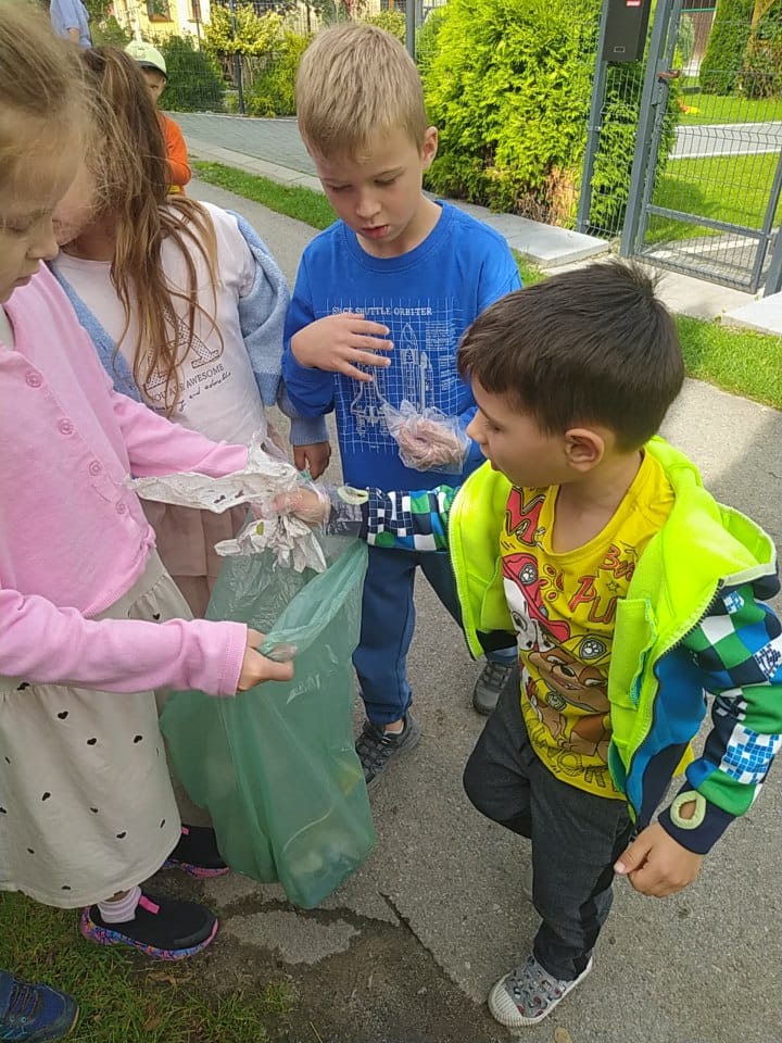 19 września uczestniczyliśmy w akcji "Sprzątanie Świata". Jej celem jest kształtowanie odpowiedzialności za środowisko naturalne. Przedszkolaki zaopatrzyły się w worki na śmieci i jednorazowe rękawiczki i wyruszyły na spacer po najbliższej okolicy w poszukiwaniu śmieci, które z wielkim zaangażowaniem sprzątały. Akcja odbyła się w bardzo miłej atmosferze, z uśmiechami na twarzach. Zadanie oprócz jego pożyteczności, było także formą świetnej zabawy. "Sprzątanie świata" jest świetną okazją do uświadamiania dzieciom konieczności dbania o teraźniejszy oraz przyszły stan środowiska naturalnego.