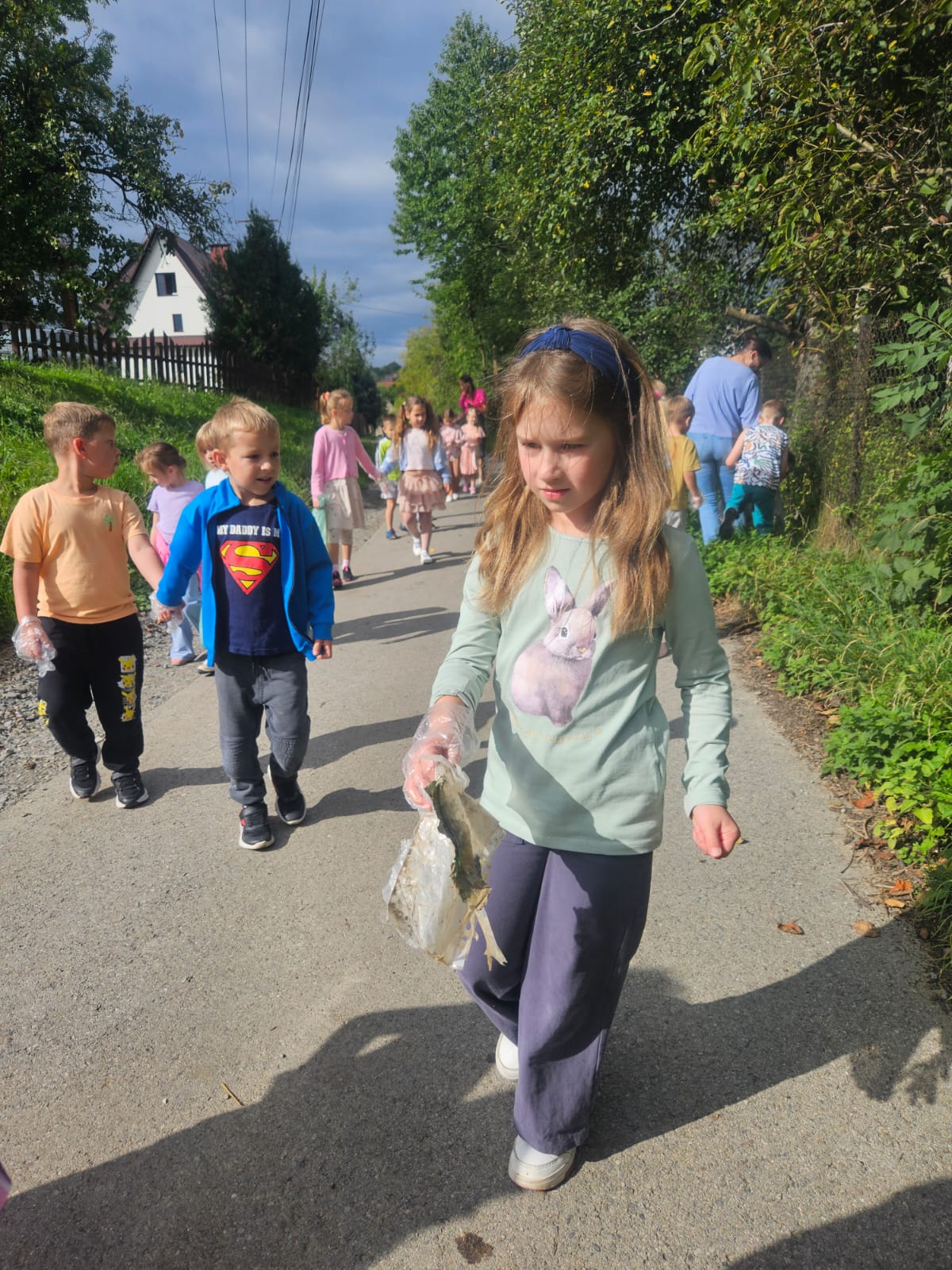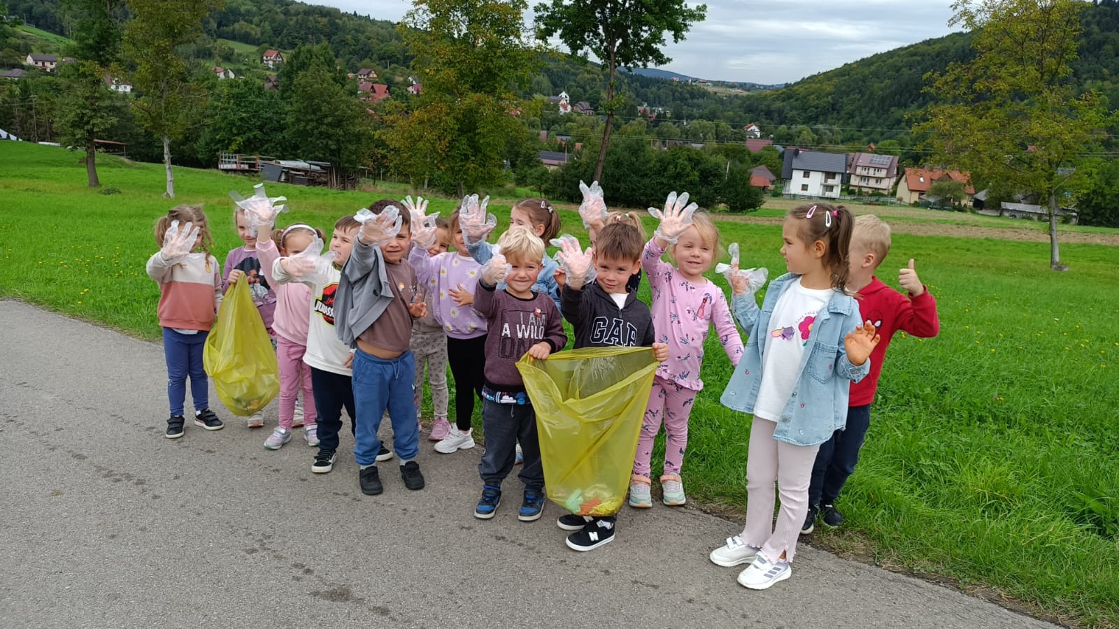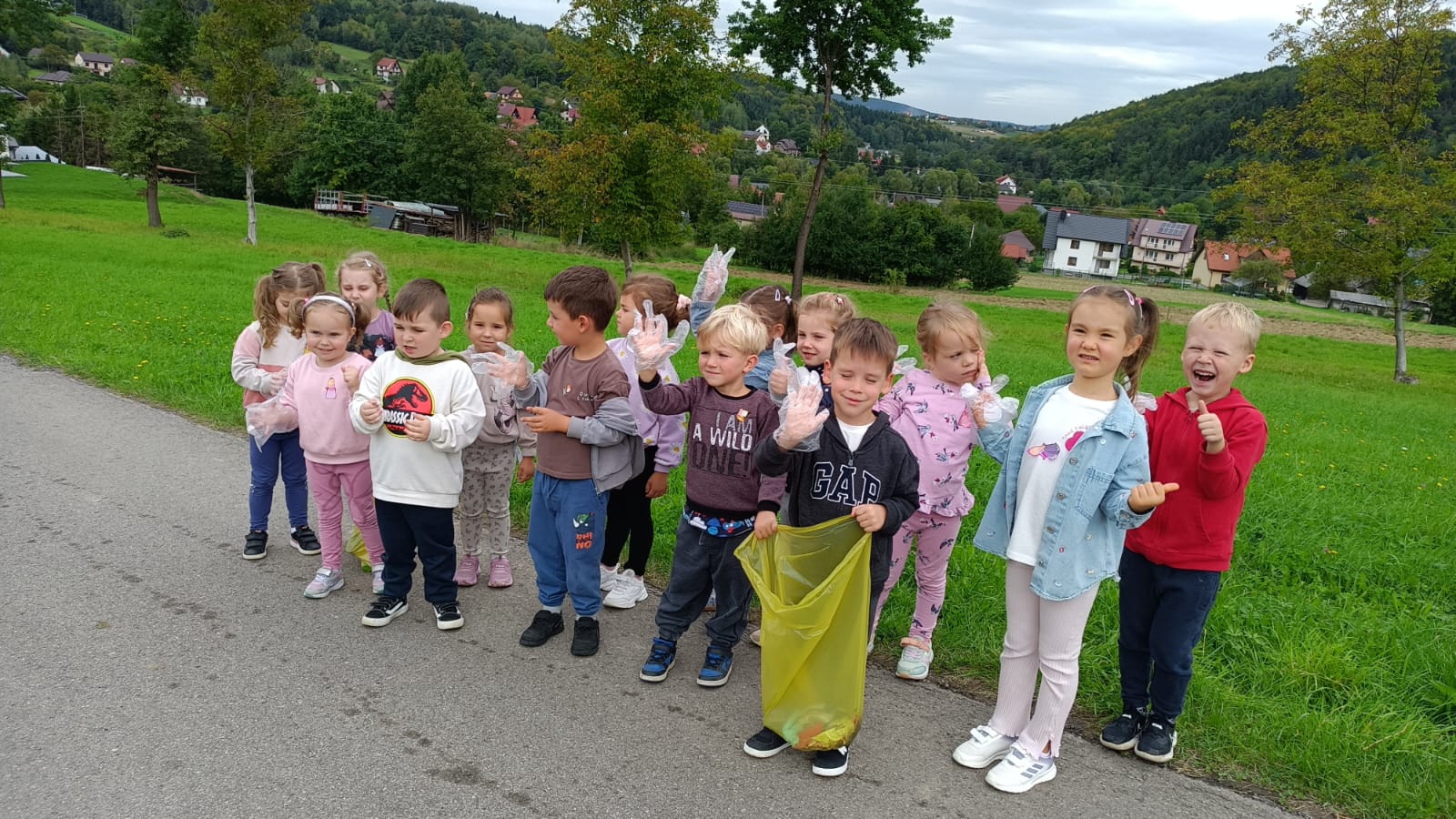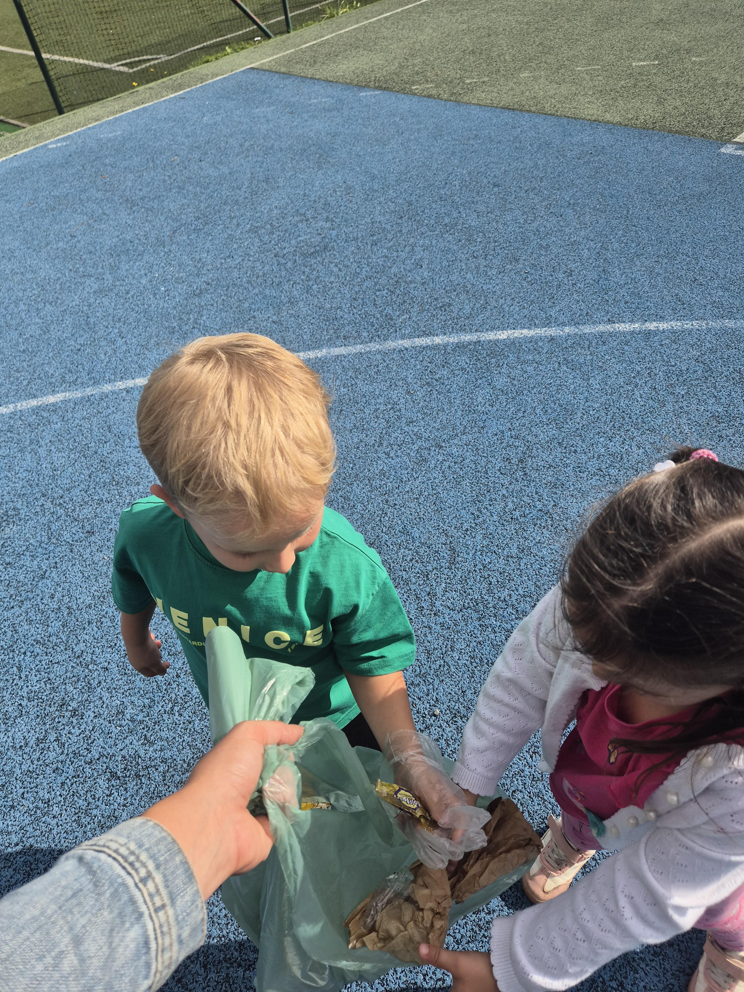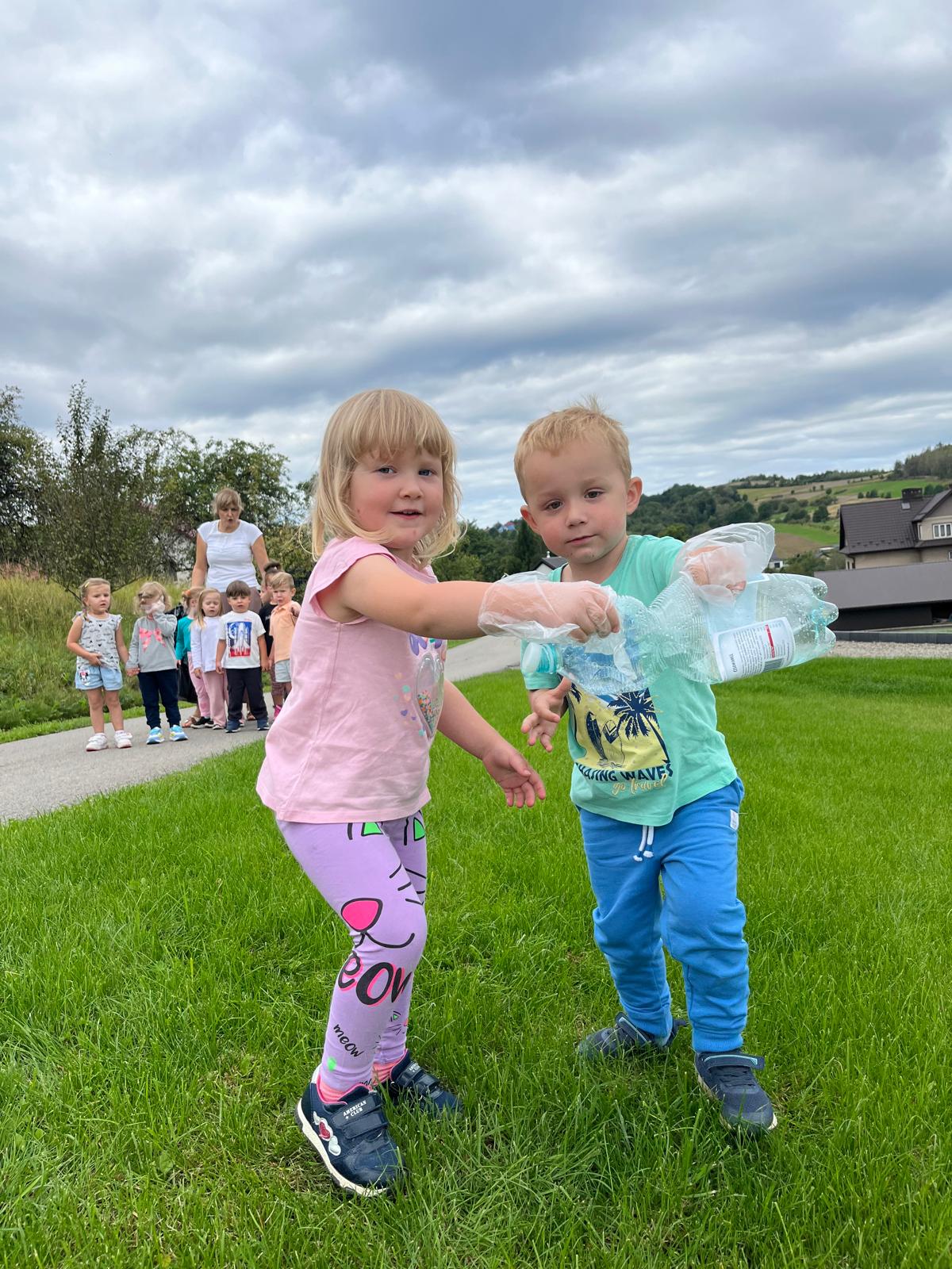 19 września uczestniczyliśmy w akcji "Sprzątanie Świata". Jej celem jest kształtowanie odpowiedzialności za środowisko naturalne. Przedszkolaki zaopatrzyły się w worki na śmieci i jednorazowe rękawiczki i wyruszyły na spacer po najbliższej okolicy w poszukiwaniu śmieci, które z wielkim zaangażowaniem sprzątały. Akcja odbyła się w bardzo miłej atmosferze, z uśmiechami na twarzach. Zadanie oprócz jego pożyteczności, było także formą świetnej zabawy. "Sprzątanie świata" jest świetną okazją do uświadamiania dzieciom konieczności dbania o teraźniejszy oraz przyszły stan środowiska naturalnego.