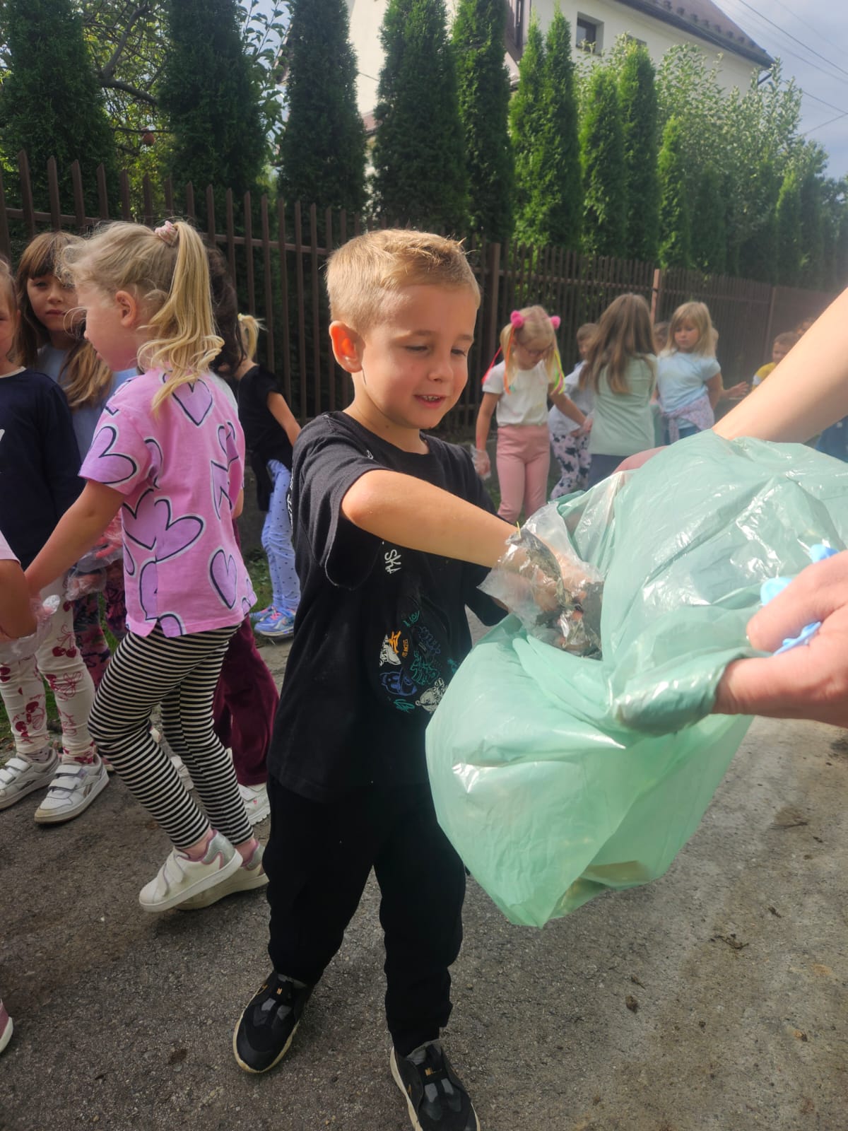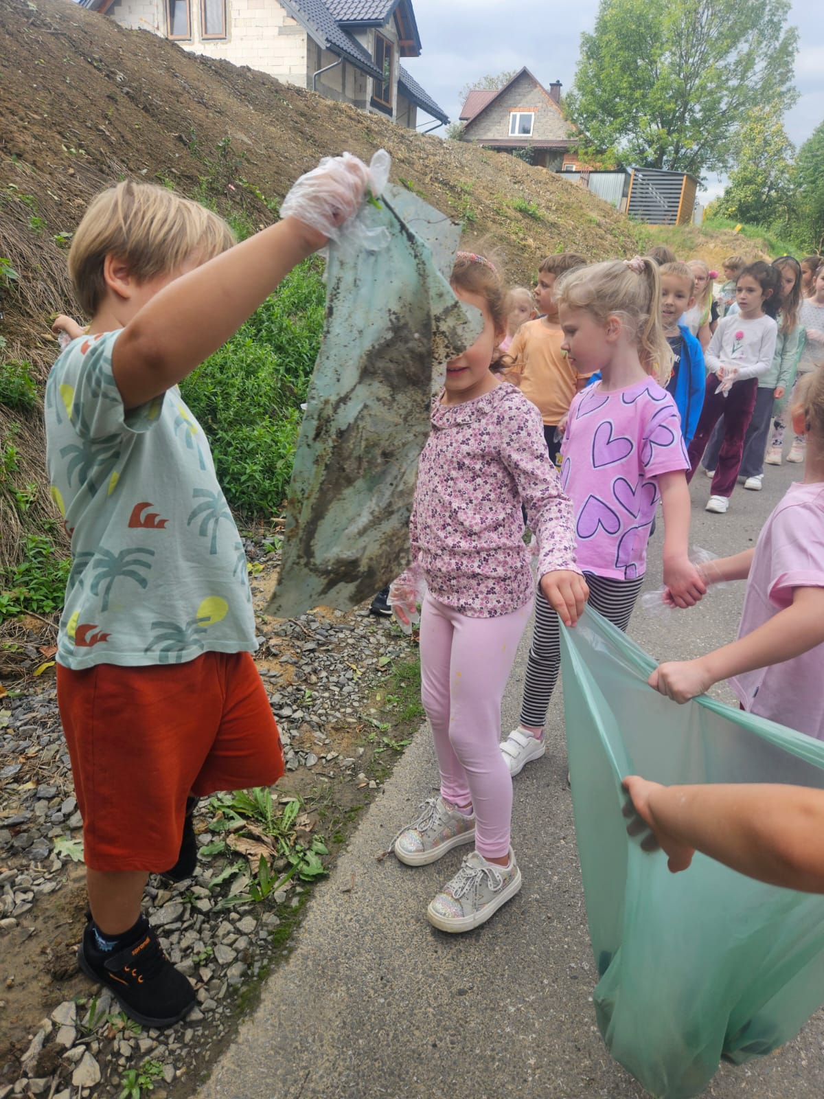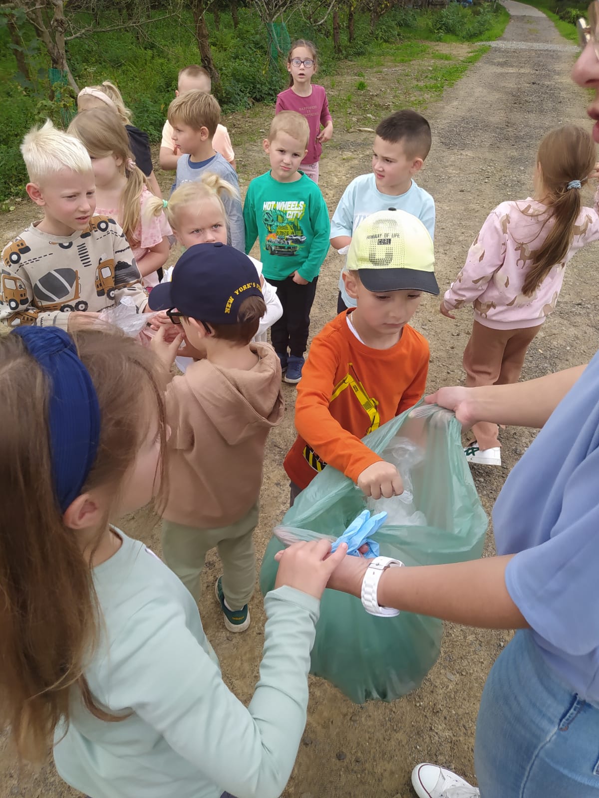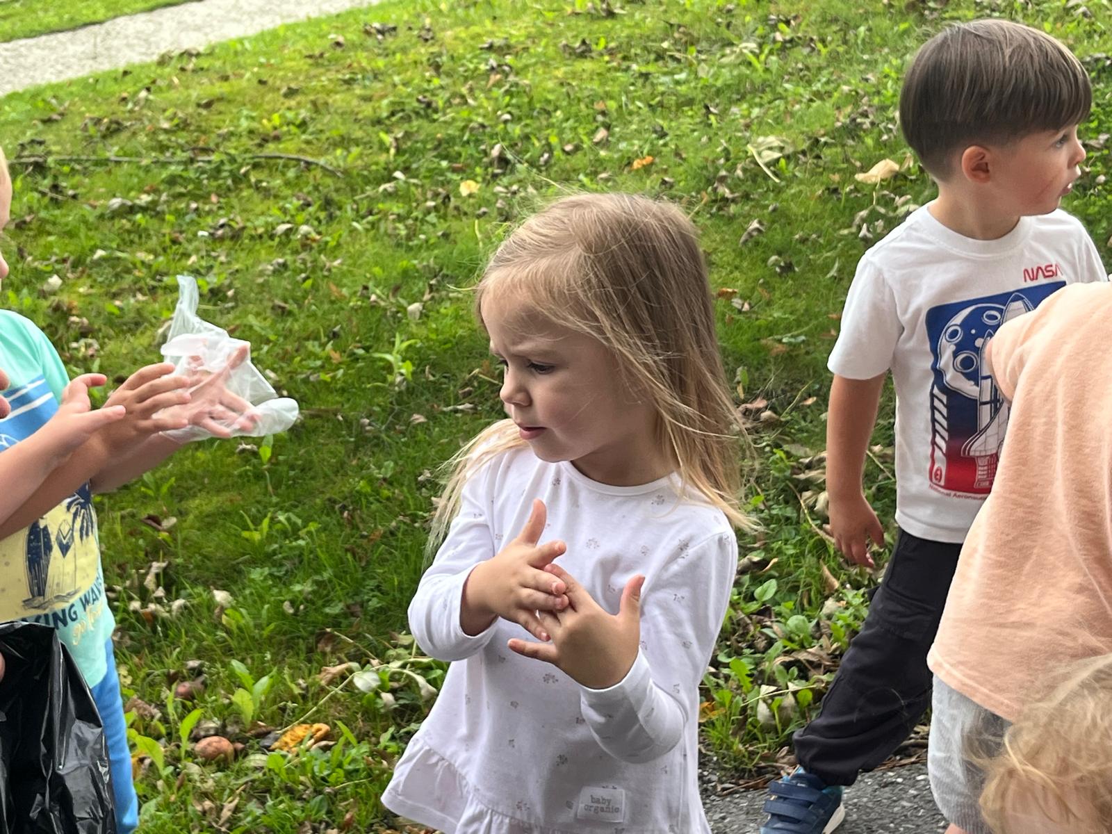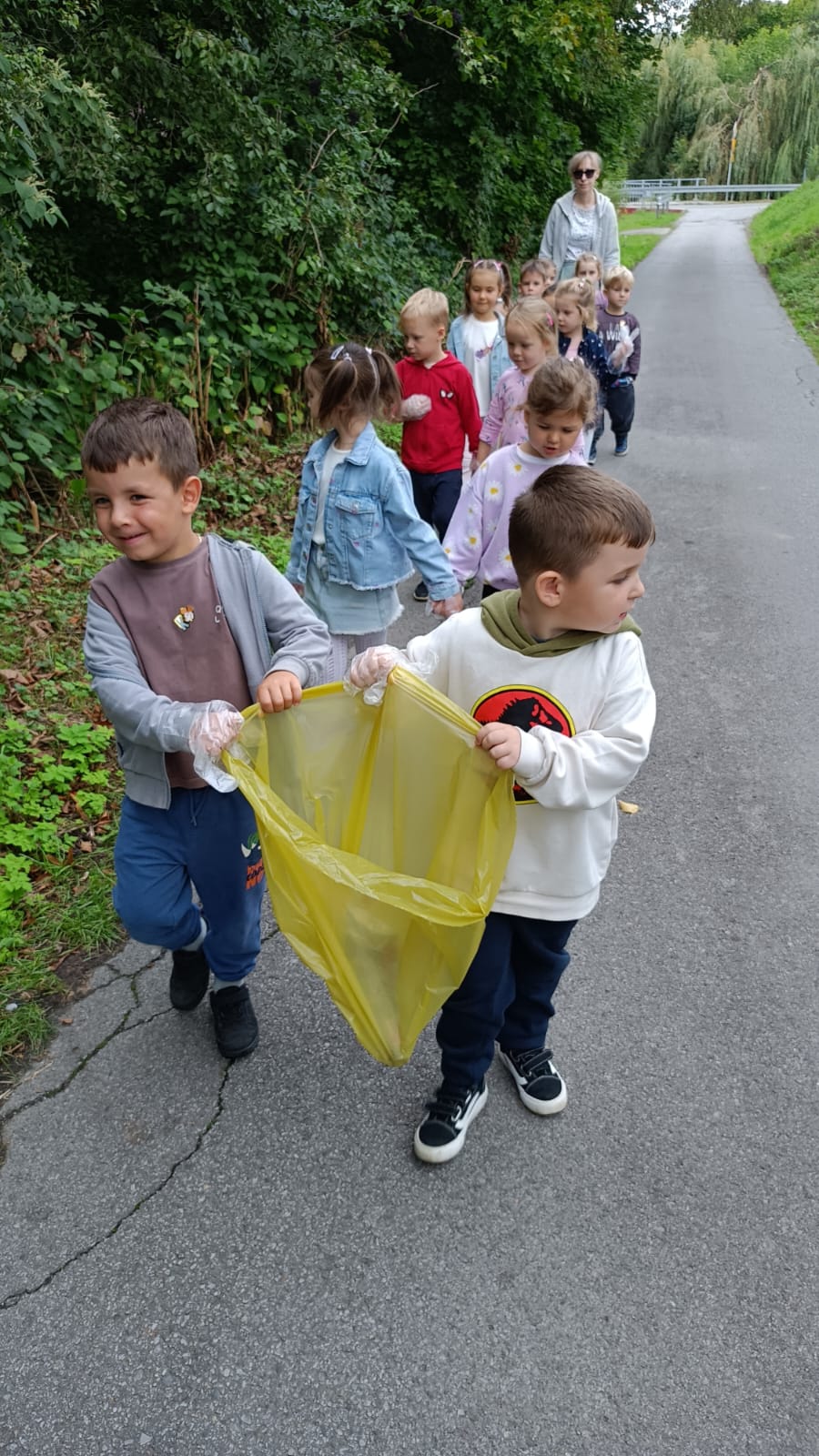 19 września uczestniczyliśmy w akcji "Sprzątanie Świata". Jej celem jest kształtowanie odpowiedzialności za środowisko naturalne. Przedszkolaki zaopatrzyły się w worki na śmieci i jednorazowe rękawiczki i wyruszyły na spacer po najbliższej okolicy w poszukiwaniu śmieci, które z wielkim zaangażowaniem sprzątały. Akcja odbyła się w bardzo miłej atmosferze, z uśmiechami na twarzach. Zadanie oprócz jego pożyteczności, było także formą świetnej zabawy. "Sprzątanie świata" jest świetną okazją do uświadamiania dzieciom konieczności dbania o teraźniejszy oraz przyszły stan środowiska naturalnego.