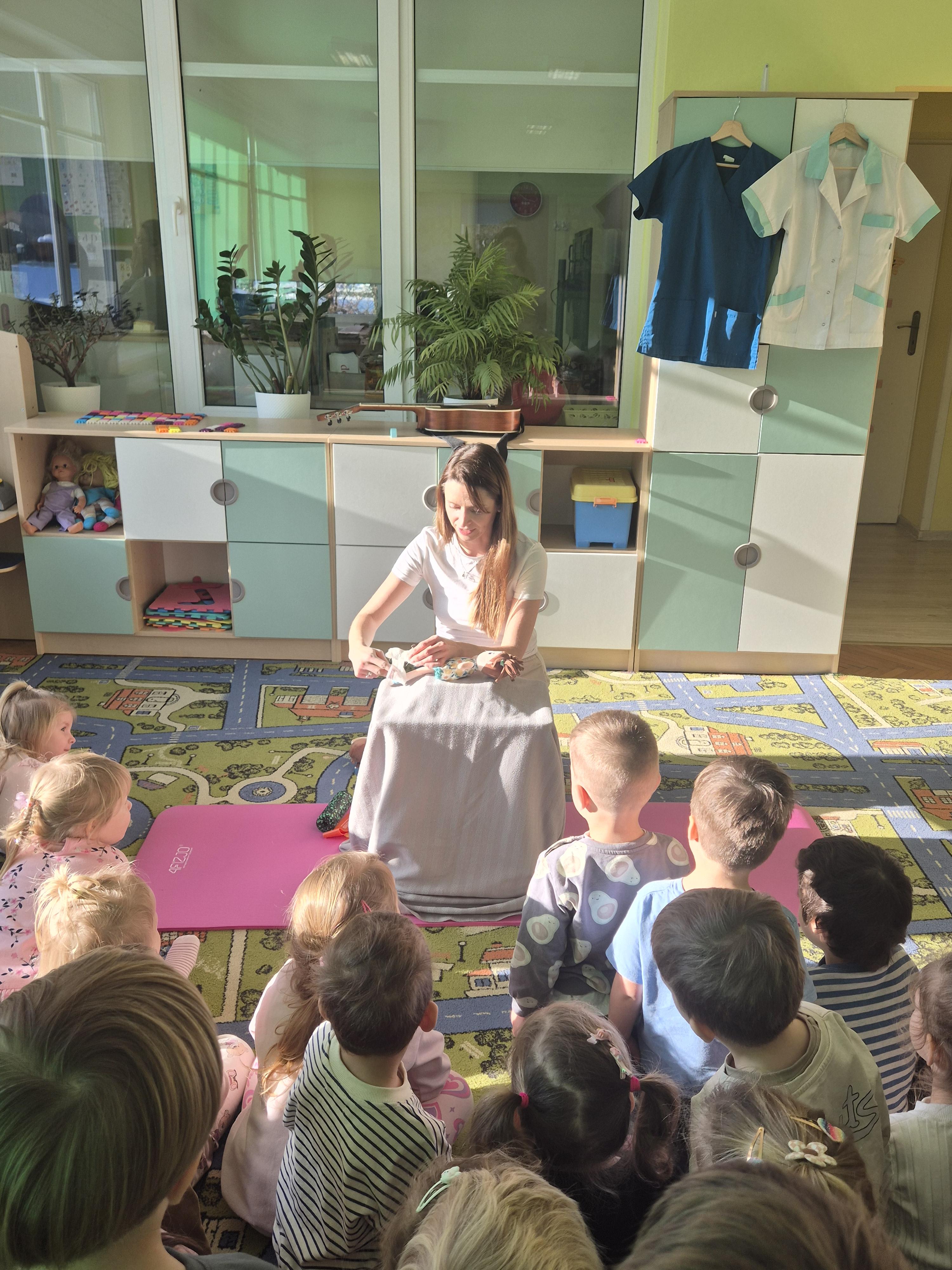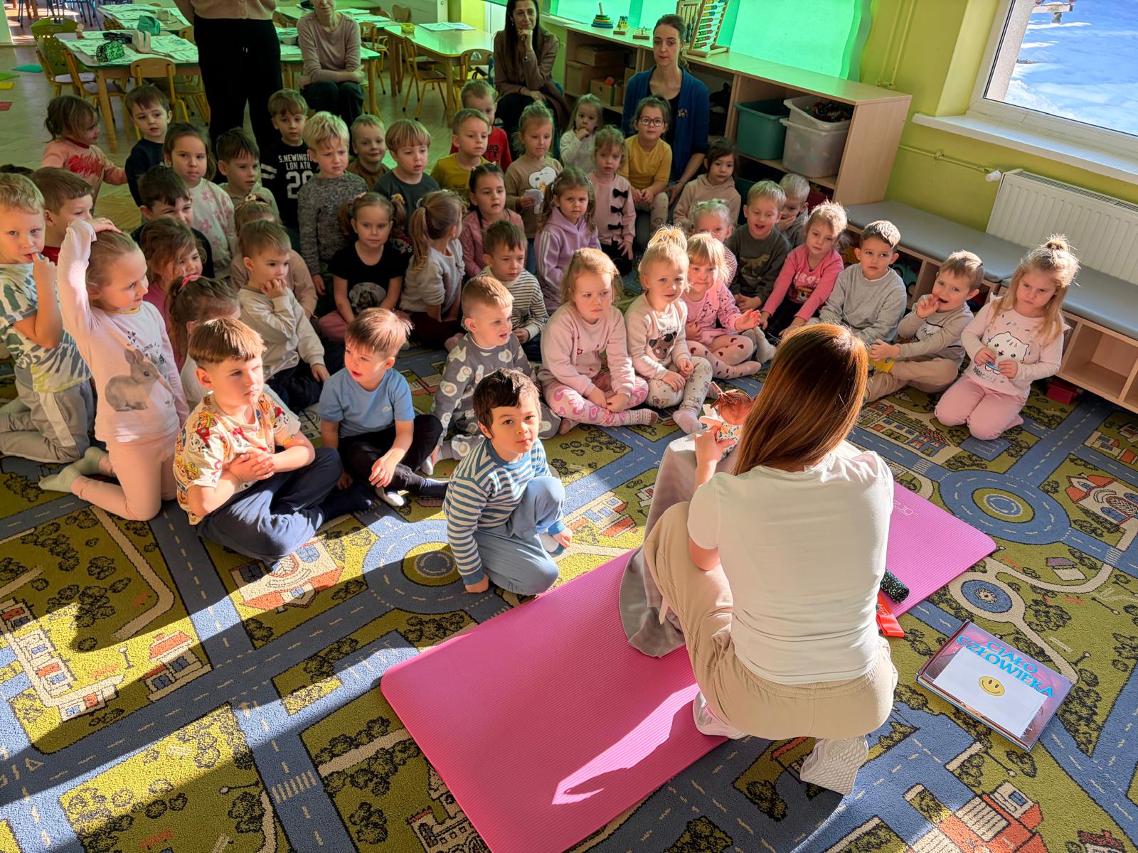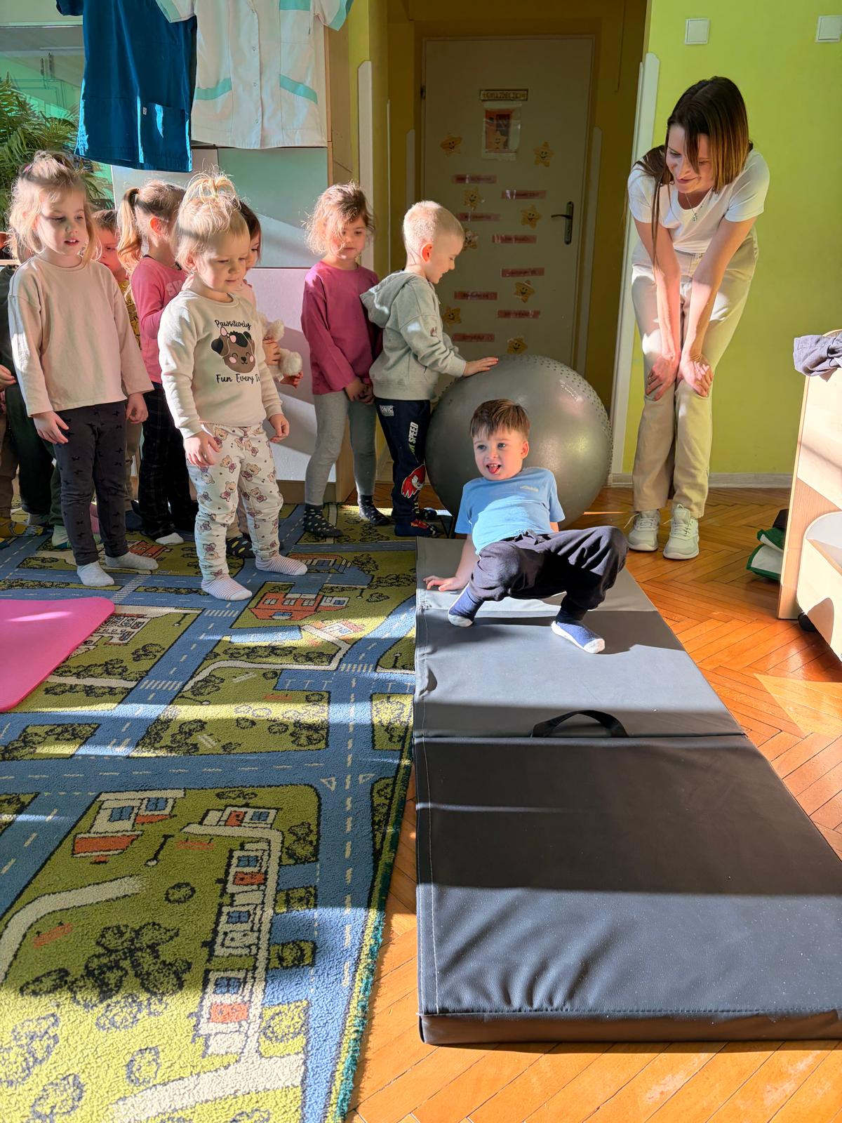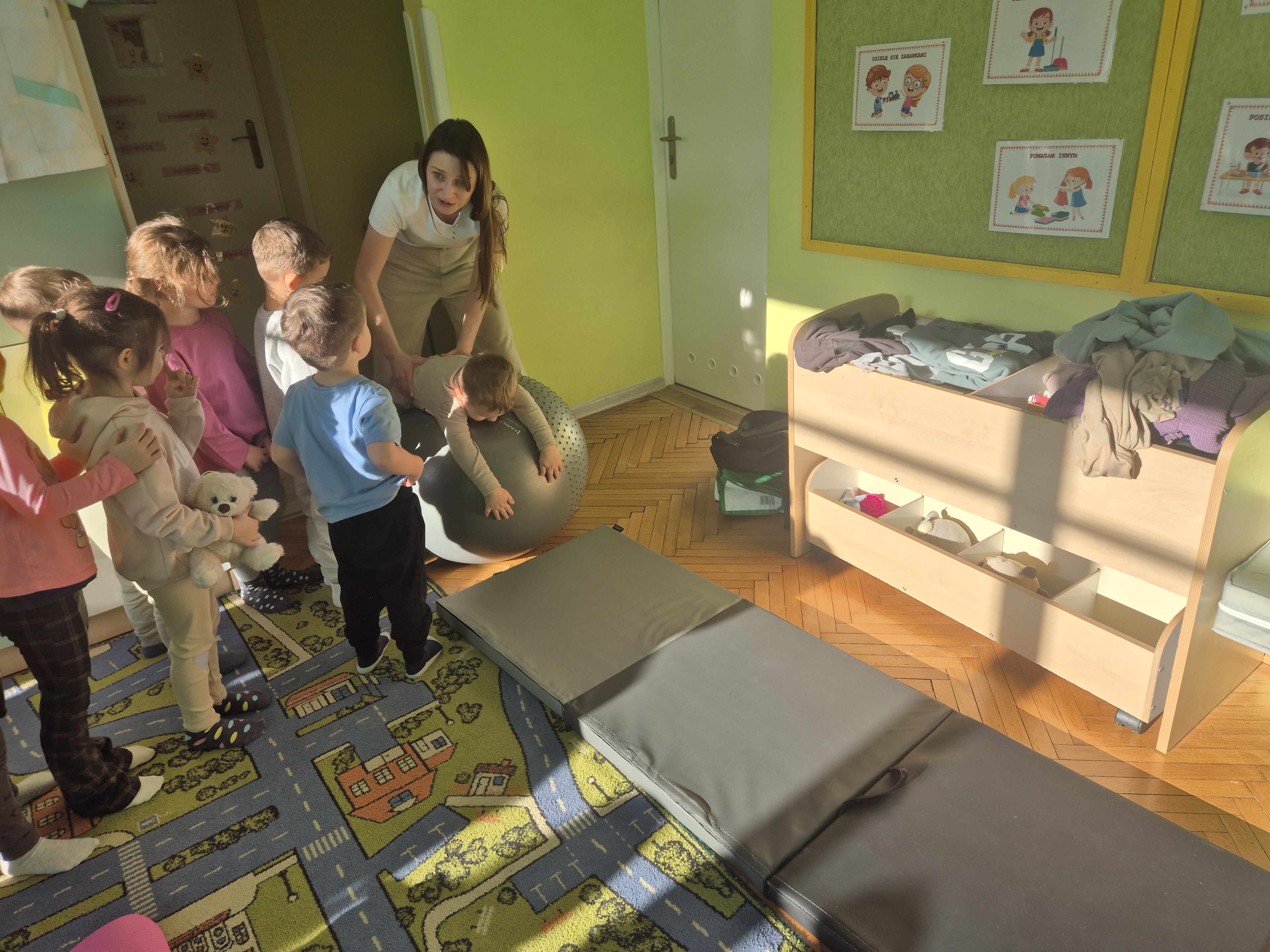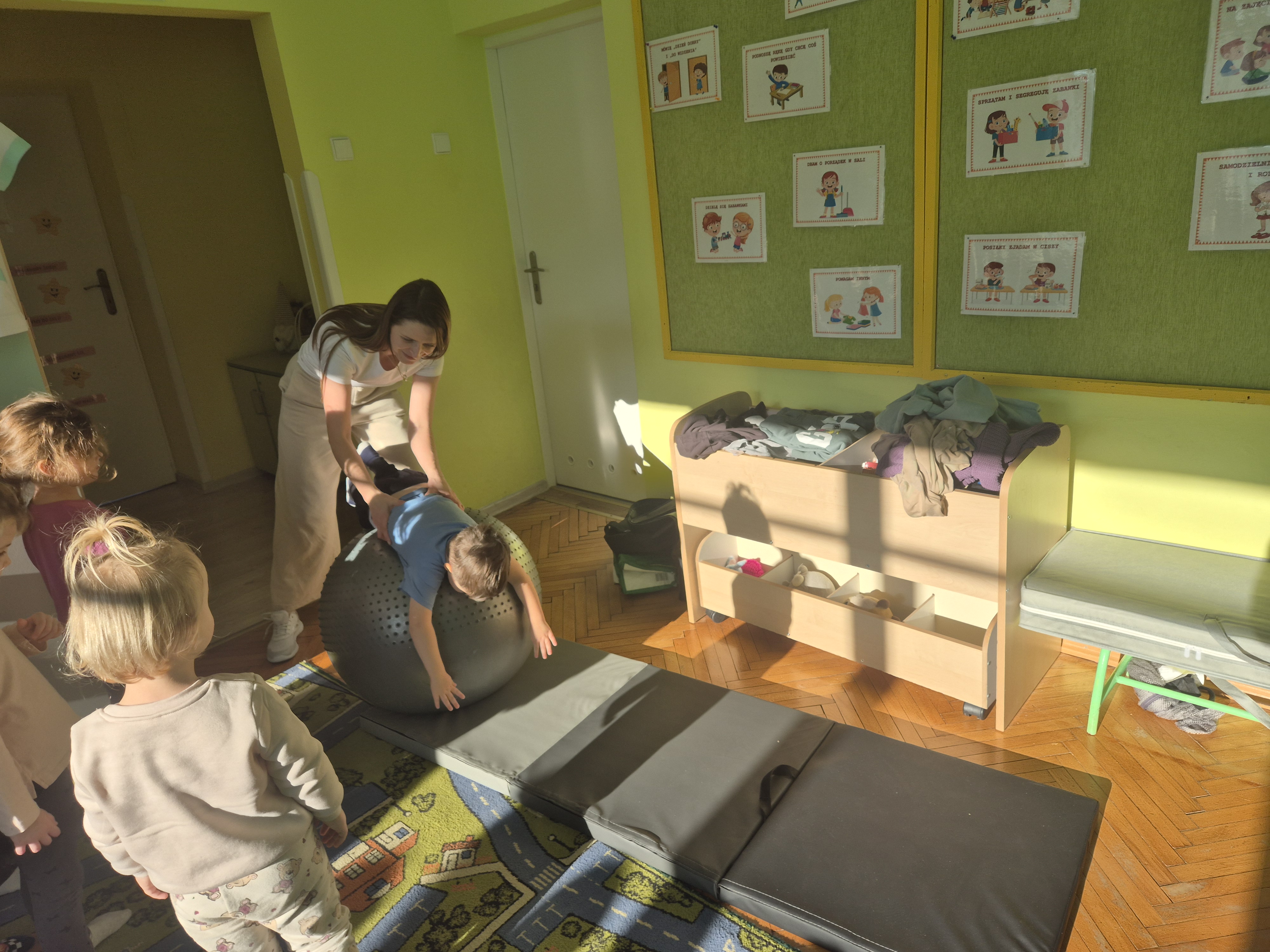 W piątek 28.11 nasze przedszkole odwiedziła mama jednego z naszych przedszkolaków i fizjoterapeutka, Pani Natalia Juszczyk. Pani Natalia w bardzo interesujący sposób przedstawiła dzieciom, na czym polega praca fizjoterapeuty oraz przygotowała świetnie ćwiczenia w formie toru przeszkód, które sprawiły dużo radości przedszkolakom. Na koniec czekała na nas niespodzianka muzyczna, dzięki której wszyscy z uśmiechem na ustach zakończyli spotkanie. Bardzo dziękujemy naszemu Gościowi za fascynującą lekcję przeprowadzoną w przemiłej atmosferze.