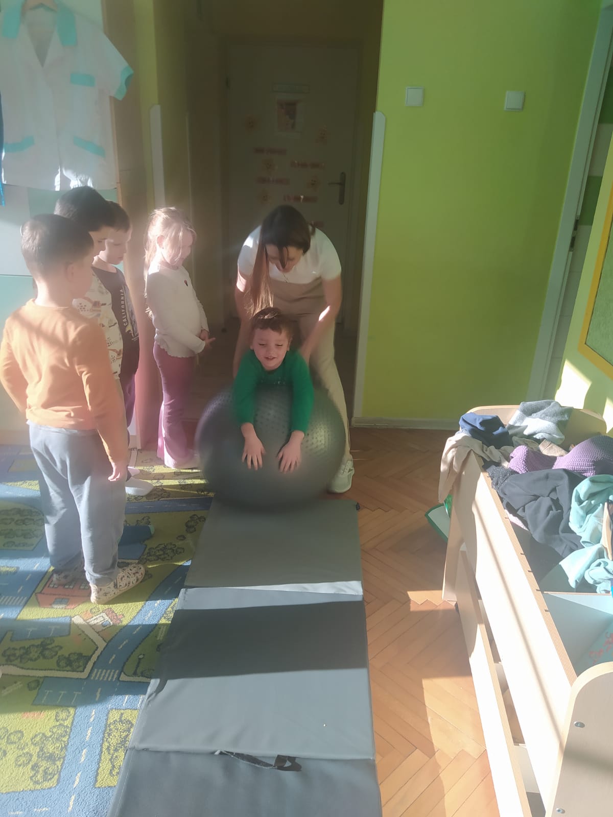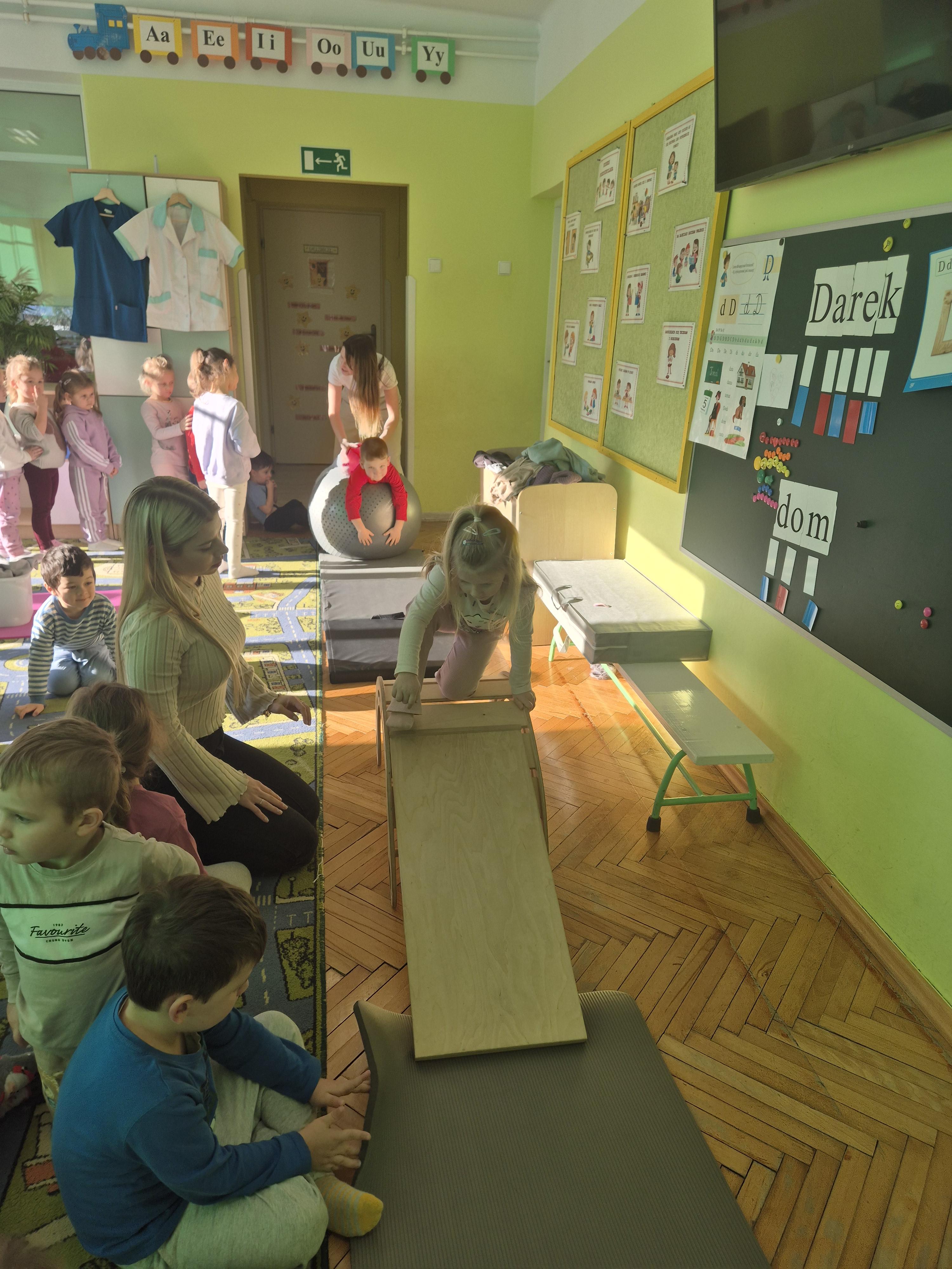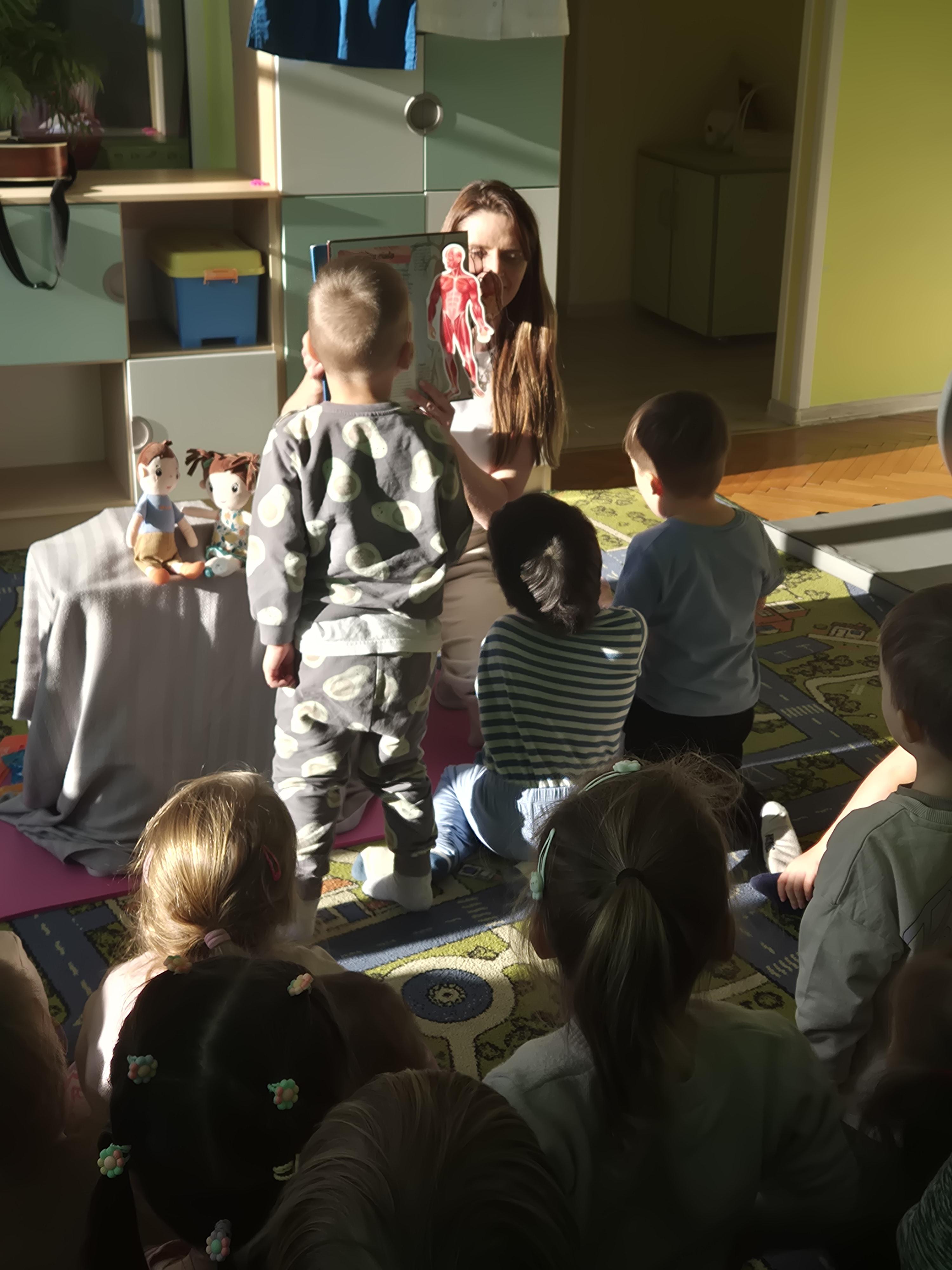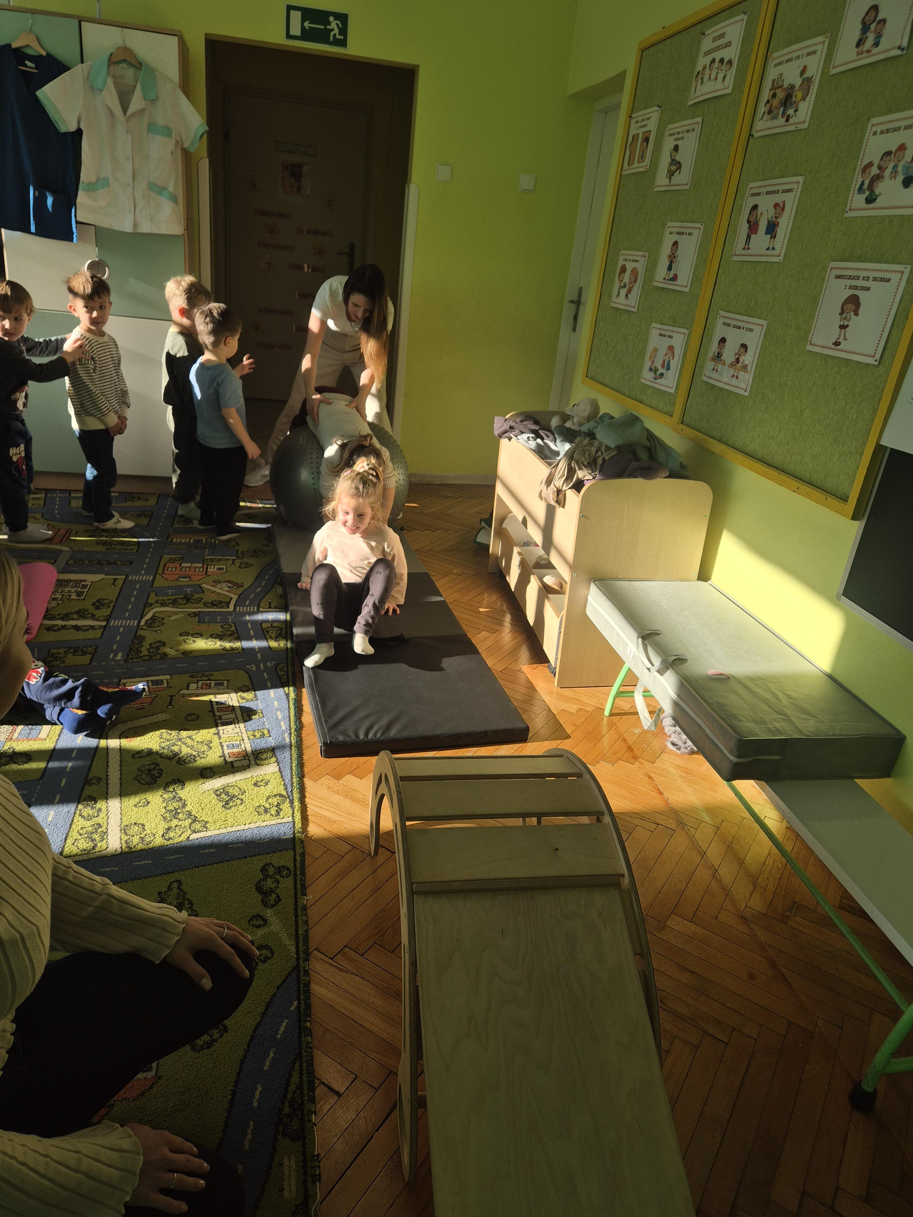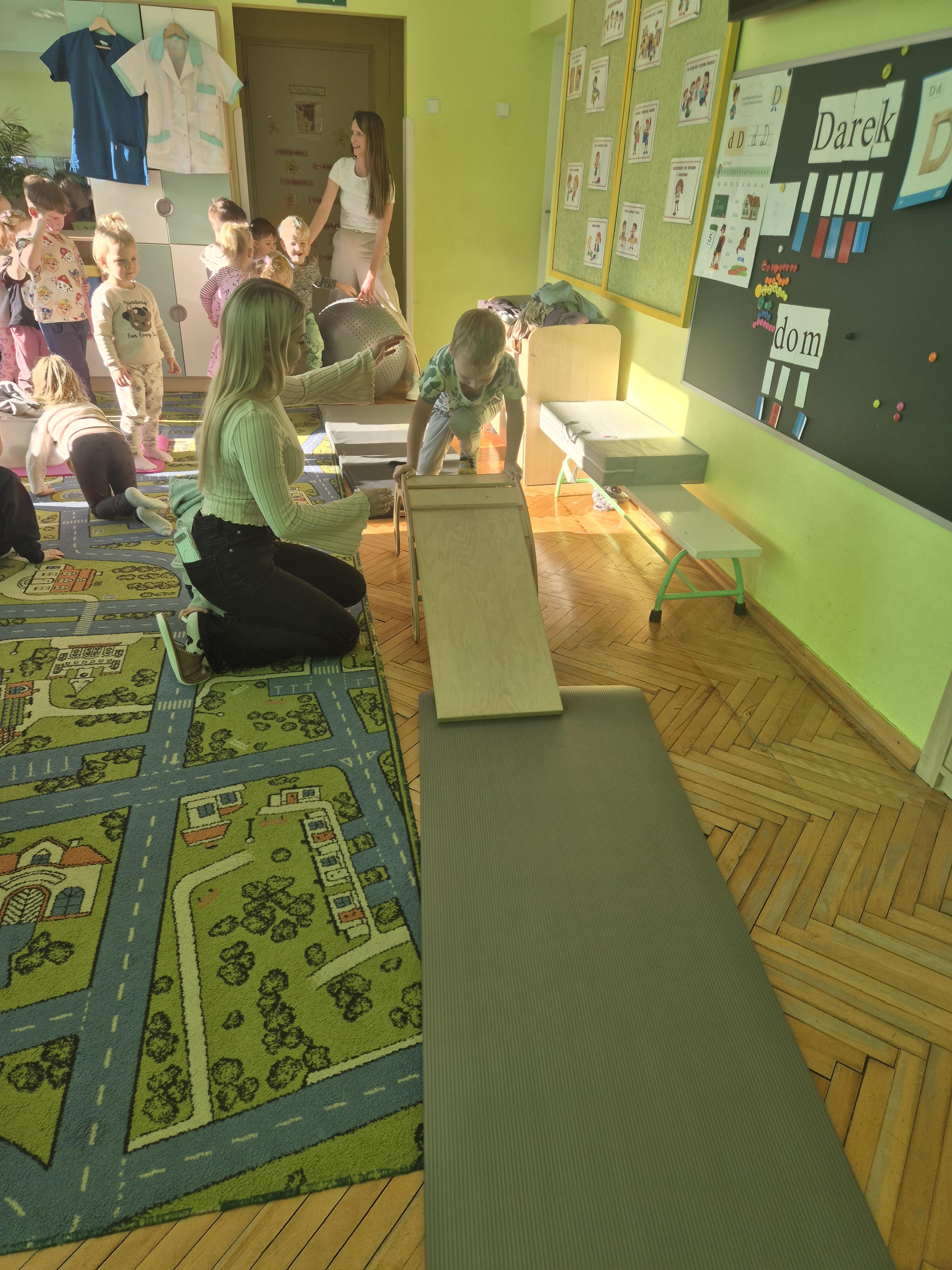 W piątek 28.11 nasze przedszkole odwiedziła mama jednego z naszych przedszkolaków i fizjoterapeutka, Pani Natalia Juszczyk. Pani Natalia w bardzo interesujący sposób przedstawiła dzieciom, na czym polega praca fizjoterapeuty oraz przygotowała świetnie ćwiczenia w formie toru przeszkód, które sprawiły dużo radości przedszkolakom. Na koniec czekała na nas niespodzianka muzyczna, dzięki której wszyscy z uśmiechem na ustach zakończyli spotkanie. Bardzo dziękujemy naszemu Gościowi za fascynującą lekcję przeprowadzoną w przemiłej atmosferze.