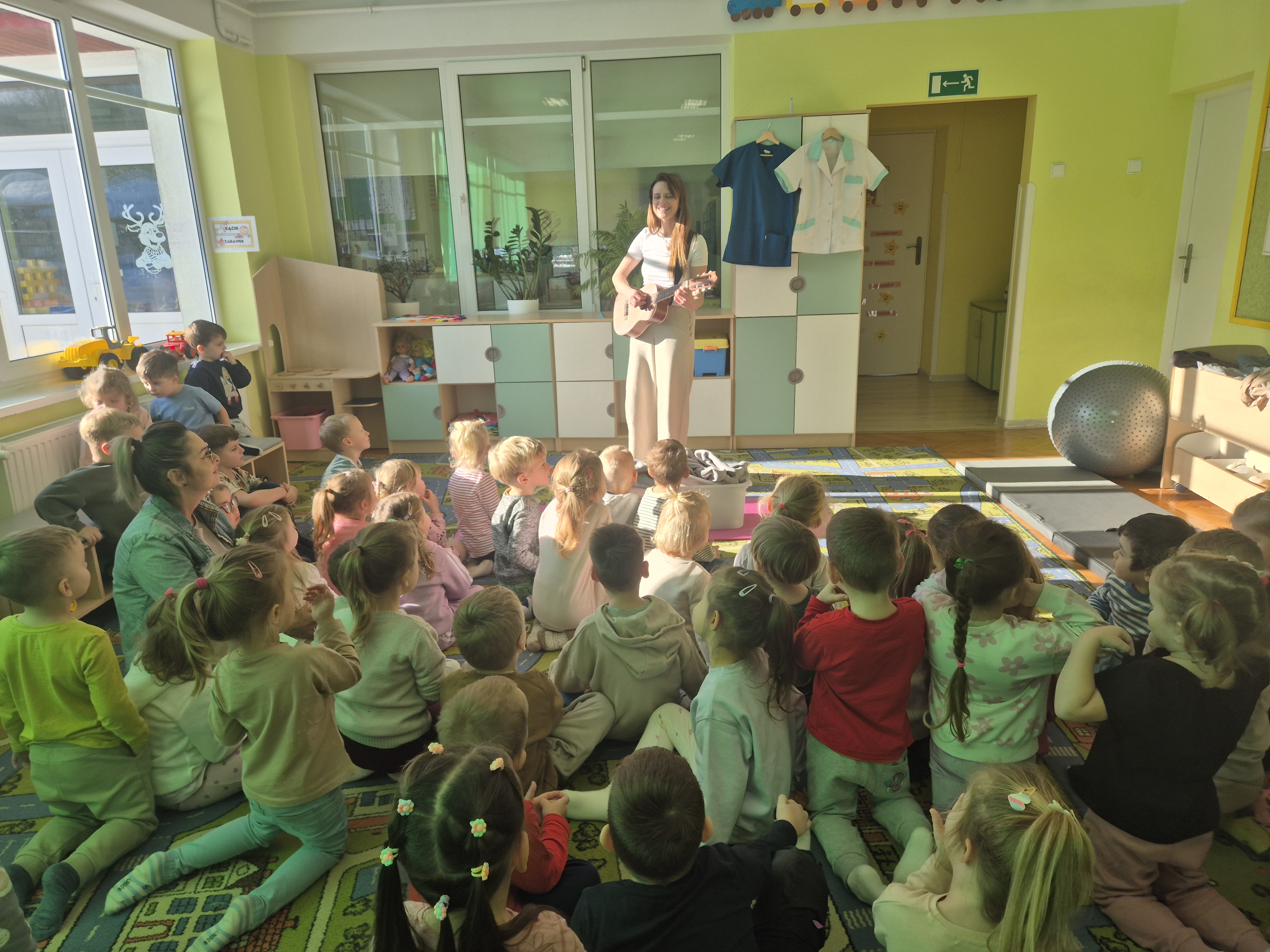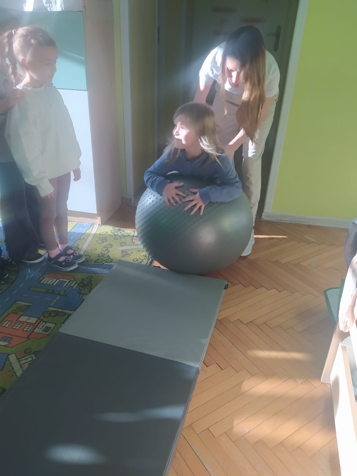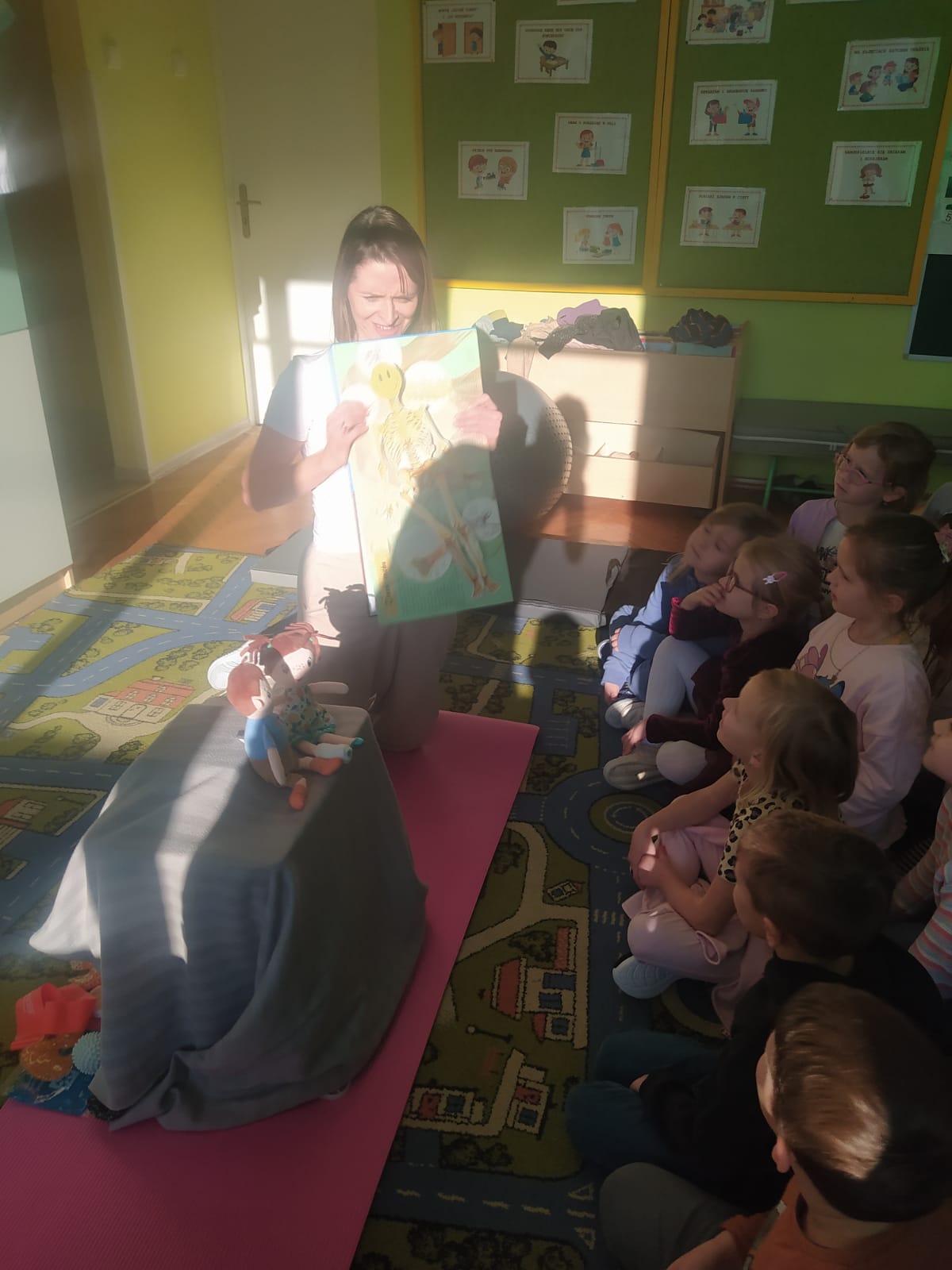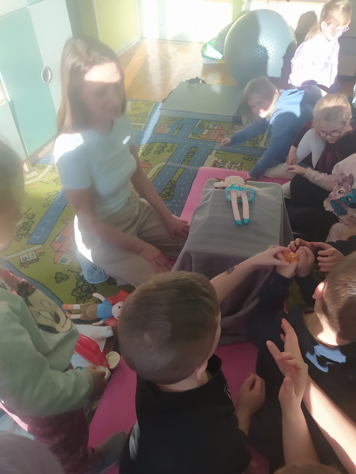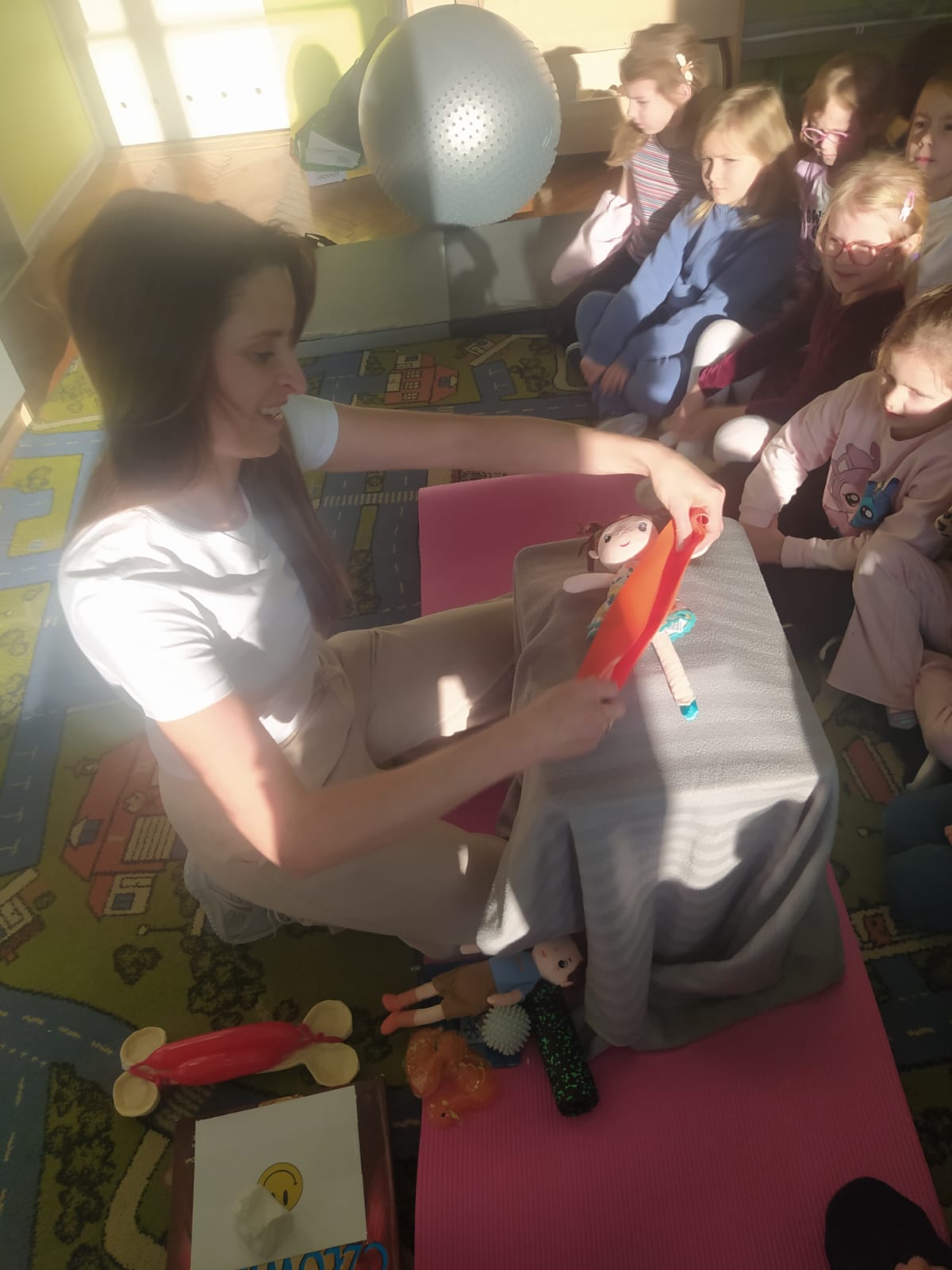 W piątek 28.11 nasze przedszkole odwiedziła mama jednego z naszych przedszkolaków i fizjoterapeutka, Pani Natalia Juszczyk. Pani Natalia w bardzo interesujący sposób przedstawiła dzieciom, na czym polega praca fizjoterapeuty oraz przygotowała świetnie ćwiczenia w formie toru przeszkód, które sprawiły dużo radości przedszkolakom. Na koniec czekała na nas niespodzianka muzyczna, dzięki której wszyscy z uśmiechem na ustach zakończyli spotkanie. Bardzo dziękujemy naszemu Gościowi za fascynującą lekcję przeprowadzoną w przemiłej atmosferze.