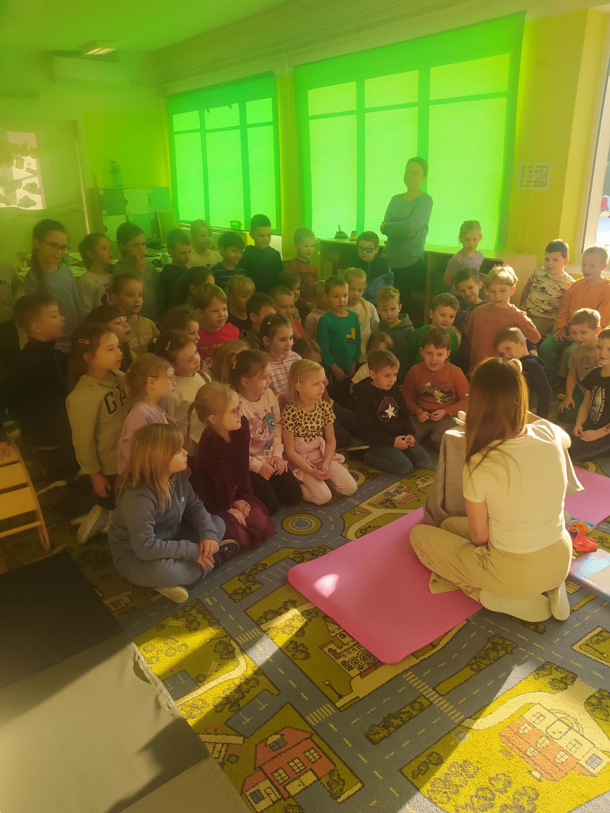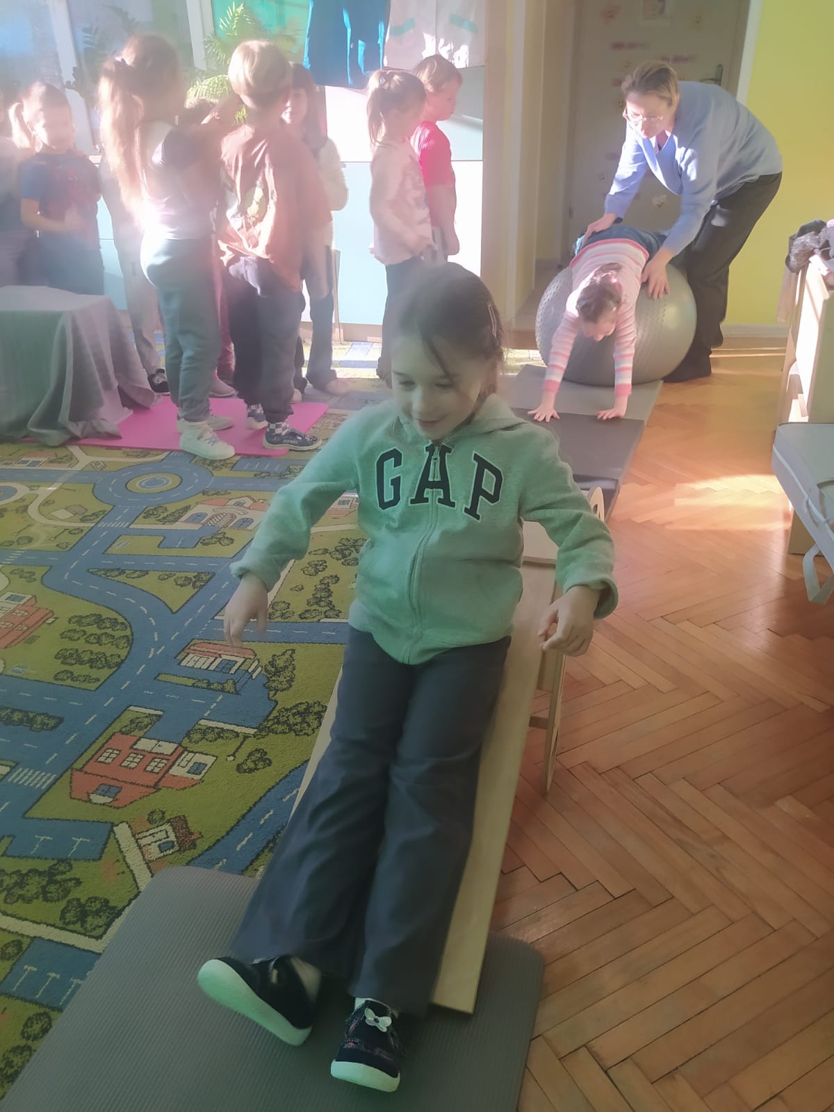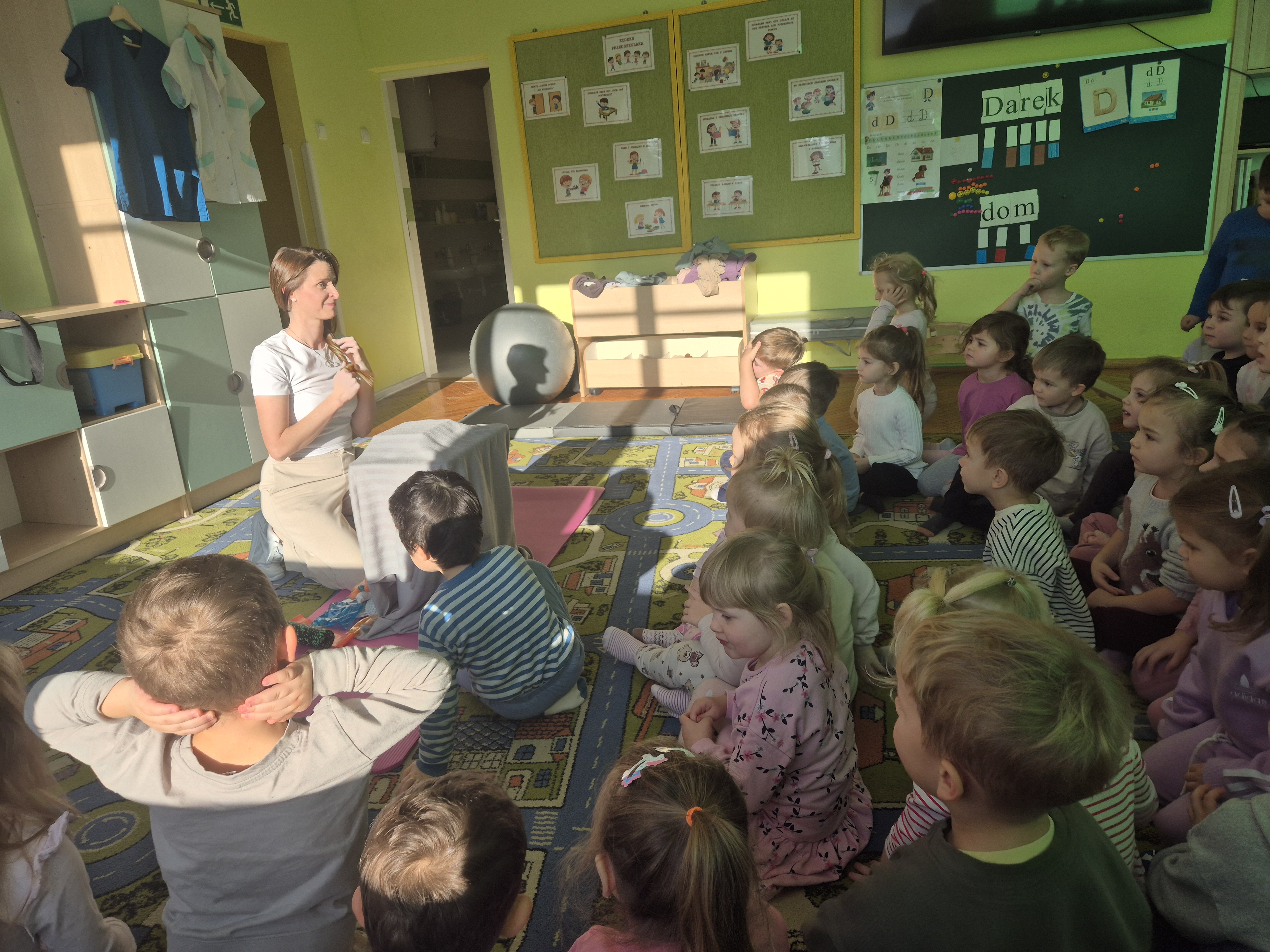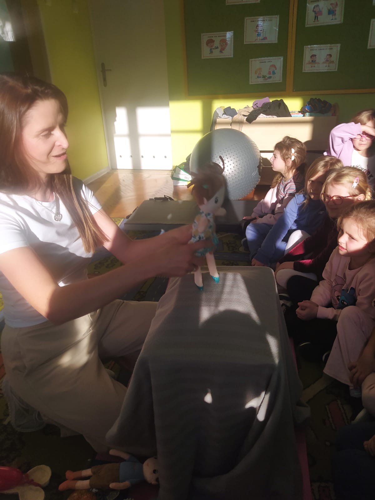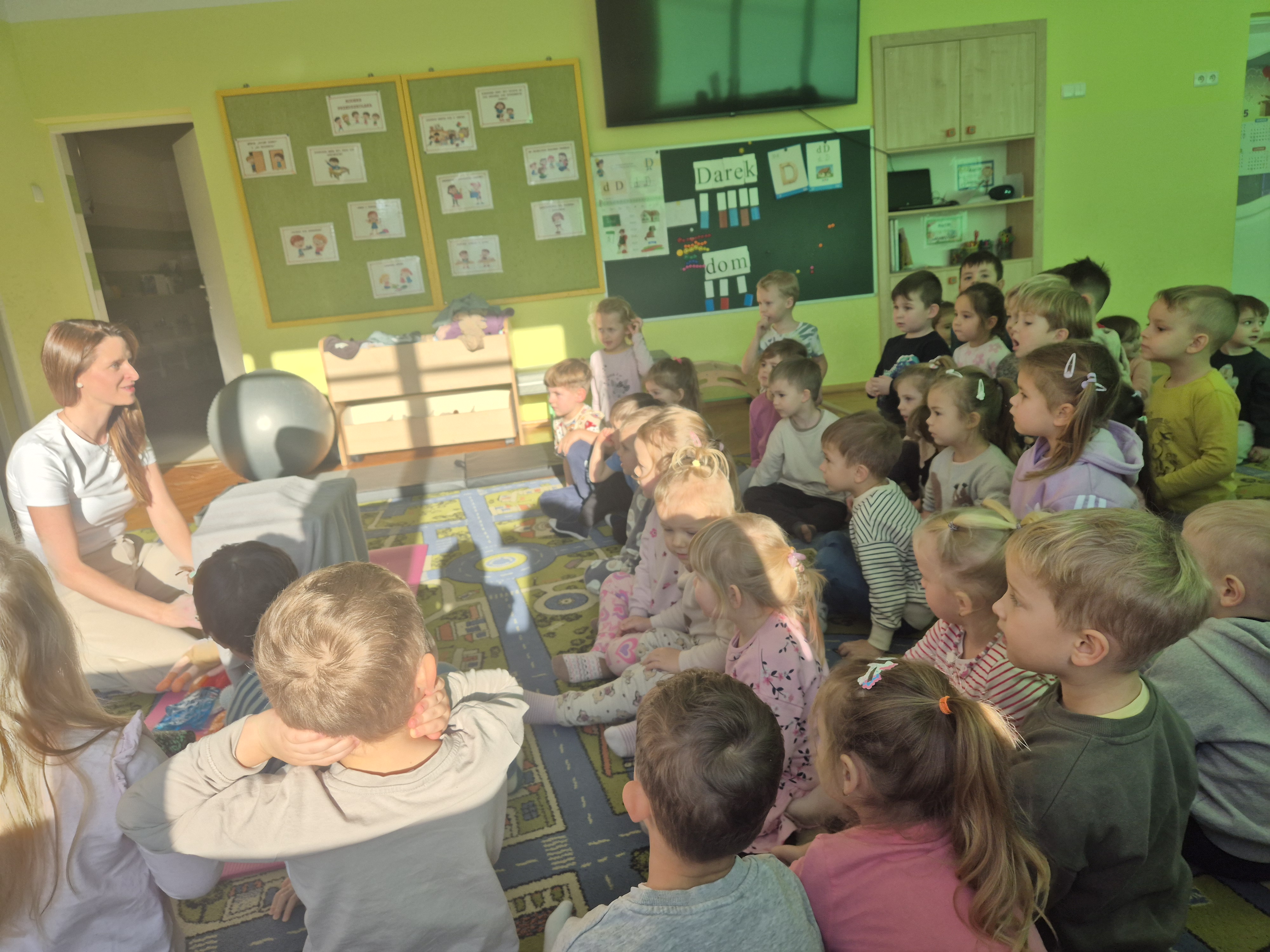 W piątek 28.11 nasze przedszkole odwiedziła mama jednego z naszych przedszkolaków i fizjoterapeutka, Pani Natalia Juszczyk. Pani Natalia w bardzo interesujący sposób przedstawiła dzieciom, na czym polega praca fizjoterapeuty oraz przygotowała świetnie ćwiczenia w formie toru przeszkód, które sprawiły dużo radości przedszkolakom. Na koniec czekała na nas niespodzianka muzyczna, dzięki której wszyscy z uśmiechem na ustach zakończyli spotkanie. Bardzo dziękujemy naszemu Gościowi za fascynującą lekcję przeprowadzoną w przemiłej atmosferze.