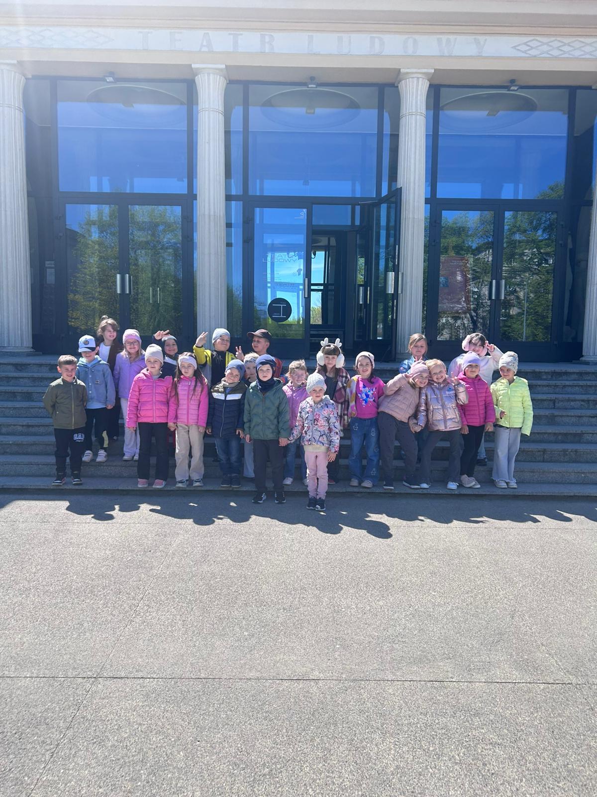 28 kwietnia grupa Motylki, Gwiazdeczki i Promyczki udały się do Teatru Ludowego w Krakowie .Dzieci miały okazję obejrzeć przedstawienie pt. „Pyza na polskich dróżkach”, które w ciekawy i barwny sposób przybliżyło im polskie tradycje, kulturę oraz piękno różnych regionów naszego kraju. Mali widzowie z dużym zainteresowaniem śledzili przygody bohaterki, a kolorowa scenografia, muzyka i gra aktorów wzbudziły wiele emocji i uśmiechów. Po spektaklu udaliśmy się na piknik nad Zalew Wiślany, gdzie dzieci mogły odpocząć na świeżym powietrzu, zjeść wspólny posiłek Piękna pogoda sprzyjała dobremu nastrojowi, a wspólnie spędzony czas dostarczył wszystkim wielu niezapomnianych chwil. Wycieczka była doskonałą okazją do nauki poprzez zabawę, rozwijania zainteresowań kulturalnych oraz wzmacniania relacji między dziećmi.