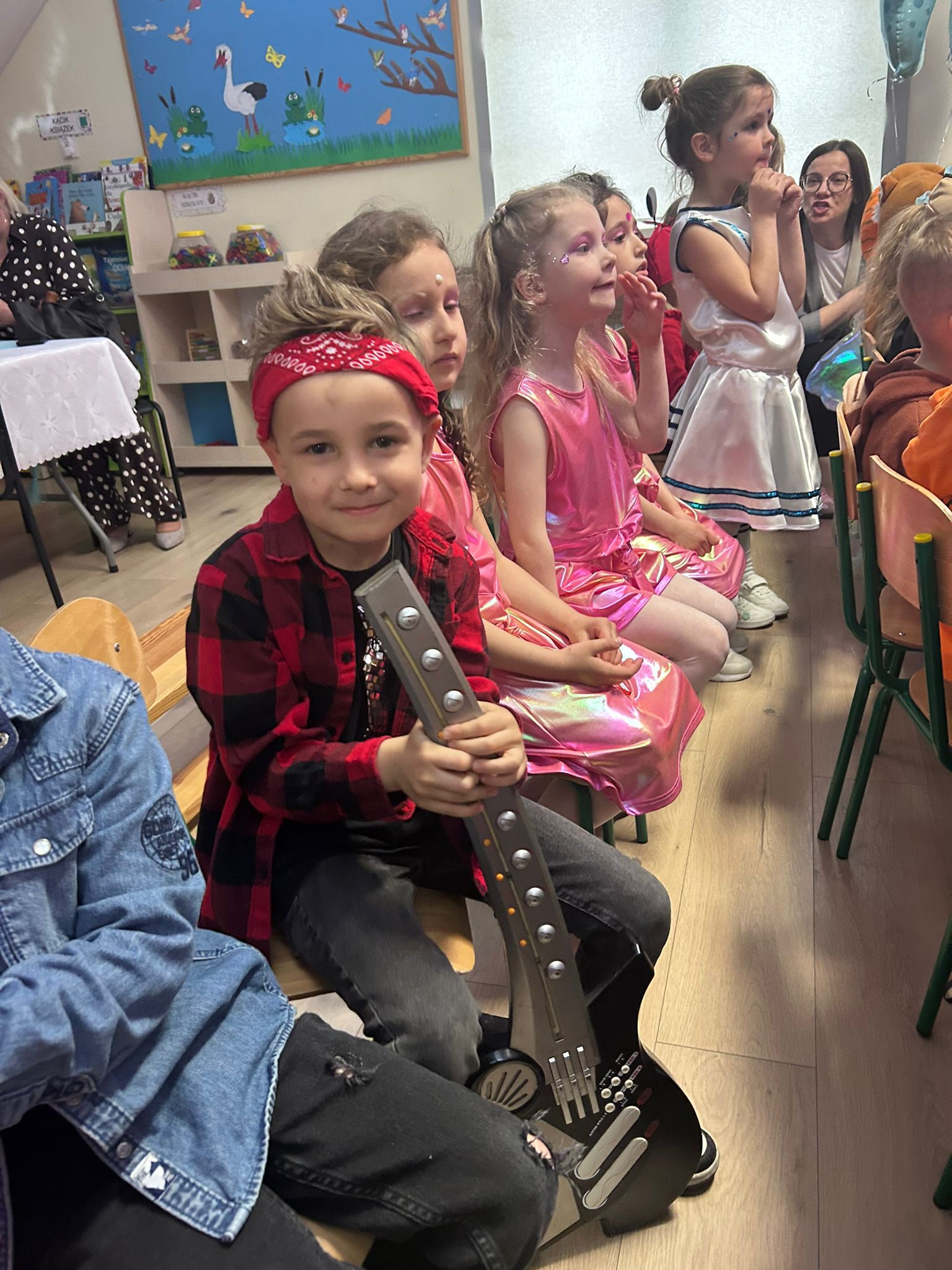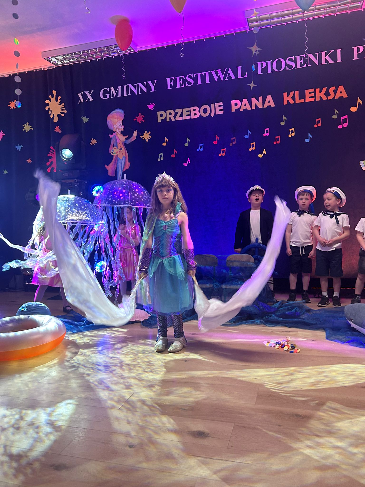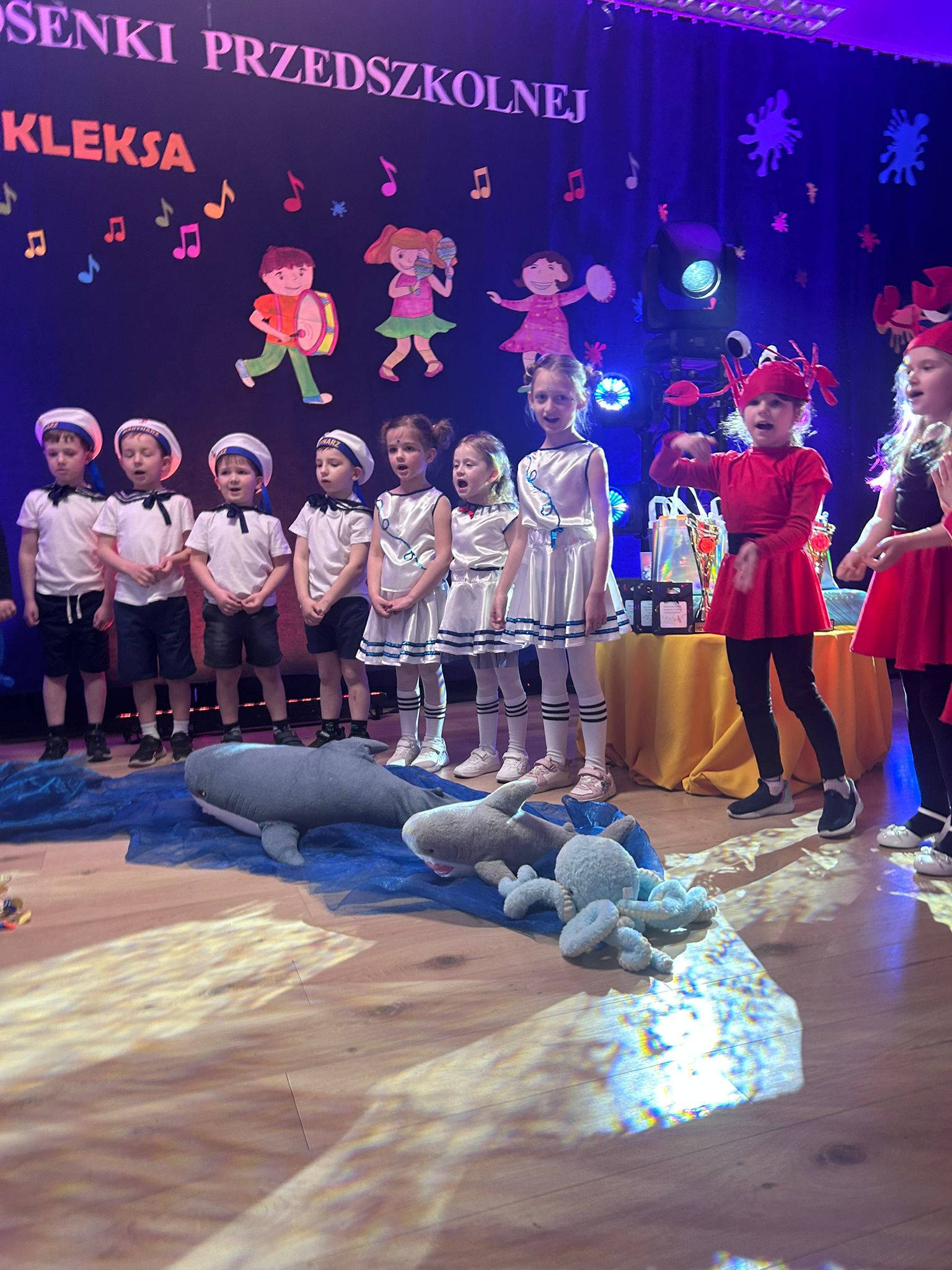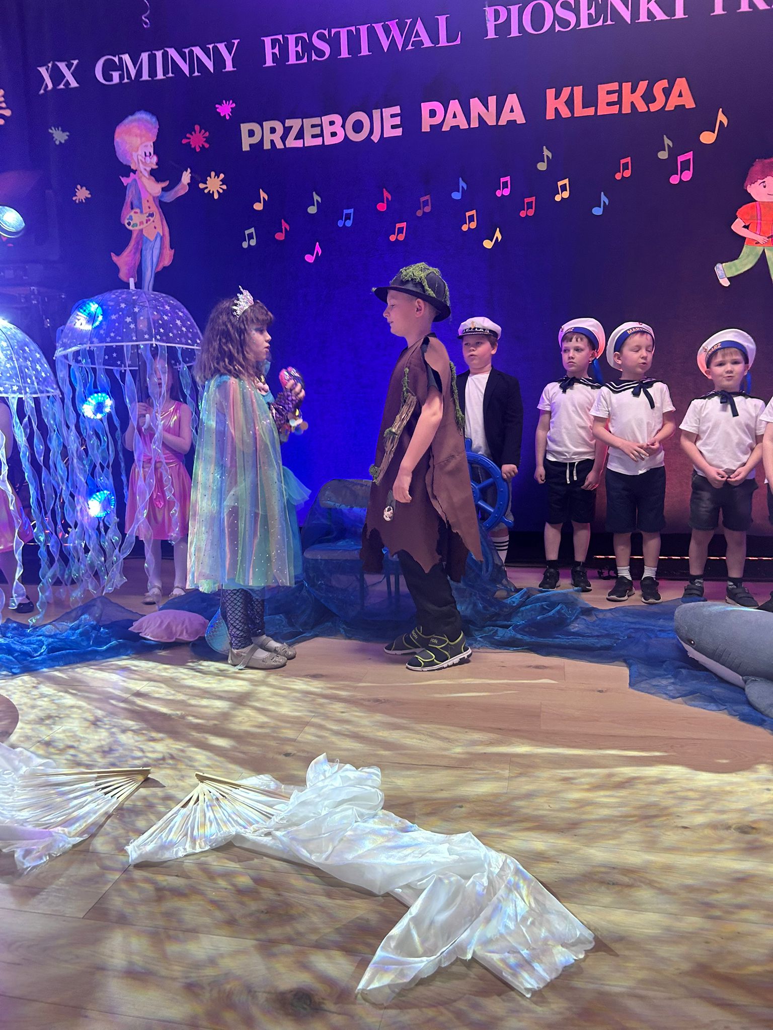 Dnia 15. 04. 2026 r. dzieci z grup Promyczki i Motylki wzięły udział w Przeglądzie Piosenki organizowanym przez Przedszkole Publiczne w Łąkcie Górnej. W przeglądzie wzięły udział dzieci 5 i 6-letnie z przedszkoli w Żegocinie, Łąkcie Górnej, Bytomsku i Rozdzielu. Jego celem było rozwijanie zdolności muzycznych dzieci, kształtowanie wrażliwości artystycznej oraz integracja społeczności przedszkolnej. Głównym motywem przeglądu były piosenki pochodzące z filmu: "Akademia Pana Kleksa". Promyczki zaprezentowały piosenkę pt : "ZOO", natomiast Motylki przedstawiły utwór pt. "Meluzyna". Występy charakteryzowały się dużym zaangażowaniem dzieci, kolorowymi strojami, ciekawą scenografią i choreografią. Mali artyści wykazali się odwagą sceniczną i radością ze wspólnego śpiewania. Wszyscy uczestnicy otrzymali dyplomy i upominki. Wydarzenie przebiegło w miłej i radosnej atmosferze.