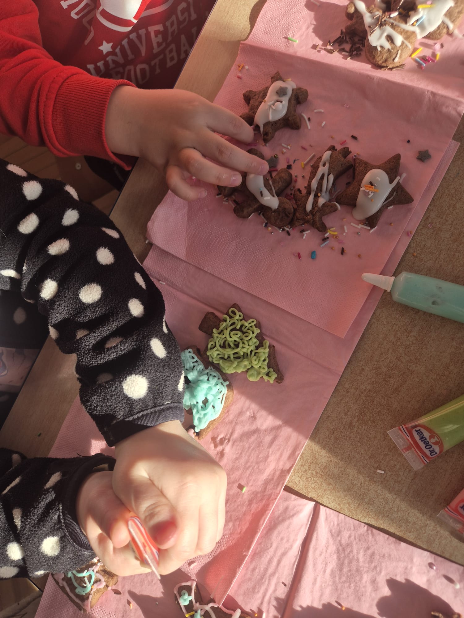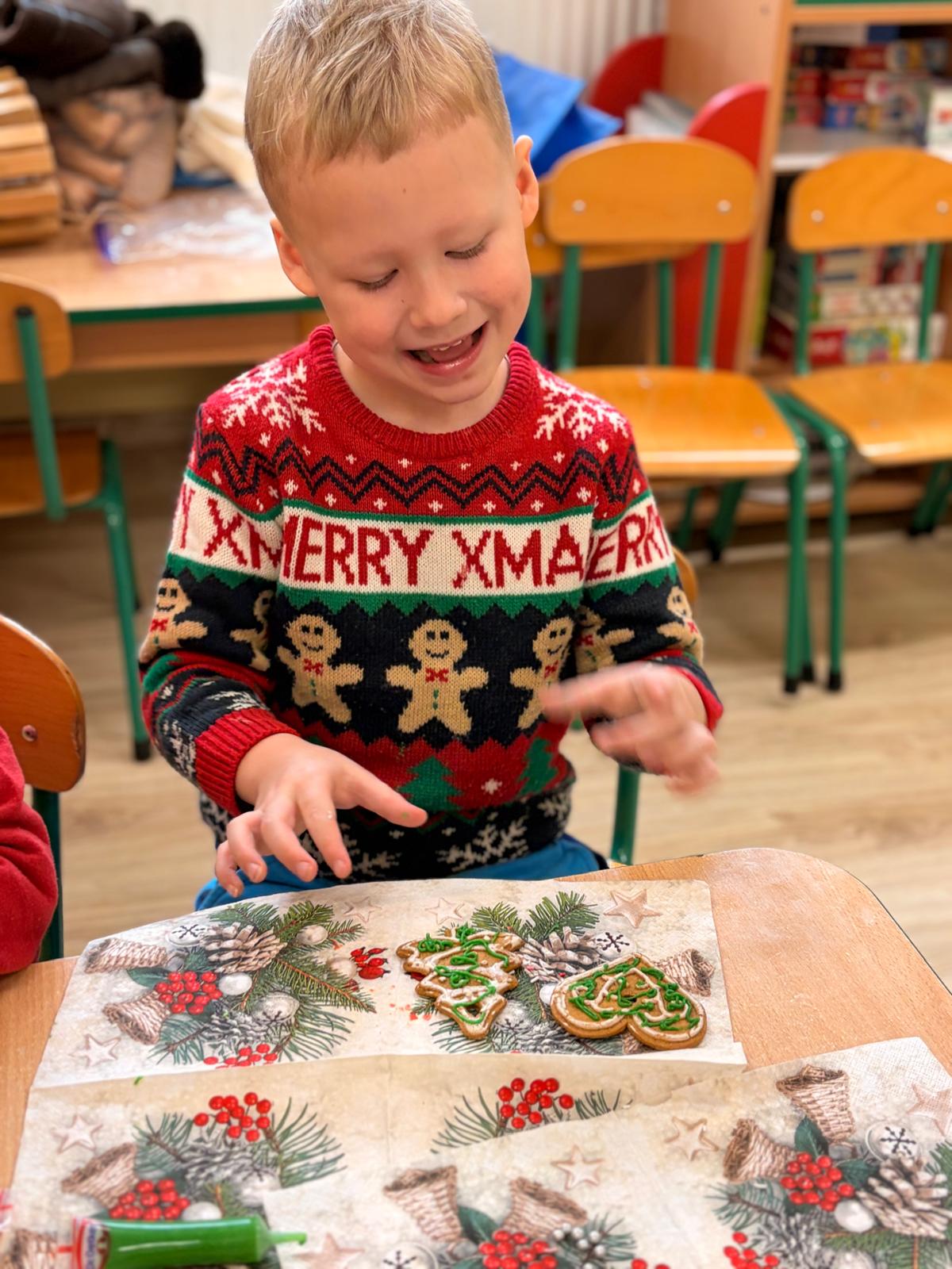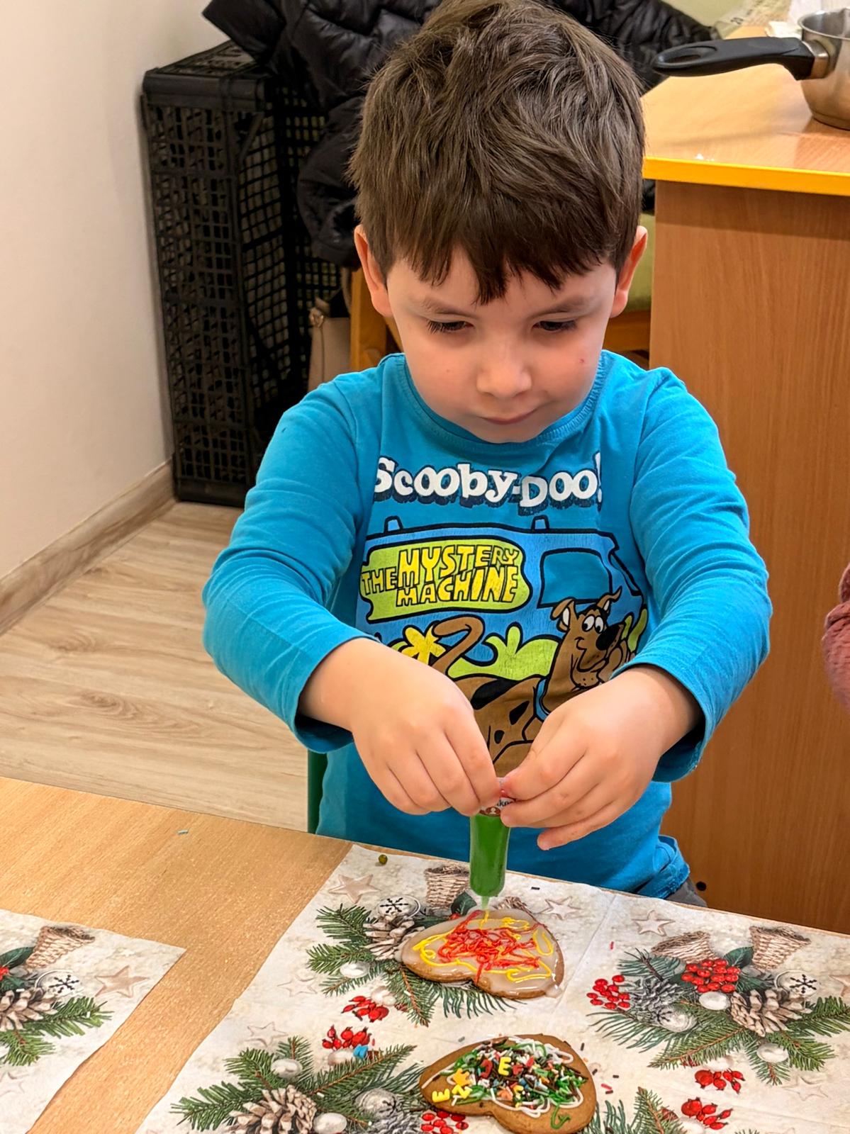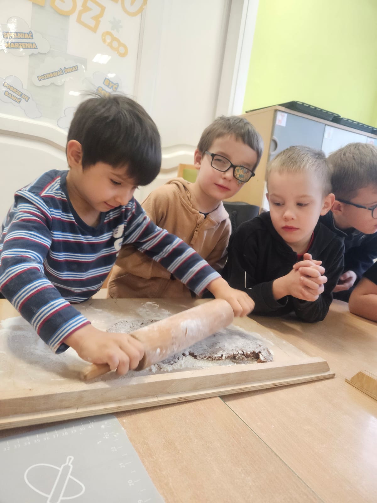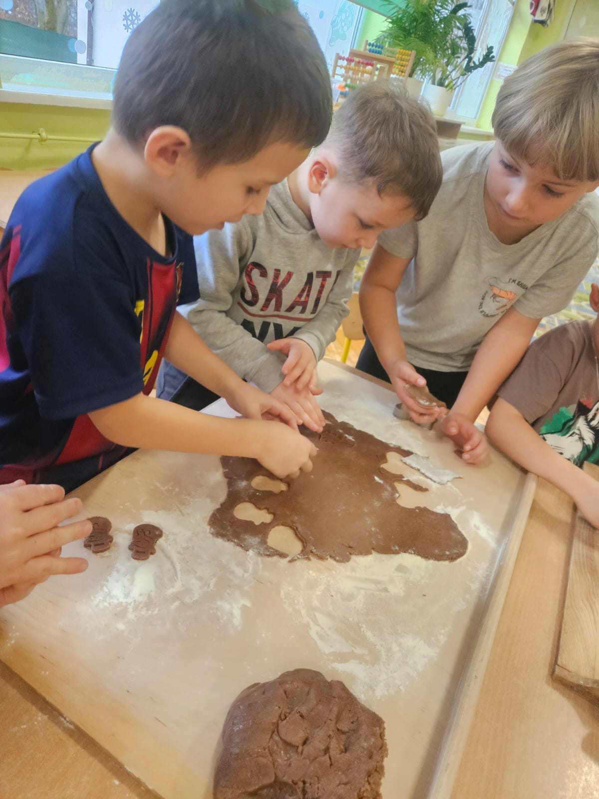 W minionym tygodniu w naszym przedszkolu odbyło się pieczenie pierniczków. Dzieci z poszczególnych grup z ogromnym zaangażowaniem brały udział w przygotowaniach – wałkowały ciasto, wykrawały pierniczki w różnych kształtach oraz ozdabiały je lukrem i kolorowymi posypkami. Zajęcia sprawiły przedszkolakom wiele radości, a jednocześnie były doskonałą okazją do rozwijania sprawności manualnej, samodzielności oraz współpracy w grupie. W całym przedszkolu unosił się przyjemny zapach korzennych przypraw, który wprowadził wszystkich w świąteczny nastrój. Wspólne pieczenie pierniczków było nie tylko świetną zabawą, ale również cennym doświadczeniem edukacyjnym.