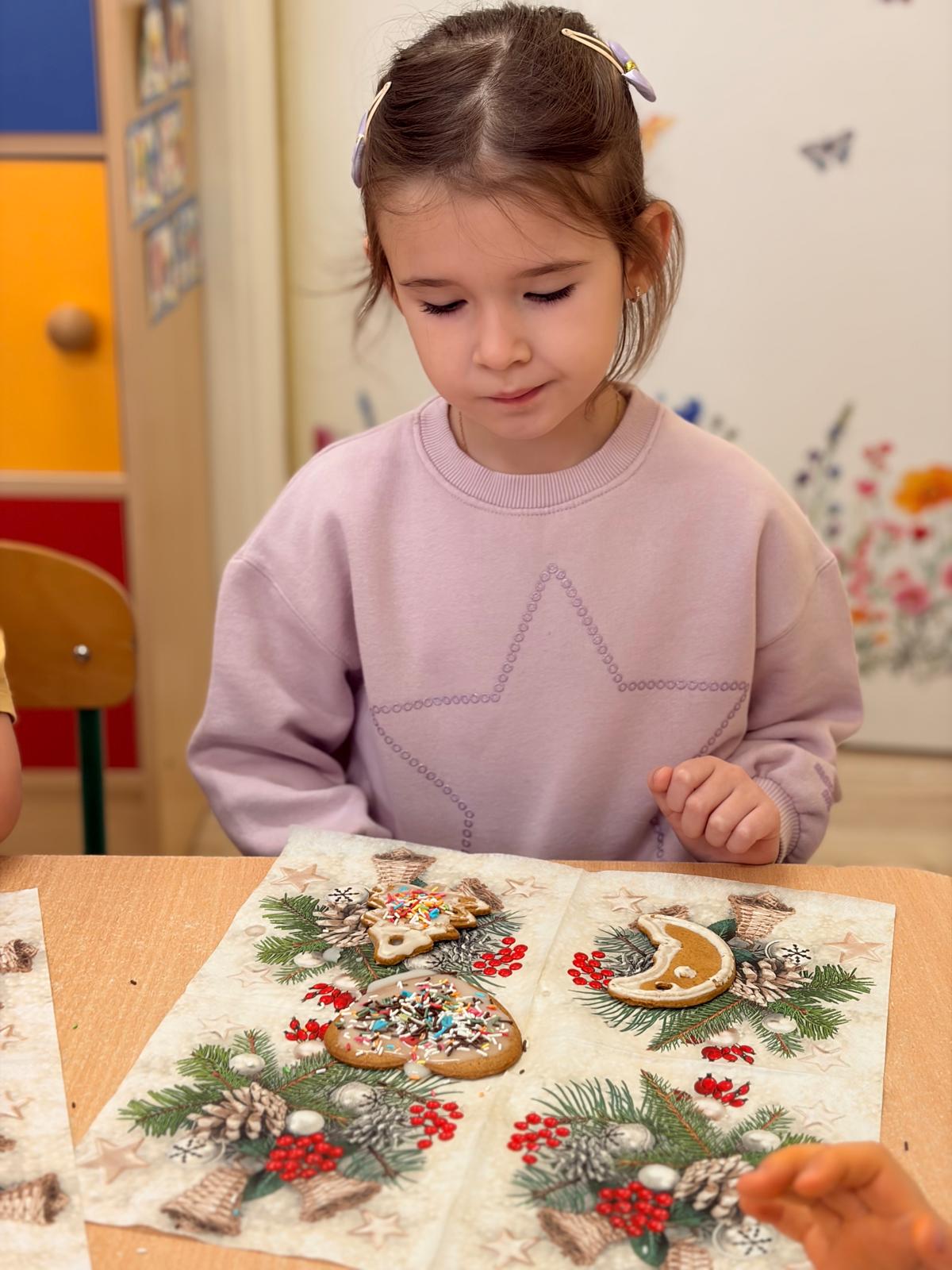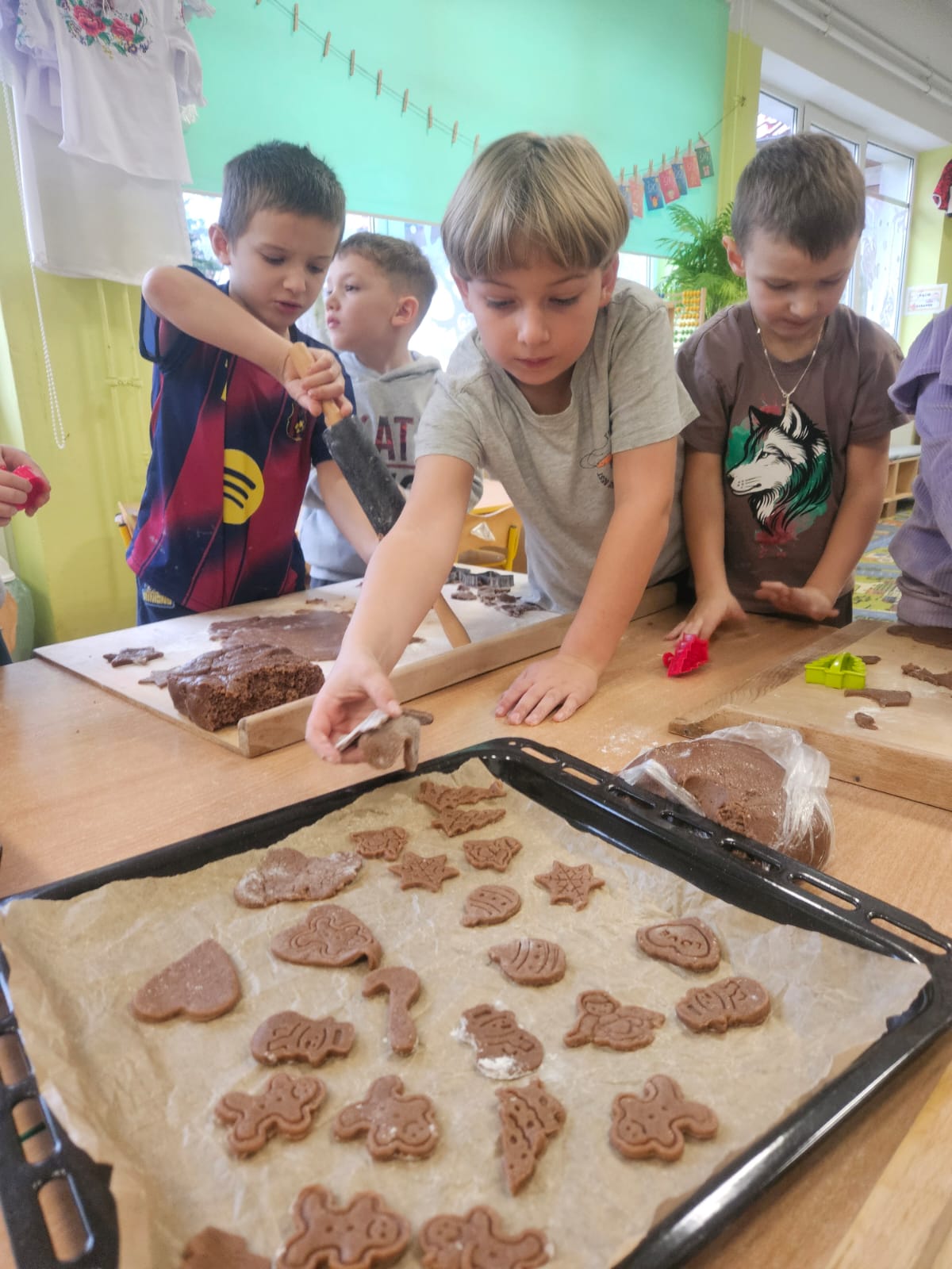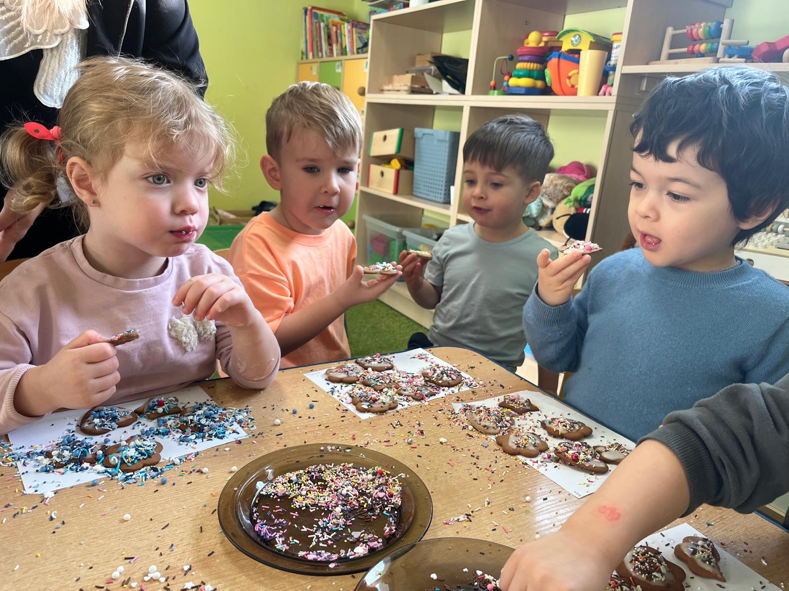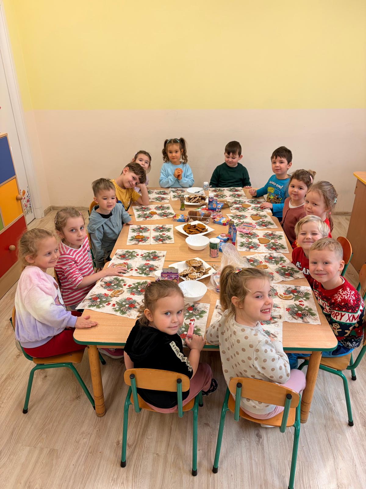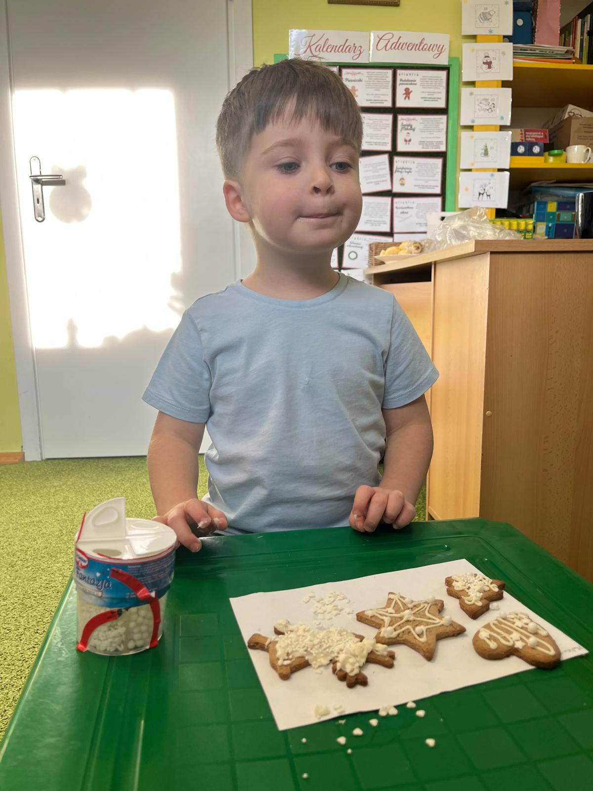 W minionym tygodniu w naszym przedszkolu odbyło się pieczenie pierniczków. Dzieci z poszczególnych grup z ogromnym zaangażowaniem brały udział w przygotowaniach – wałkowały ciasto, wykrawały pierniczki w różnych kształtach oraz ozdabiały je lukrem i kolorowymi posypkami. Zajęcia sprawiły przedszkolakom wiele radości, a jednocześnie były doskonałą okazją do rozwijania sprawności manualnej, samodzielności oraz współpracy w grupie. W całym przedszkolu unosił się przyjemny zapach korzennych przypraw, który wprowadził wszystkich w świąteczny nastrój. Wspólne pieczenie pierniczków było nie tylko świetną zabawą, ale również cennym doświadczeniem edukacyjnym.