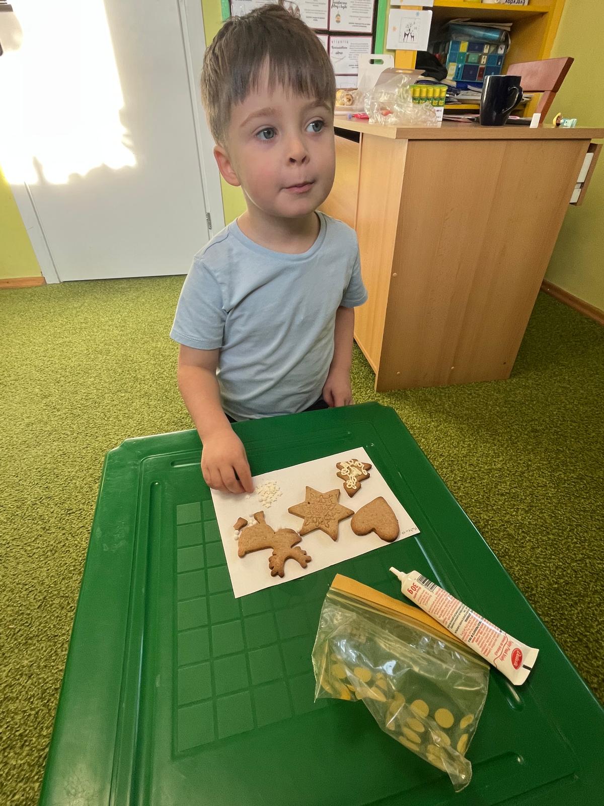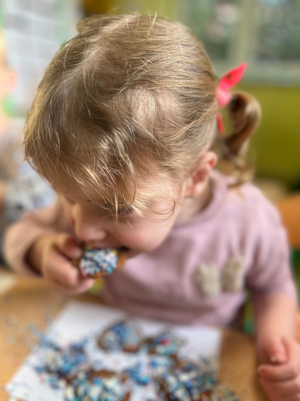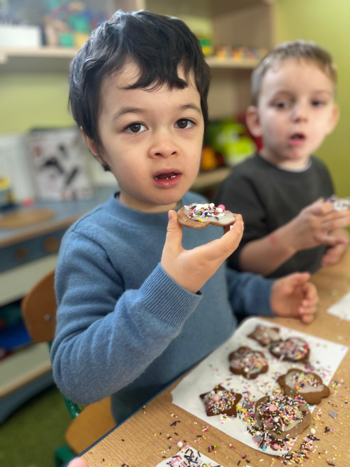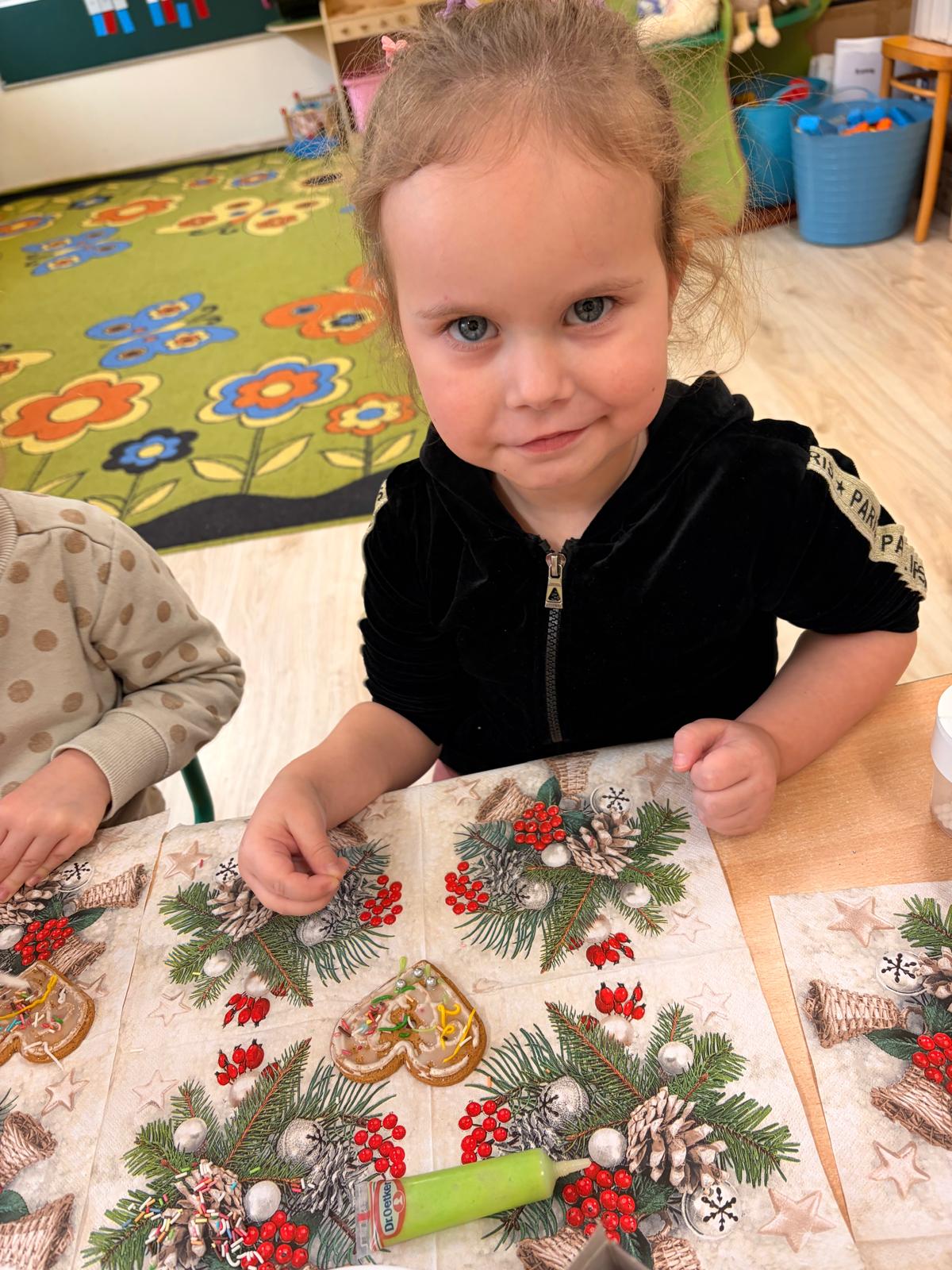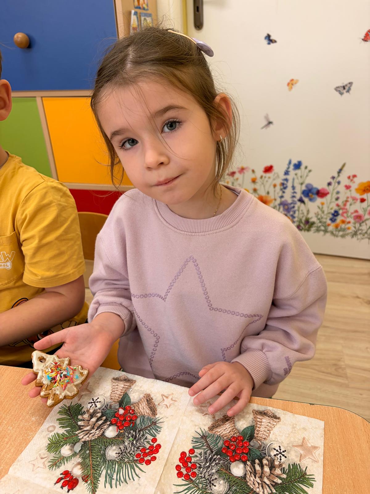 W minionym tygodniu w naszym przedszkolu odbyło się pieczenie pierniczków. Dzieci z poszczególnych grup z ogromnym zaangażowaniem brały udział w przygotowaniach – wałkowały ciasto, wykrawały pierniczki w różnych kształtach oraz ozdabiały je lukrem i kolorowymi posypkami. Zajęcia sprawiły przedszkolakom wiele radości, a jednocześnie były doskonałą okazją do rozwijania sprawności manualnej, samodzielności oraz współpracy w grupie. W całym przedszkolu unosił się przyjemny zapach korzennych przypraw, który wprowadził wszystkich w świąteczny nastrój. Wspólne pieczenie pierniczków było nie tylko świetną zabawą, ale również cennym doświadczeniem edukacyjnym.