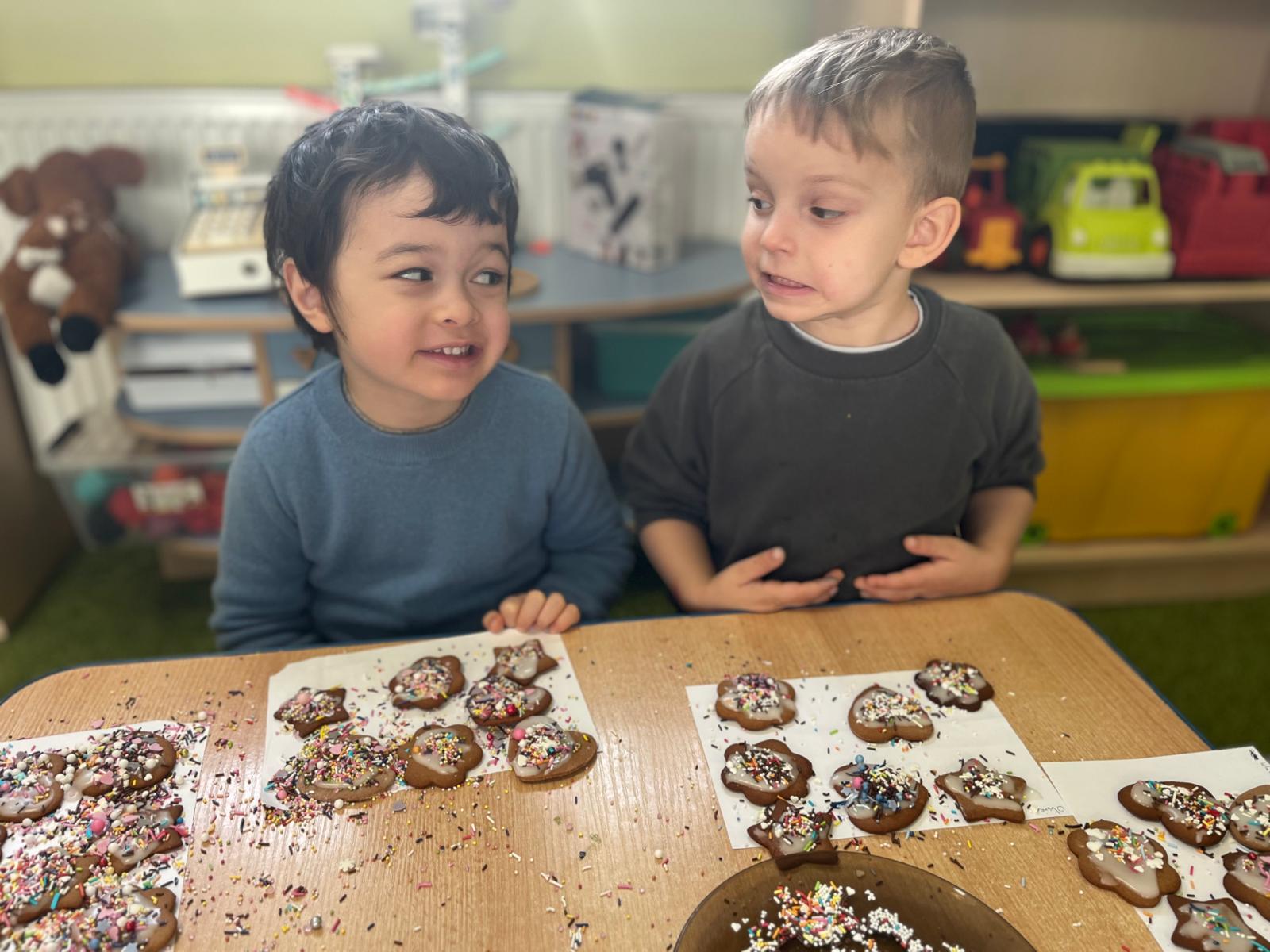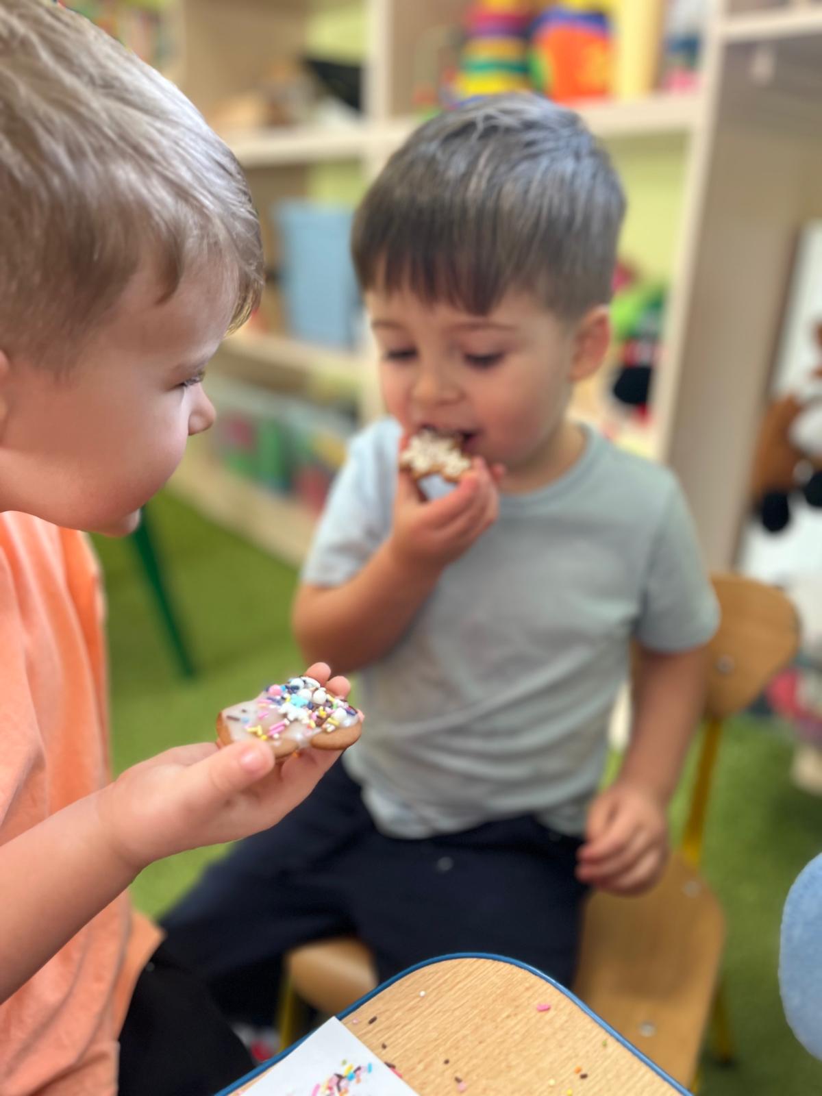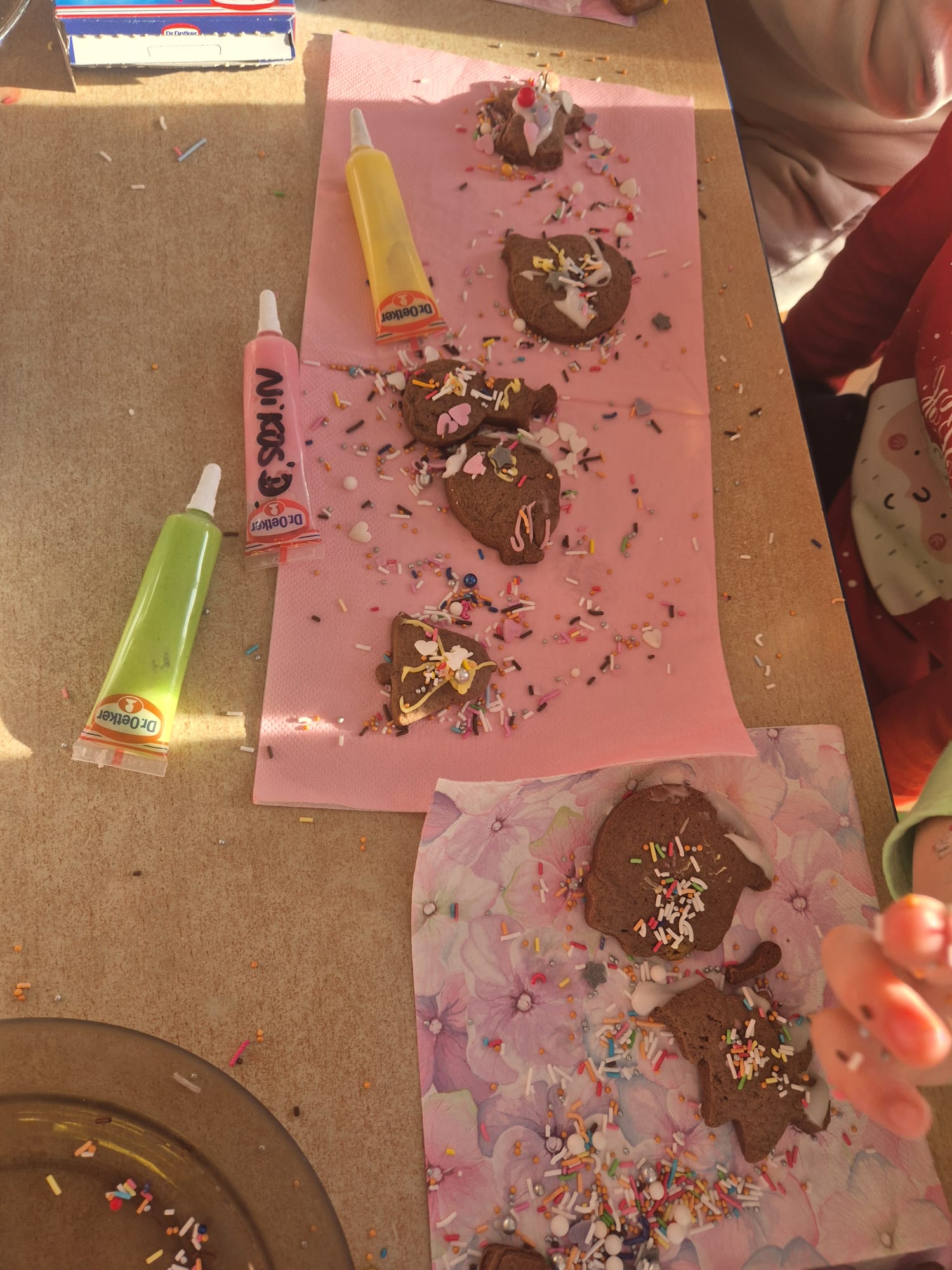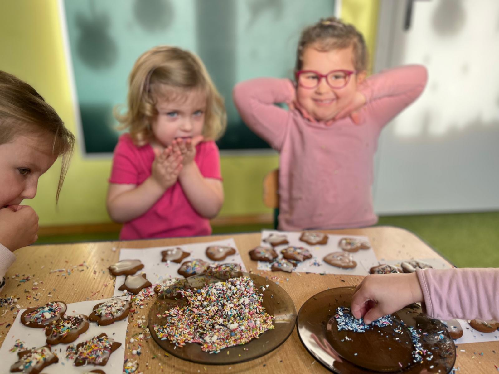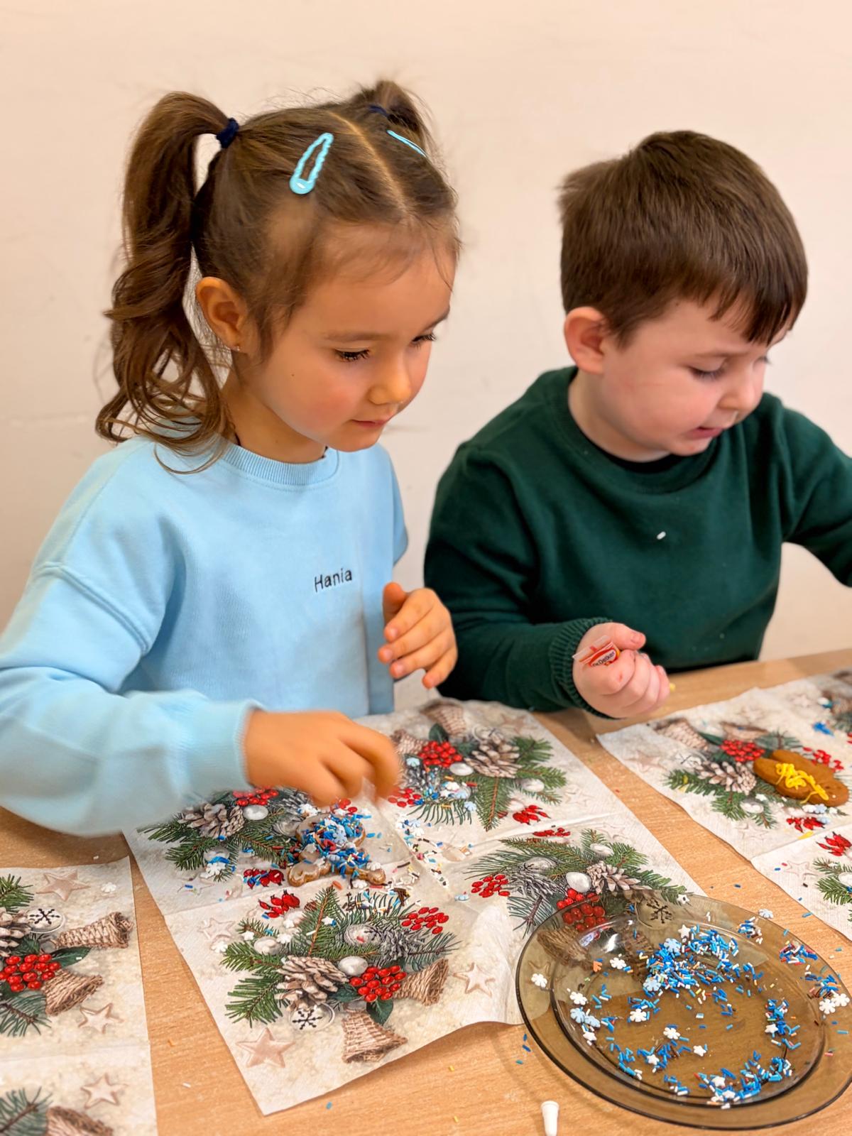 W minionym tygodniu w naszym przedszkolu odbyło się pieczenie pierniczków. Dzieci z poszczególnych grup z ogromnym zaangażowaniem brały udział w przygotowaniach – wałkowały ciasto, wykrawały pierniczki w różnych kształtach oraz ozdabiały je lukrem i kolorowymi posypkami. Zajęcia sprawiły przedszkolakom wiele radości, a jednocześnie były doskonałą okazją do rozwijania sprawności manualnej, samodzielności oraz współpracy w grupie. W całym przedszkolu unosił się przyjemny zapach korzennych przypraw, który wprowadził wszystkich w świąteczny nastrój. Wspólne pieczenie pierniczków było nie tylko świetną zabawą, ale również cennym doświadczeniem edukacyjnym.